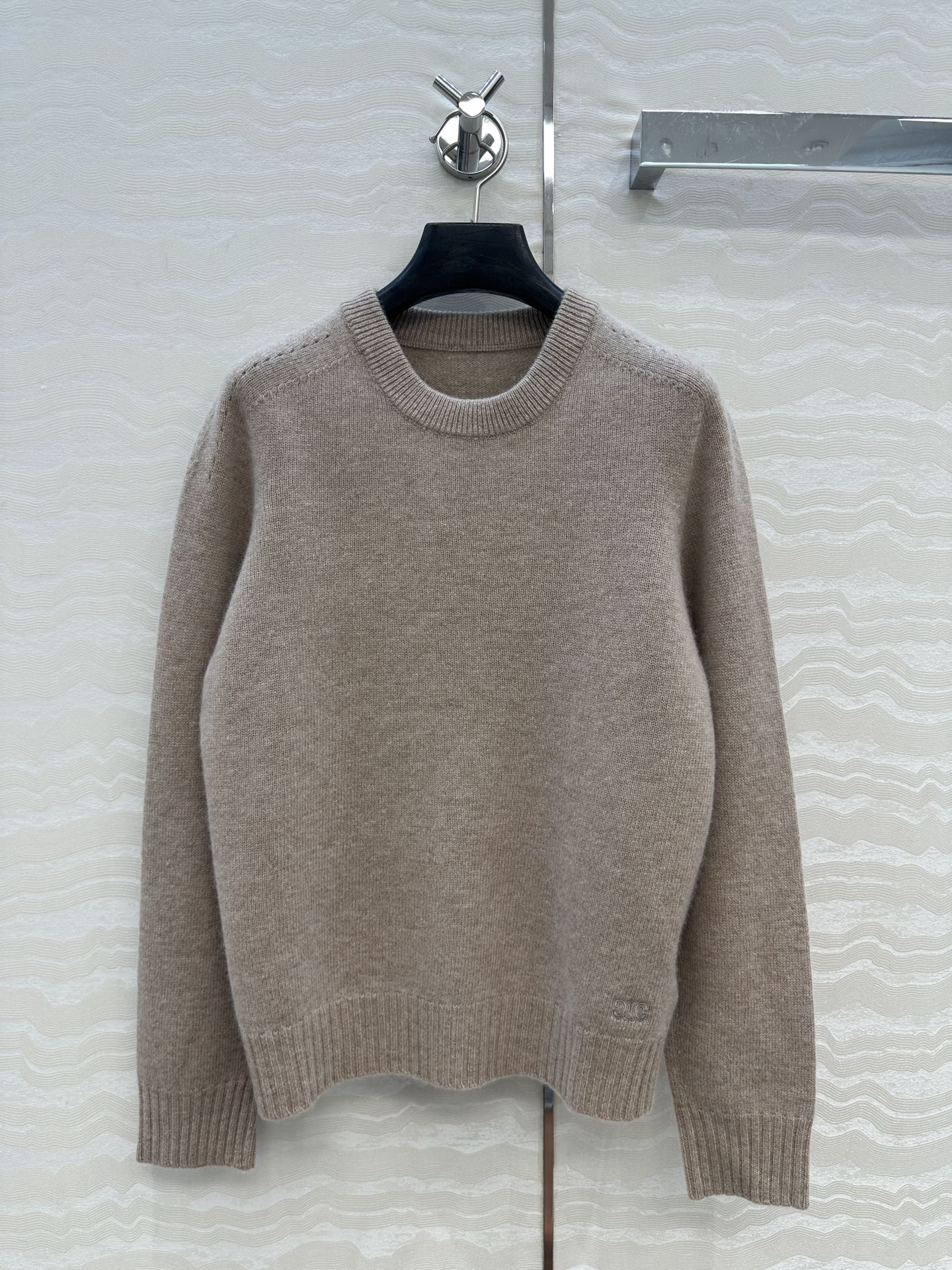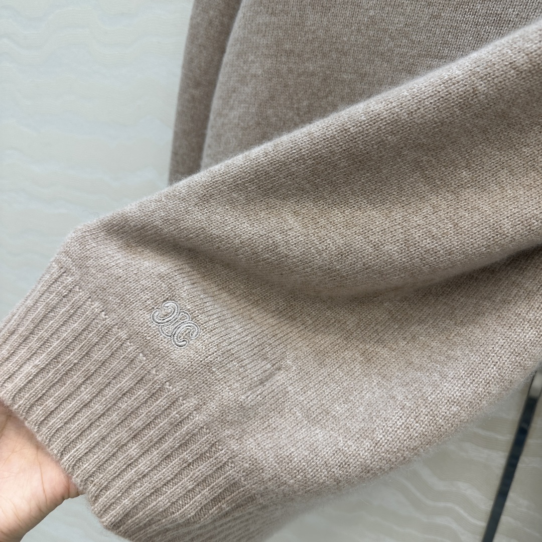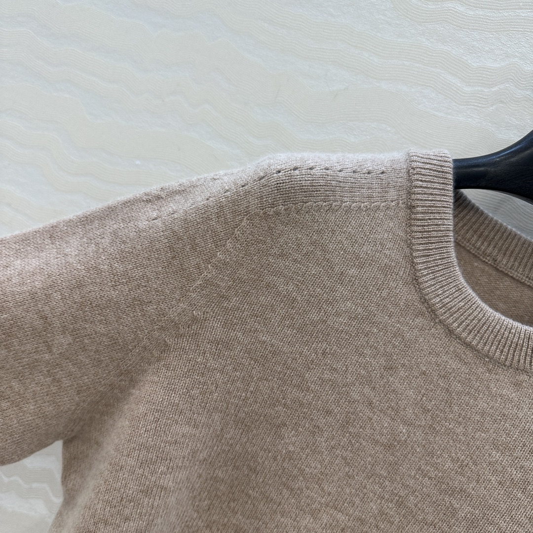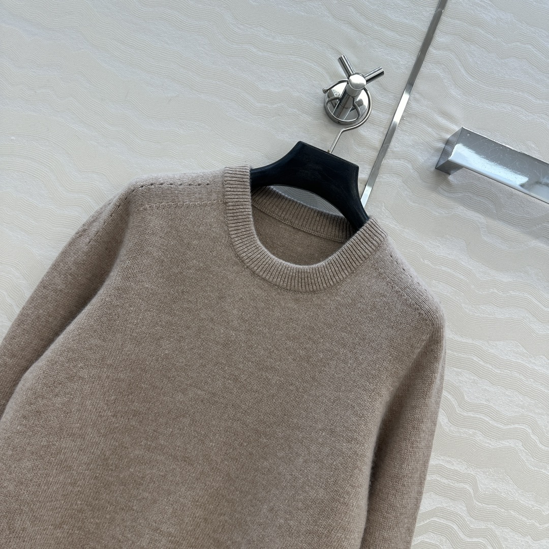 Details: Exclusive First-release Pure Cashmere Round-neck Sweater with Embroidered Arch, Elegant and Slimming