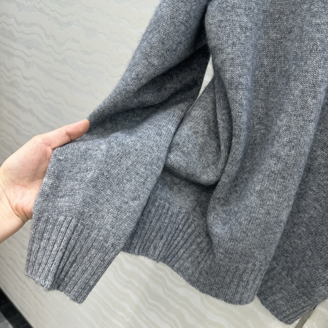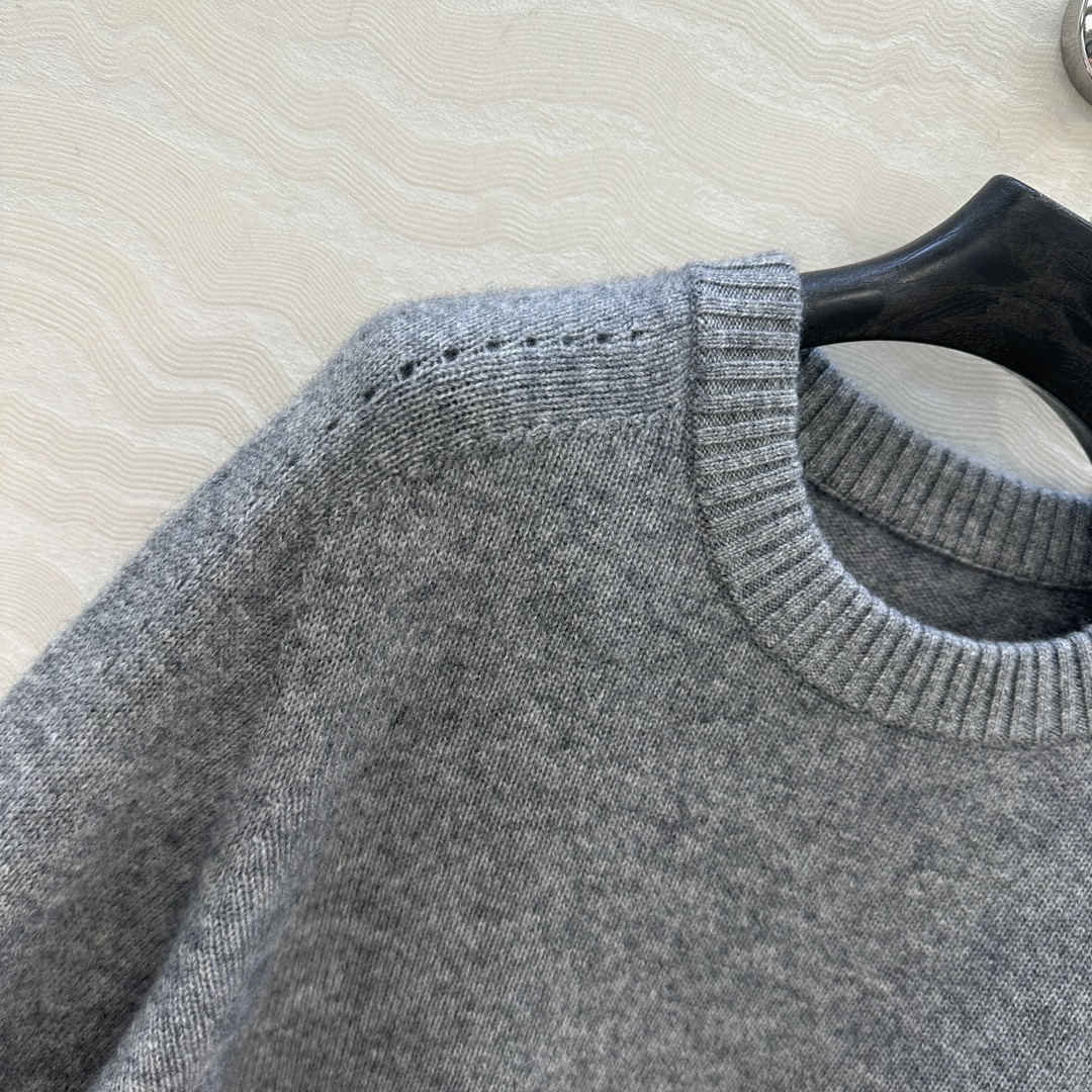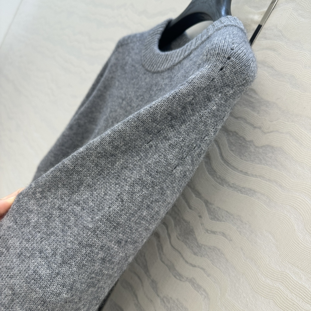 Details: Exclusive First-release Pure Cashmere Round-neck Sweater with Embroidered Arch, Elegant and Slimming