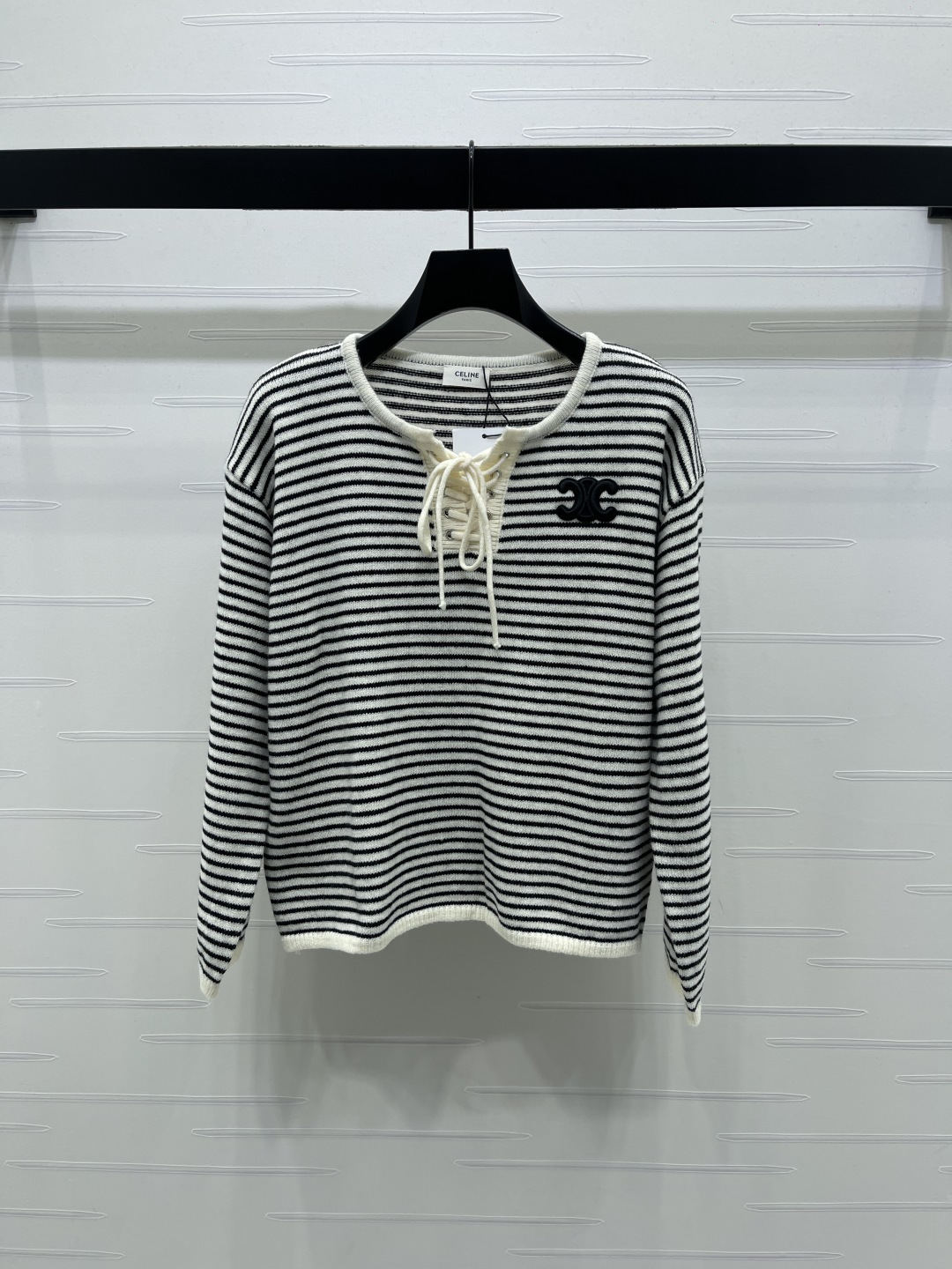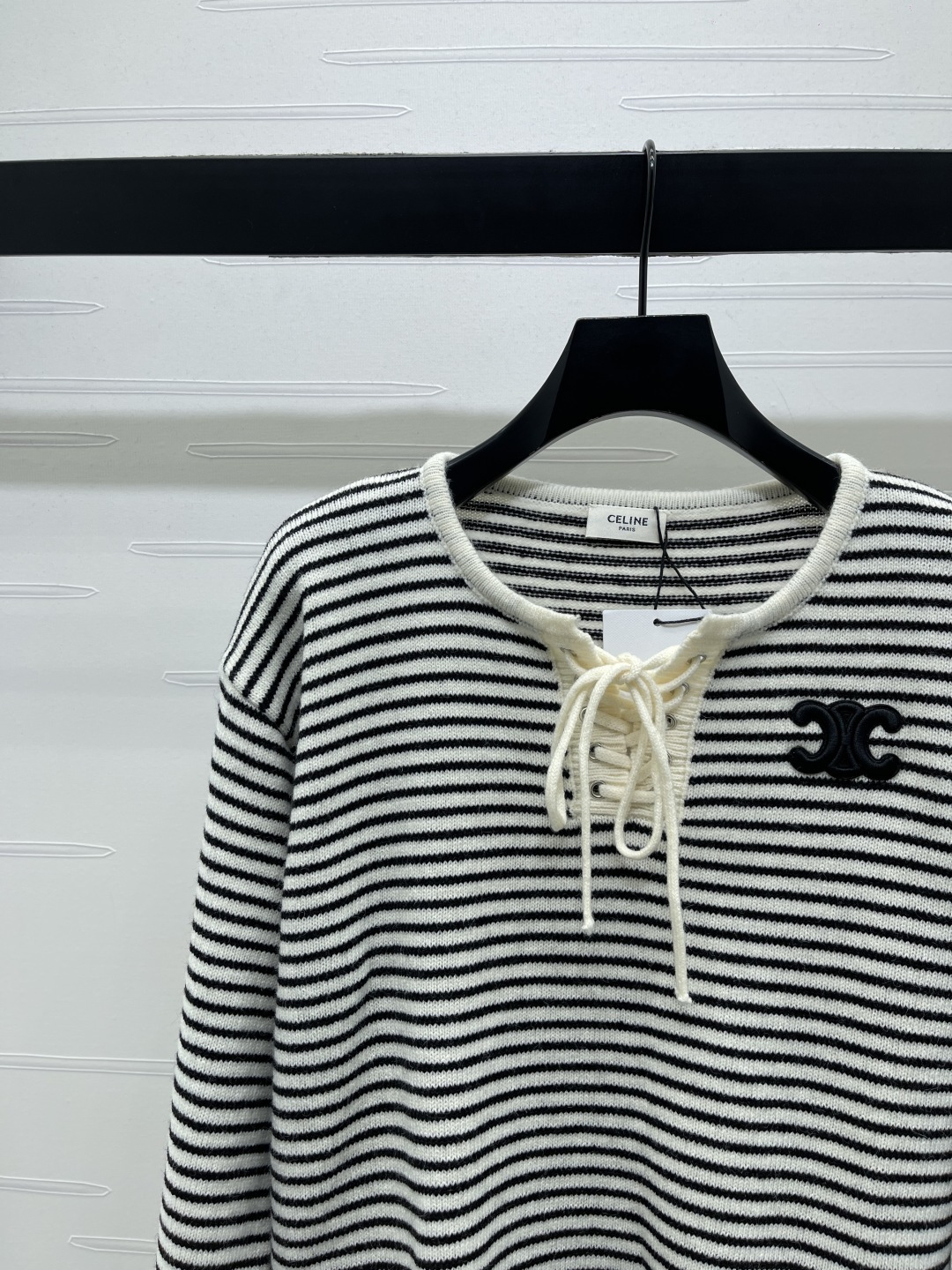 Details: Autumn-Winter striped knitted long-sleeved top, nautical style, high-quality custom wool, Advanced customization, Fine workmanship