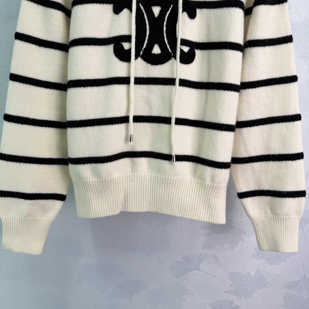 Details: Autumn-winter striped hooded knitted sweater, soft and comfortable, with embroidered letters, casual and versatile, ideal for daily wear and campus style.