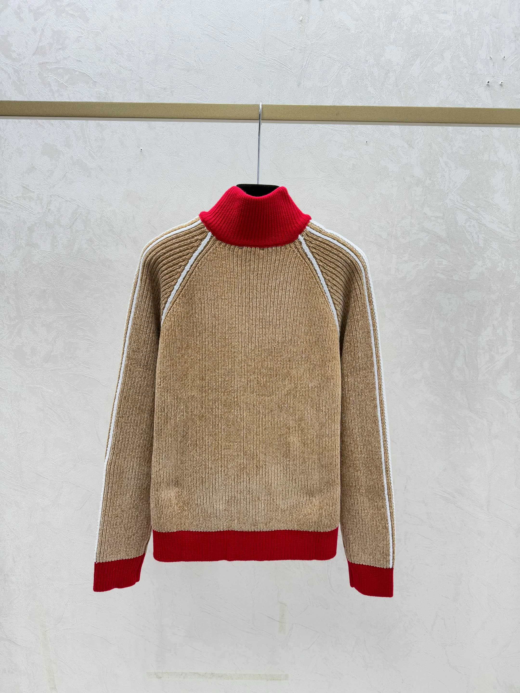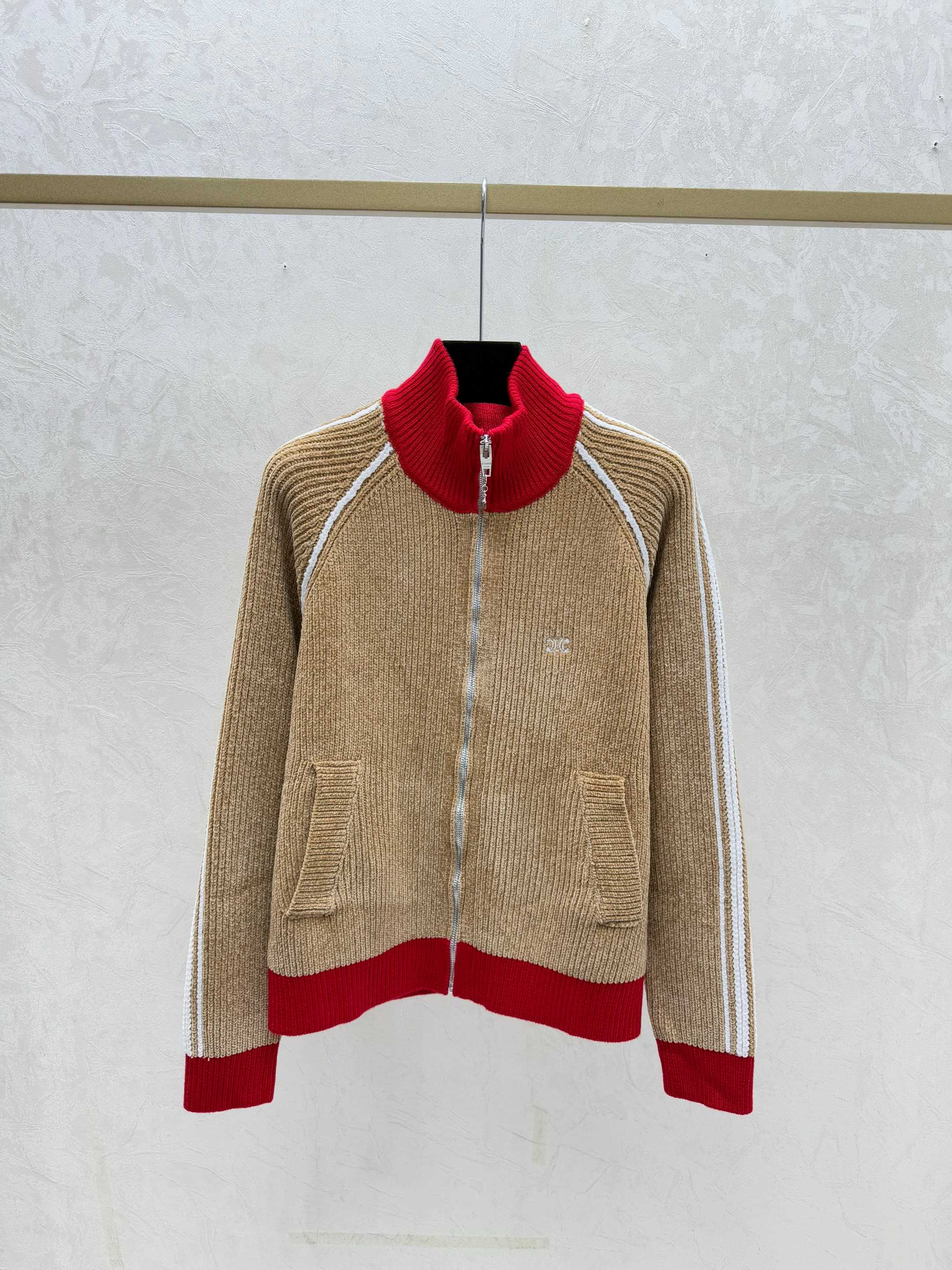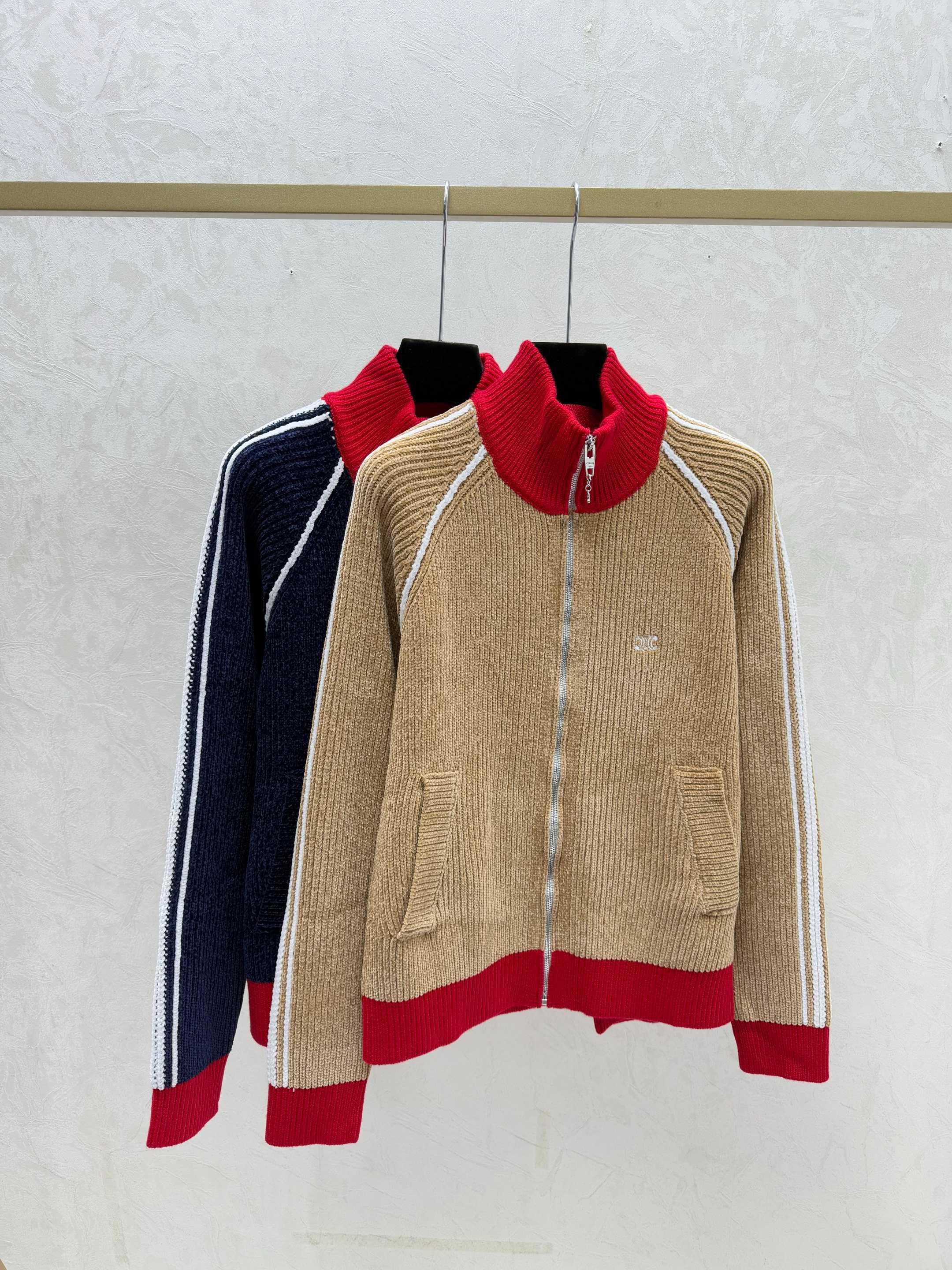 Details: Early autumn color-blocked high-neck knitted long-sleeved cardigan in khaki or royal blue, sizes 36-40.