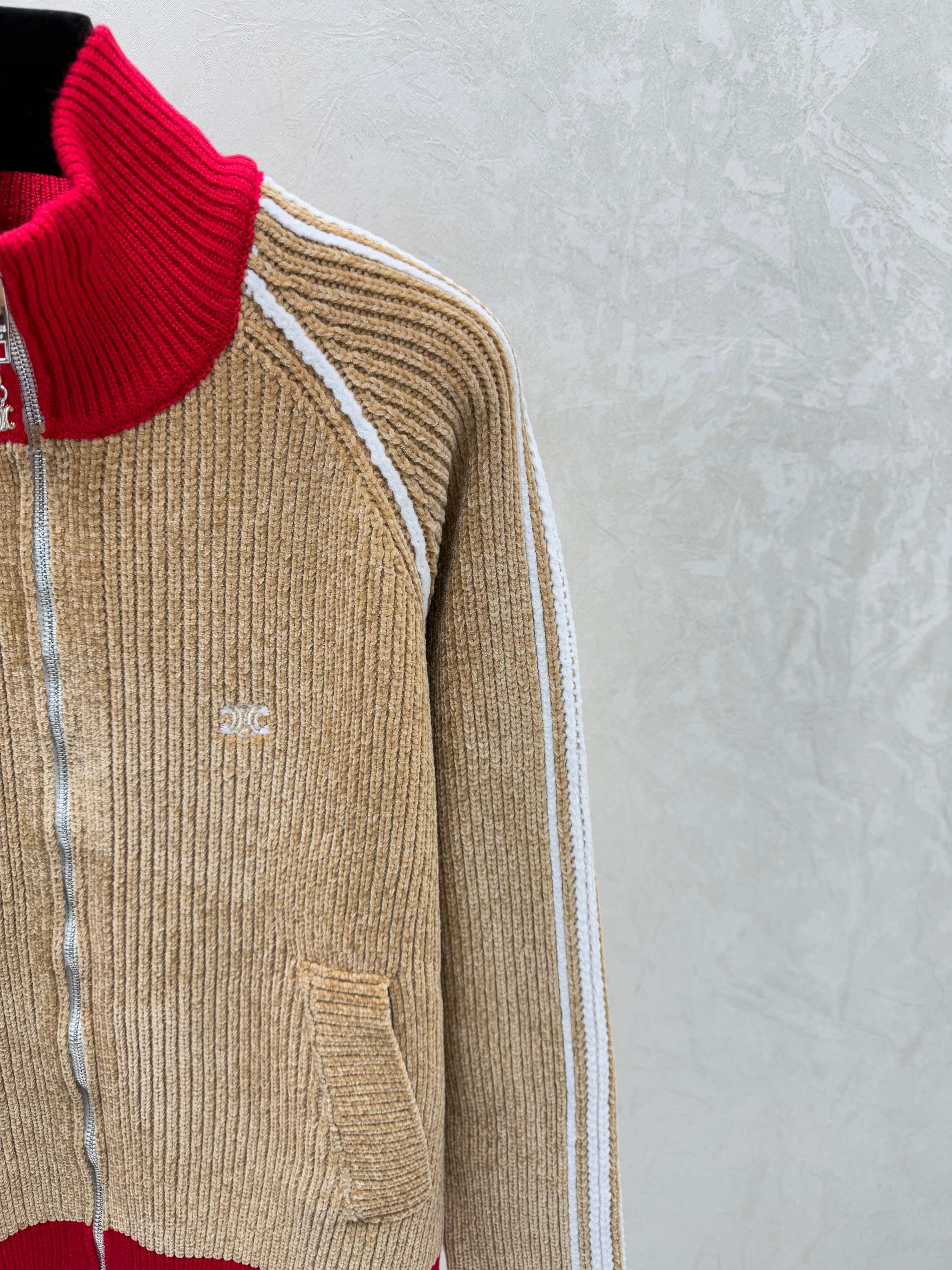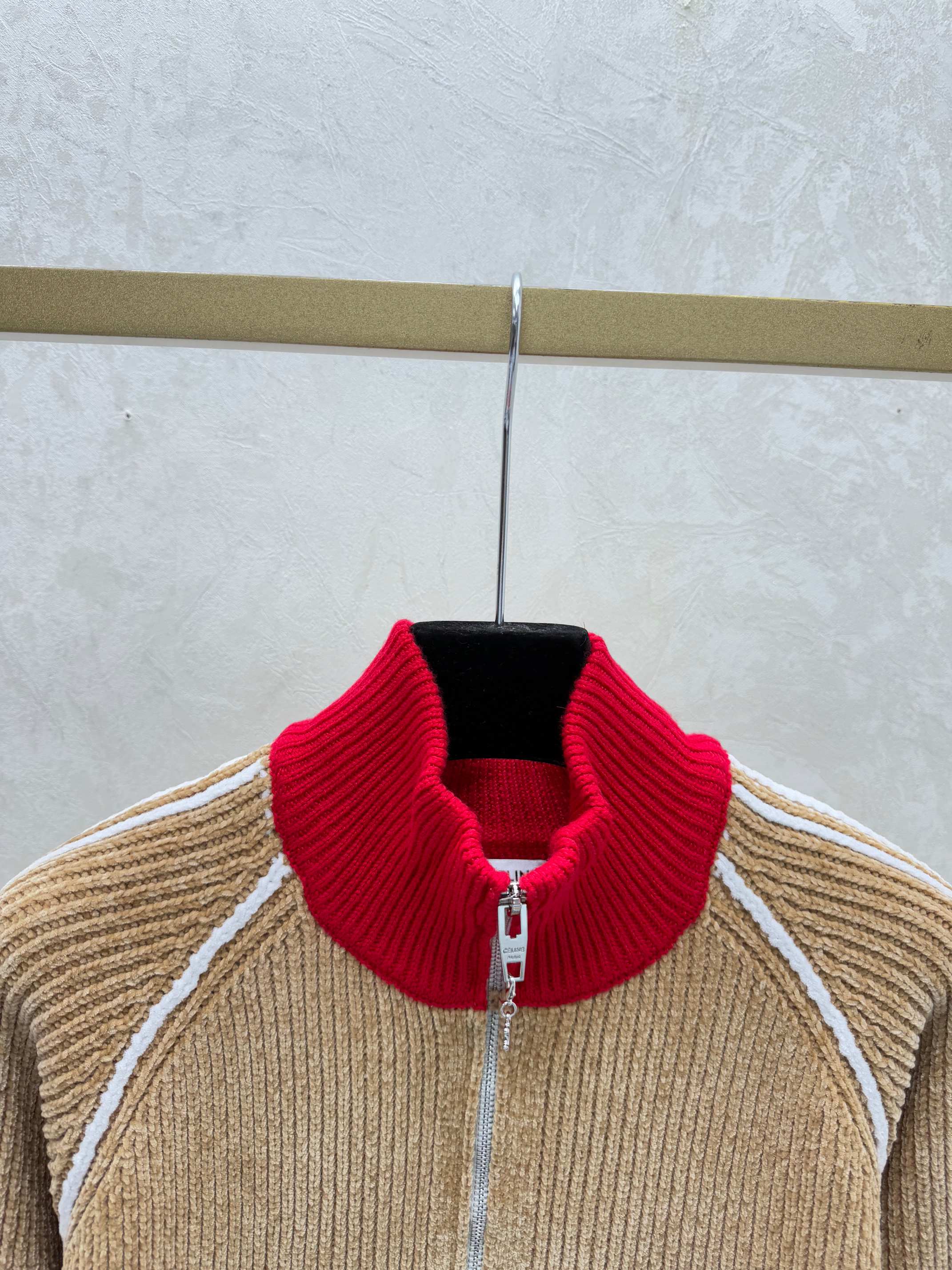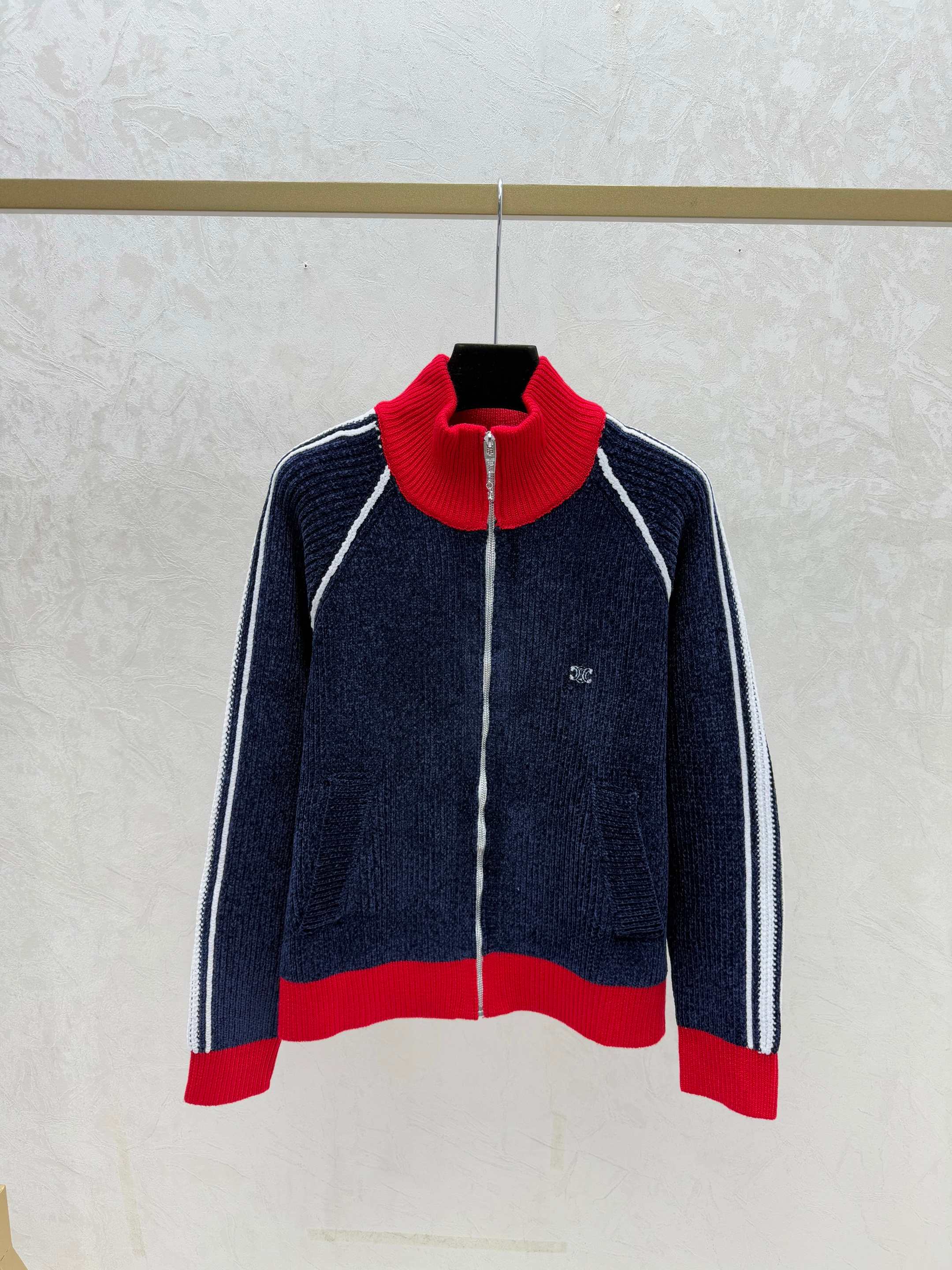 Details: Early autumn color-blocked high-neck knitted long-sleeved cardigan in khaki or royal blue, sizes 36-40.