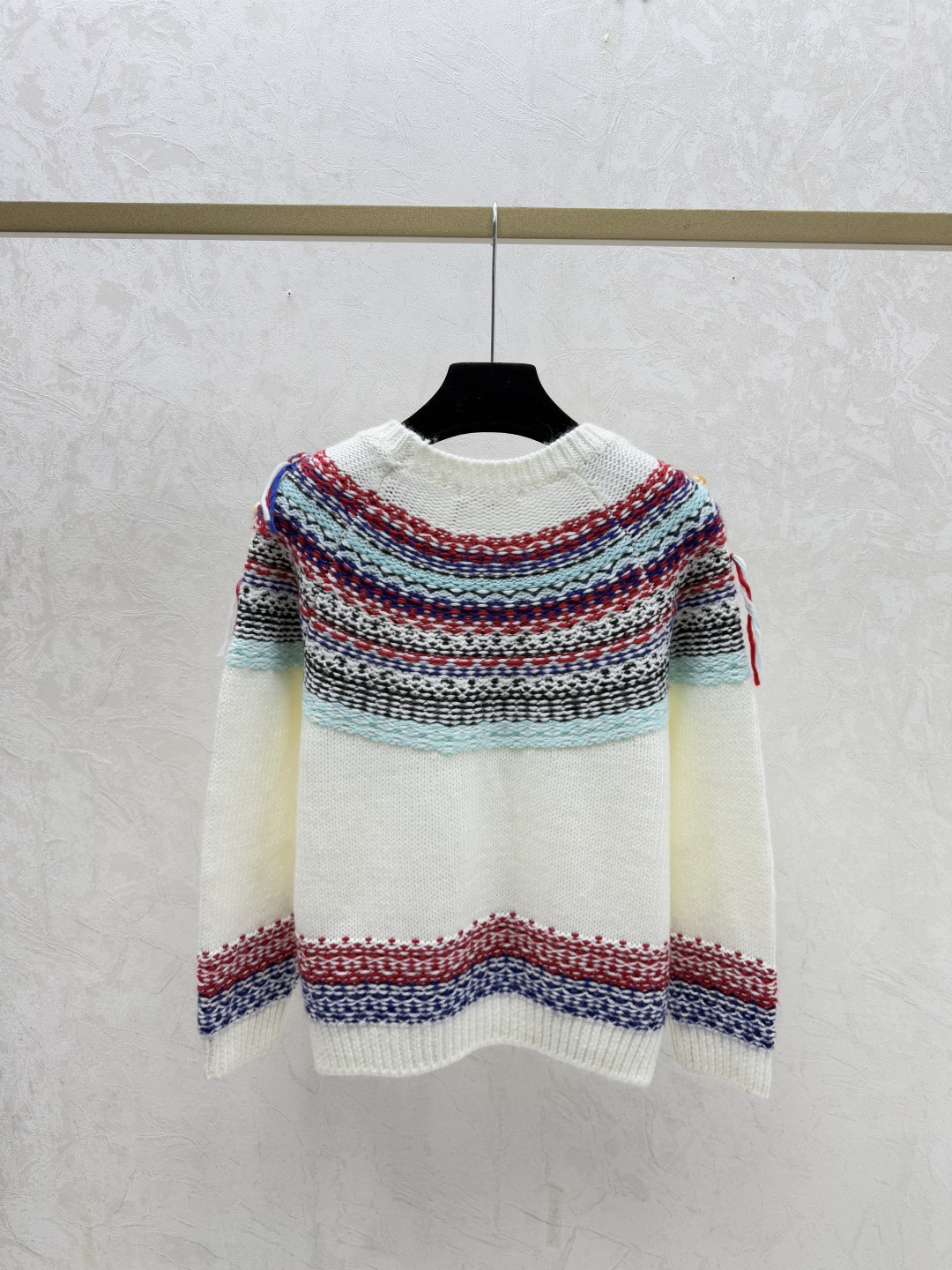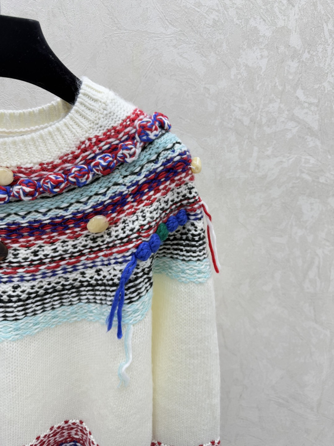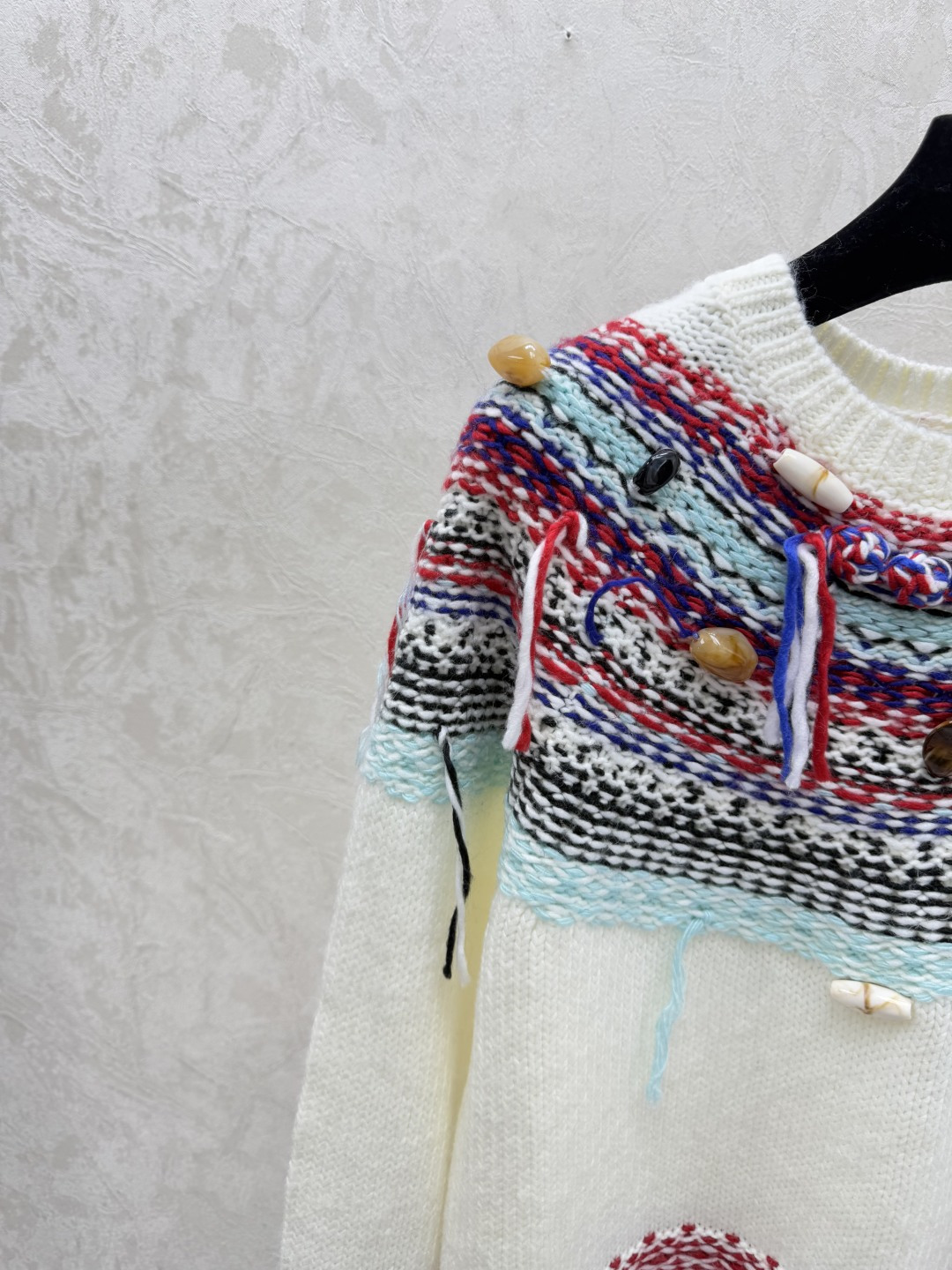 Details: Early autumn knitted long-sleeved top with striped and bead pattern, white, sizes 36, 38, 40.