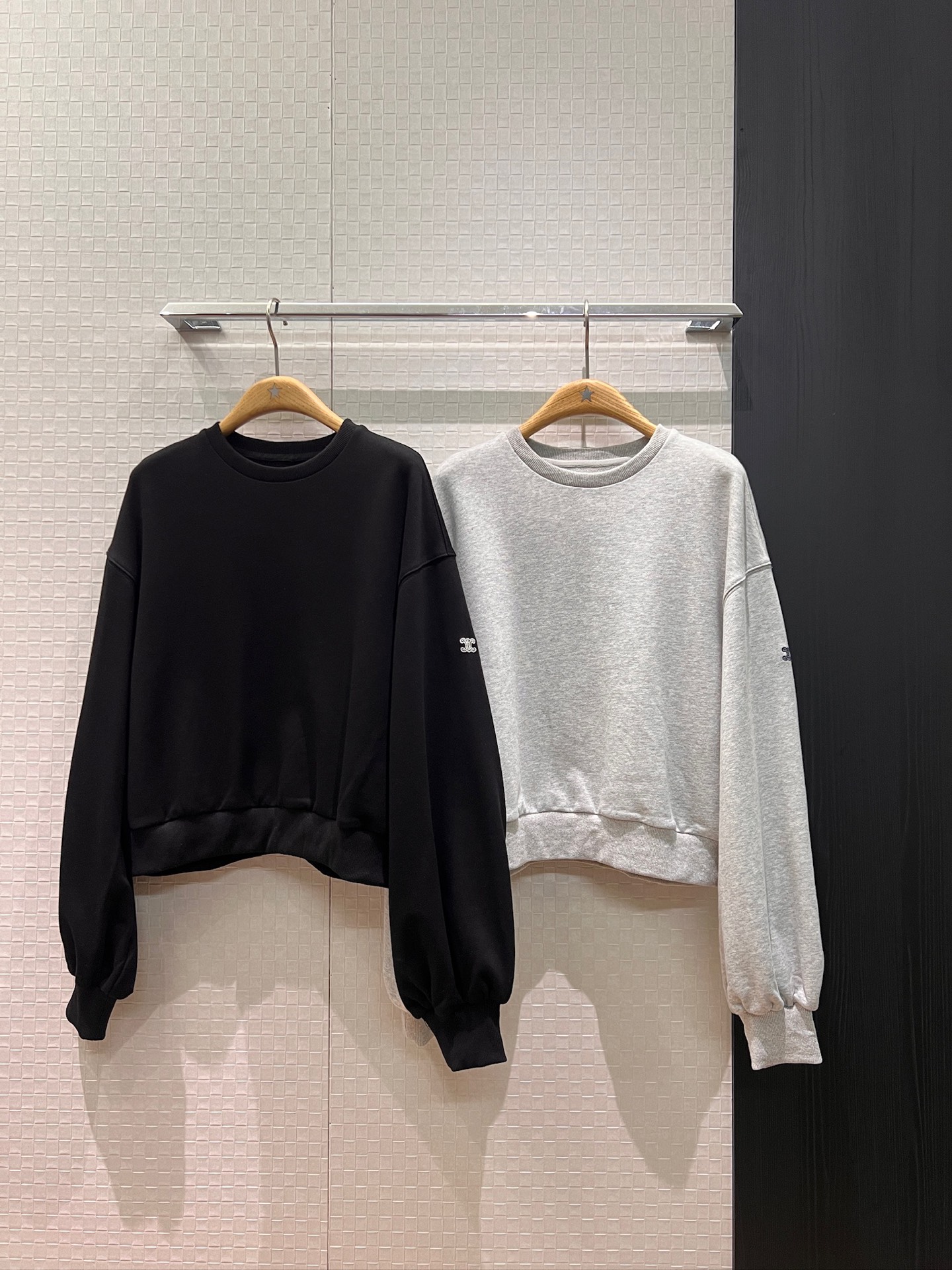 Details: New sweatshirt featuring arch embroidery, offering a relaxed and charming look.