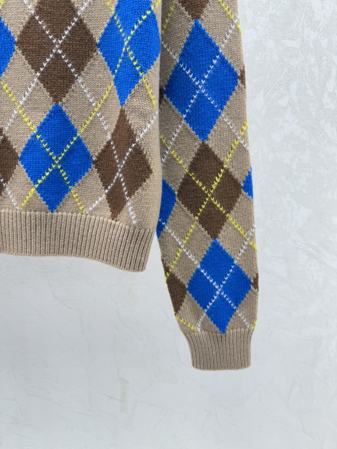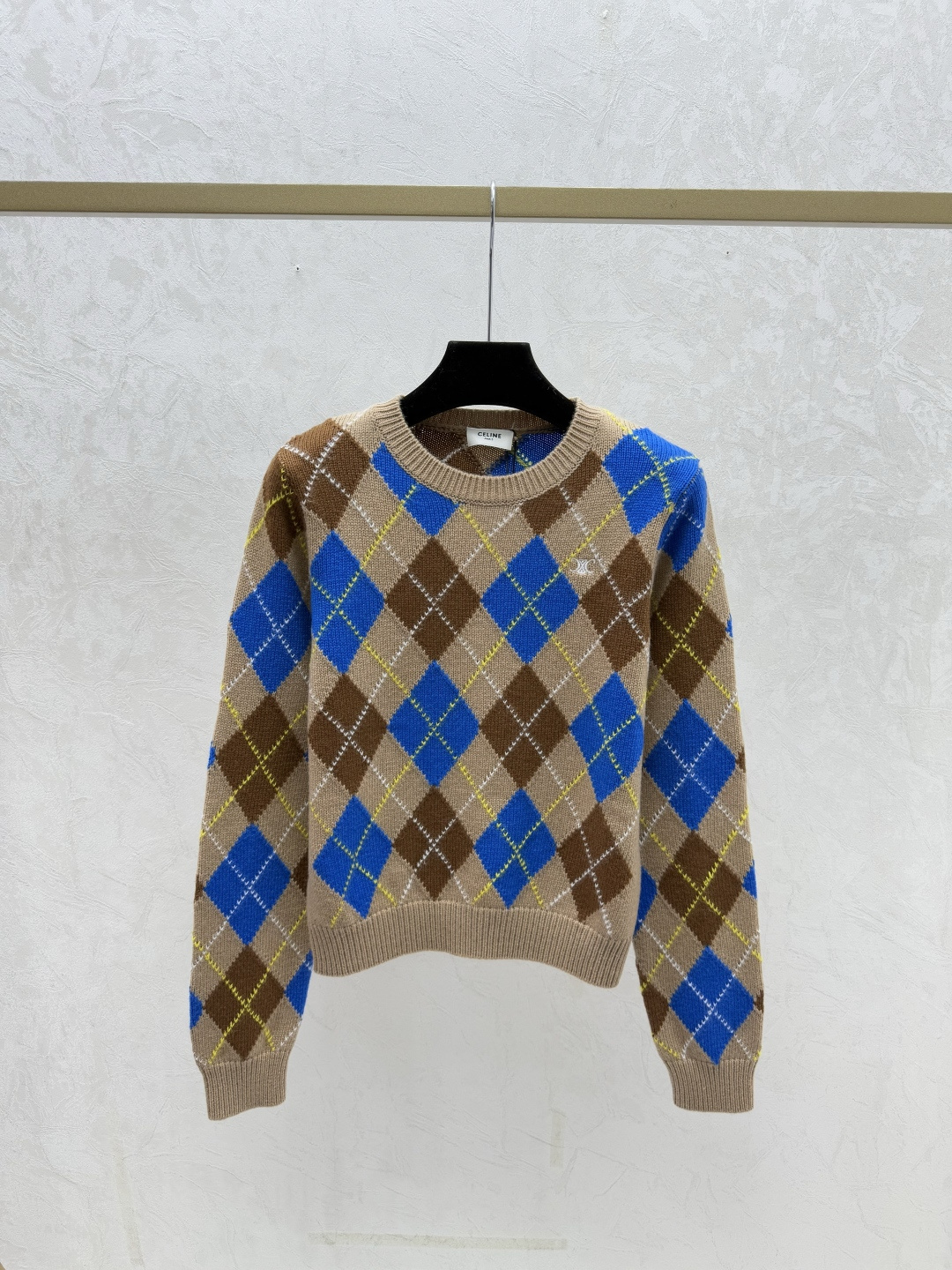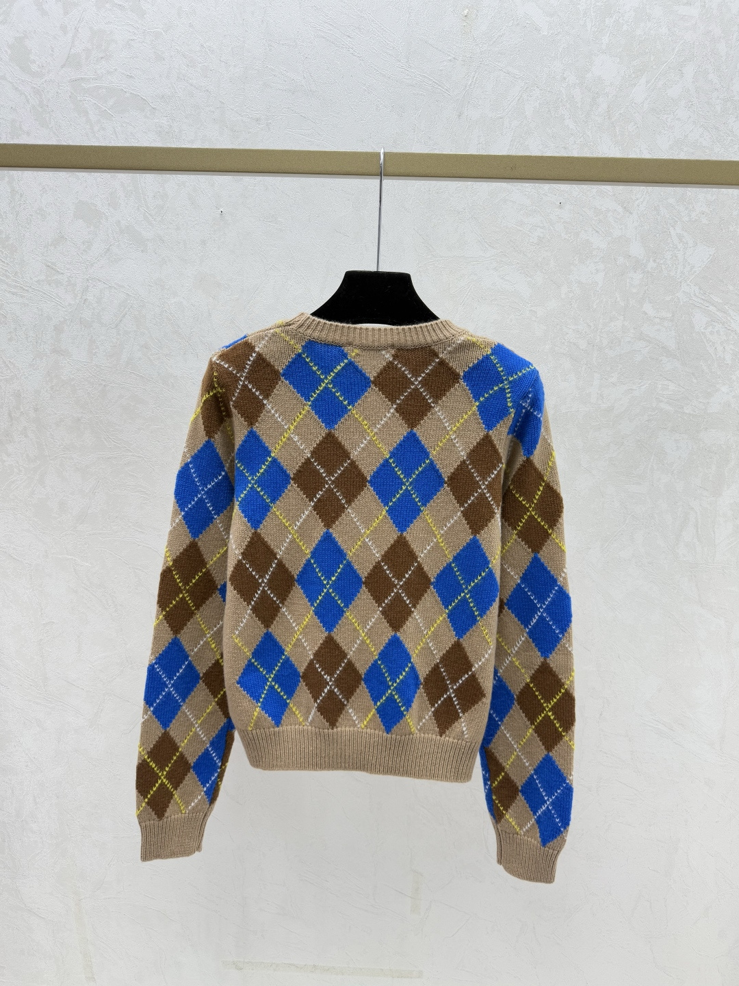 Details: Early autumn checkered round-neck knitted long-sleeved top in khaki, sizes 36-40.