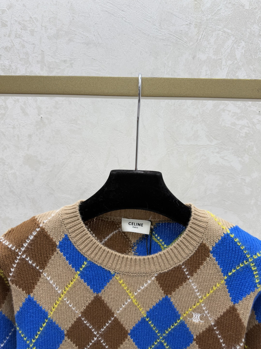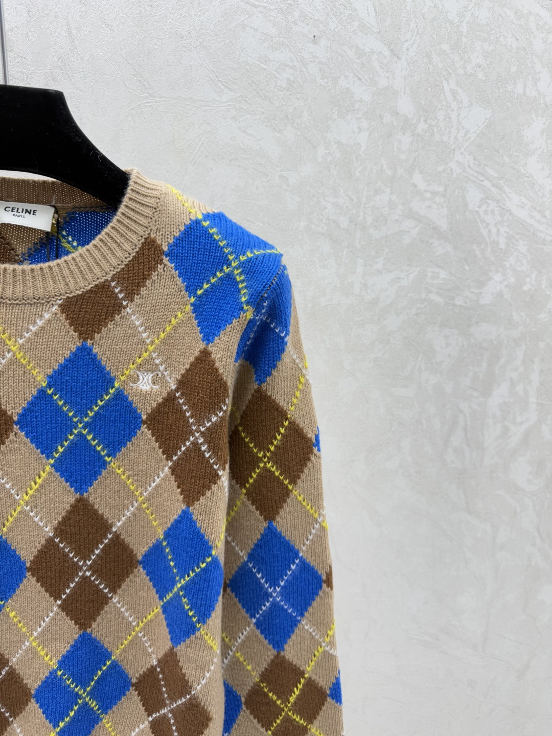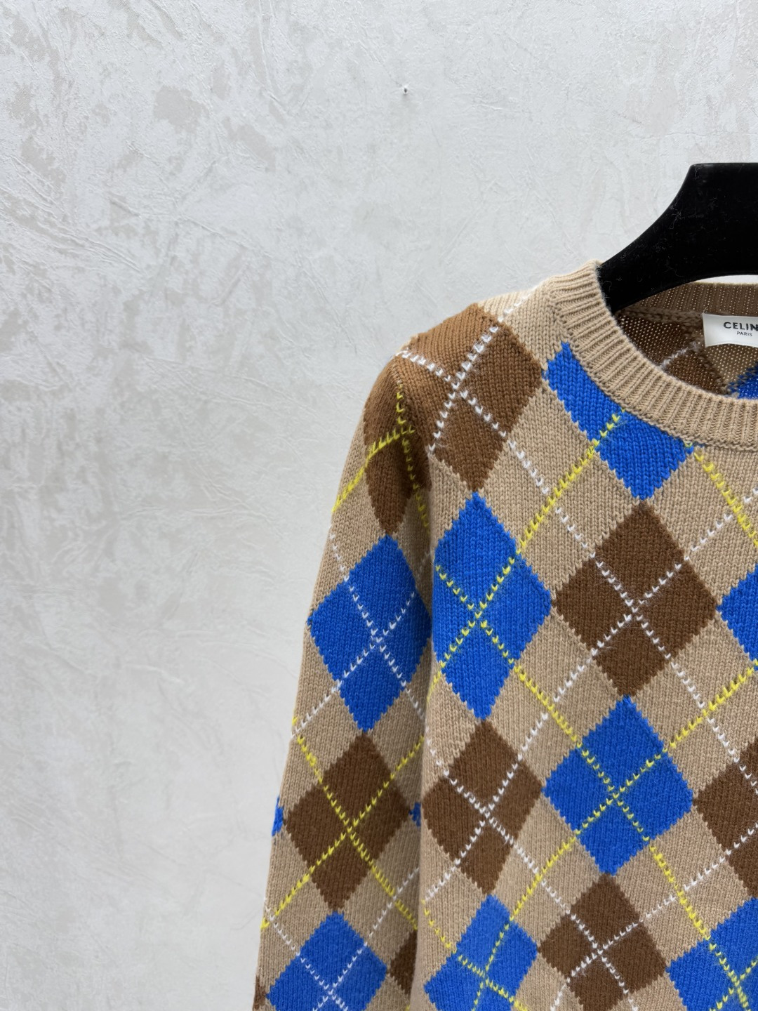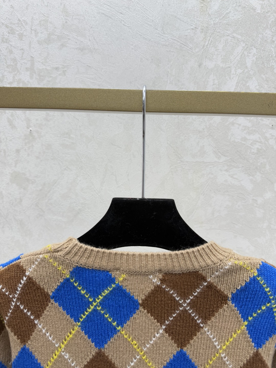 Details: Early autumn checkered round-neck knitted long-sleeved top in khaki, sizes 36-40.