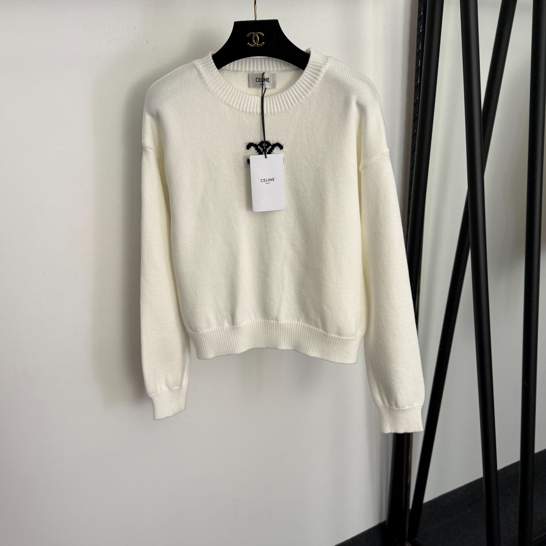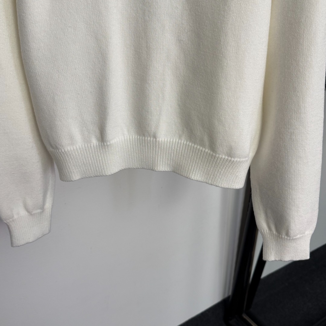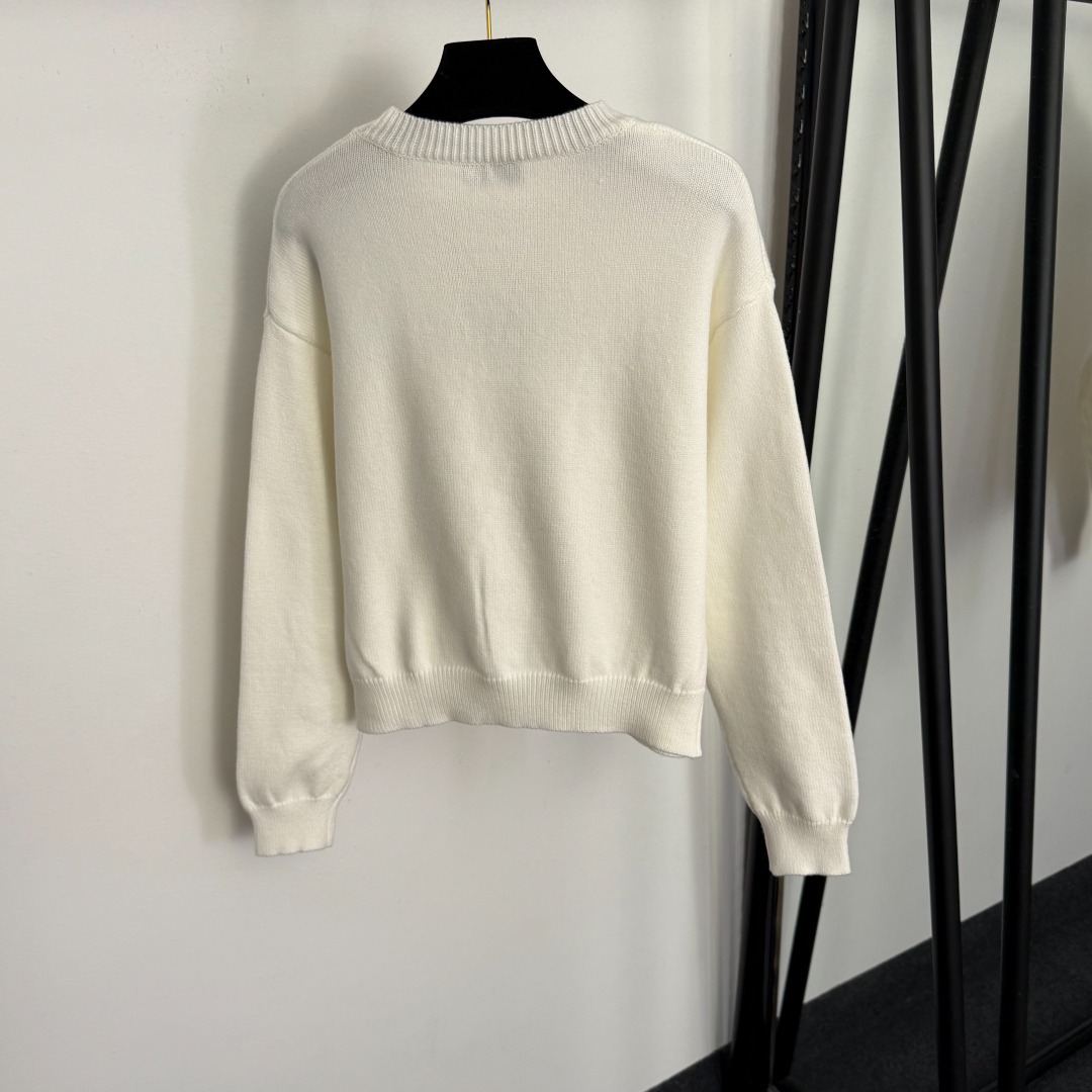 Details: New color-blocked logo long-sleeved knitted pullover in white, red, black, one size.