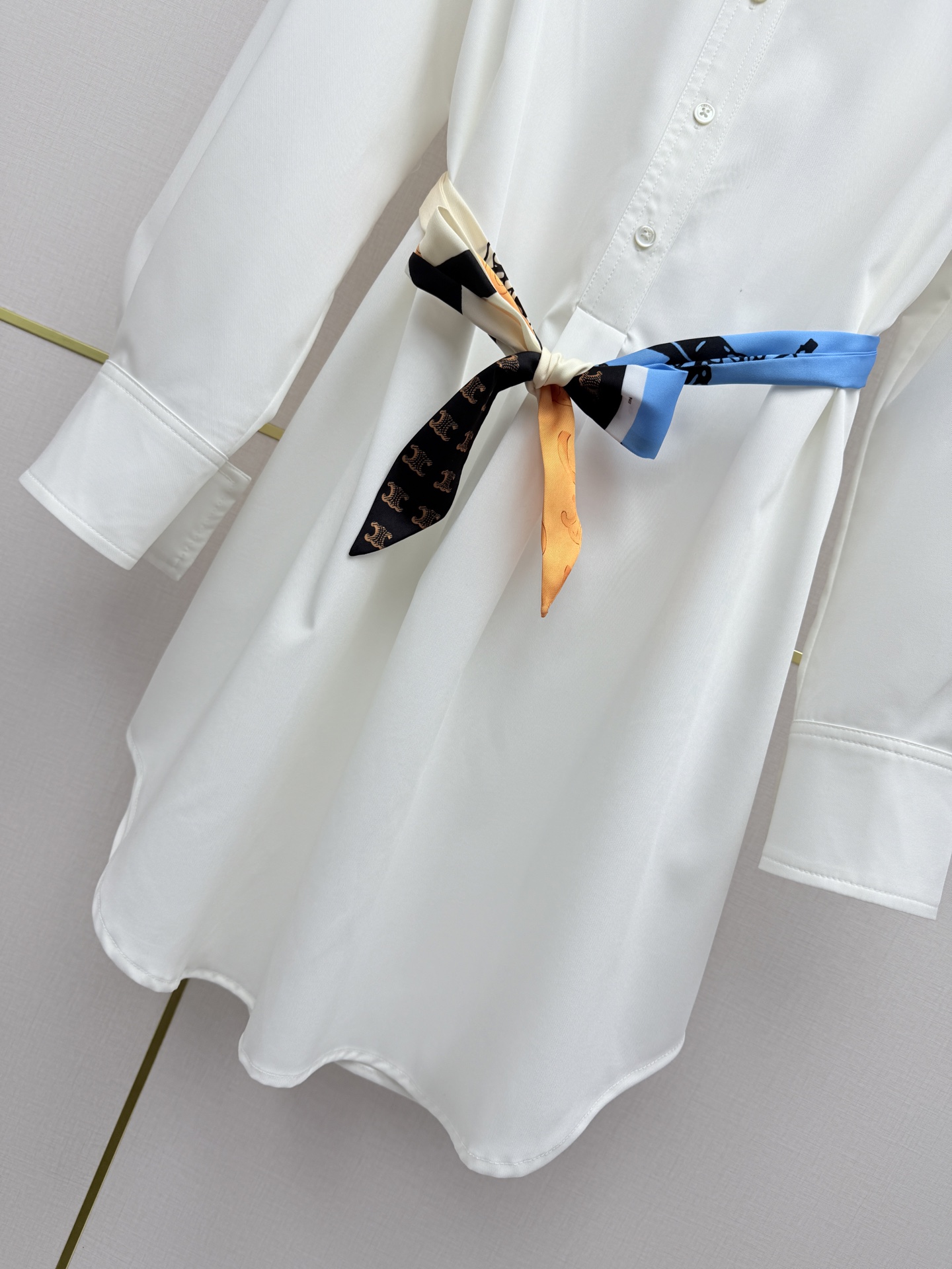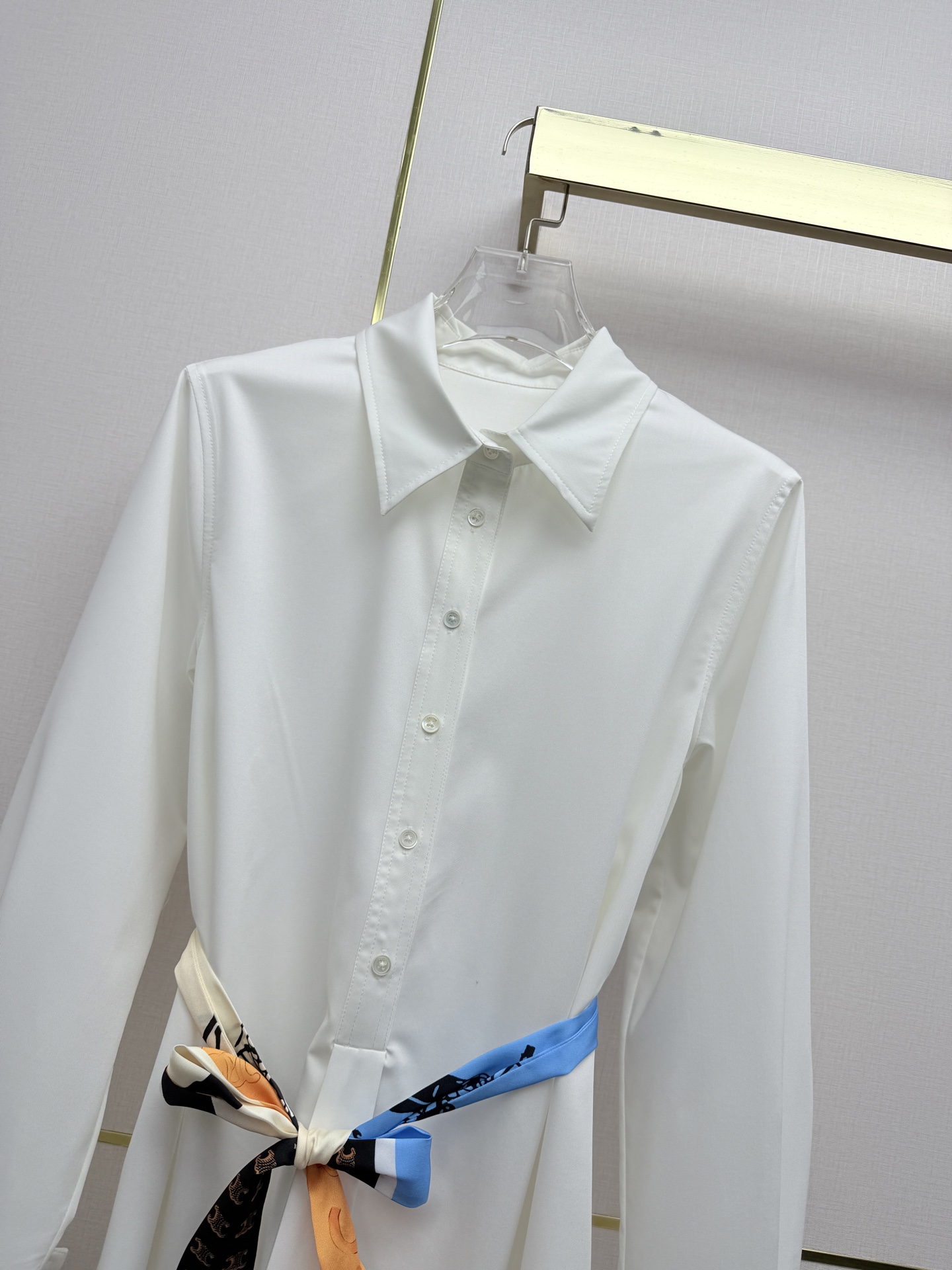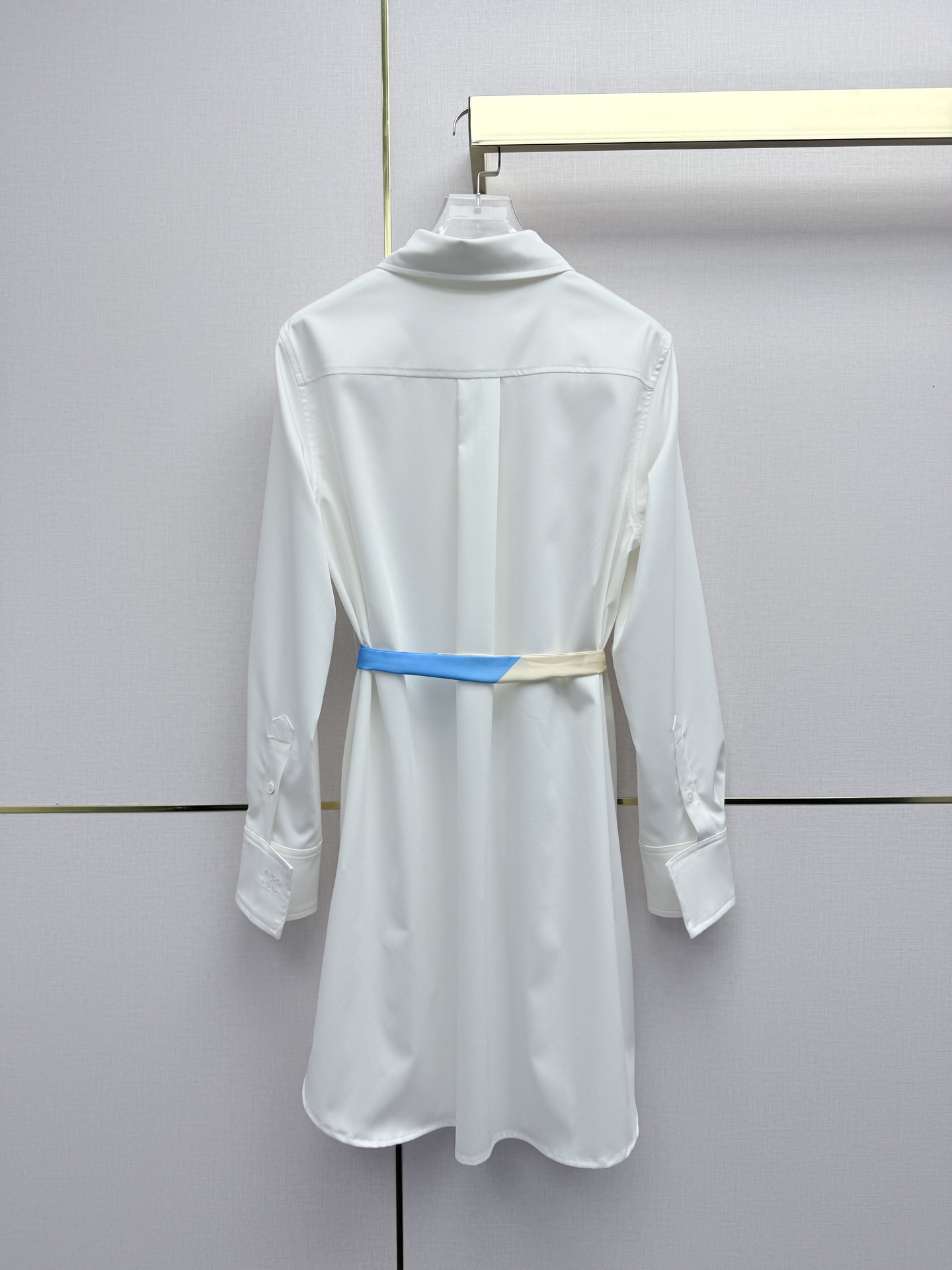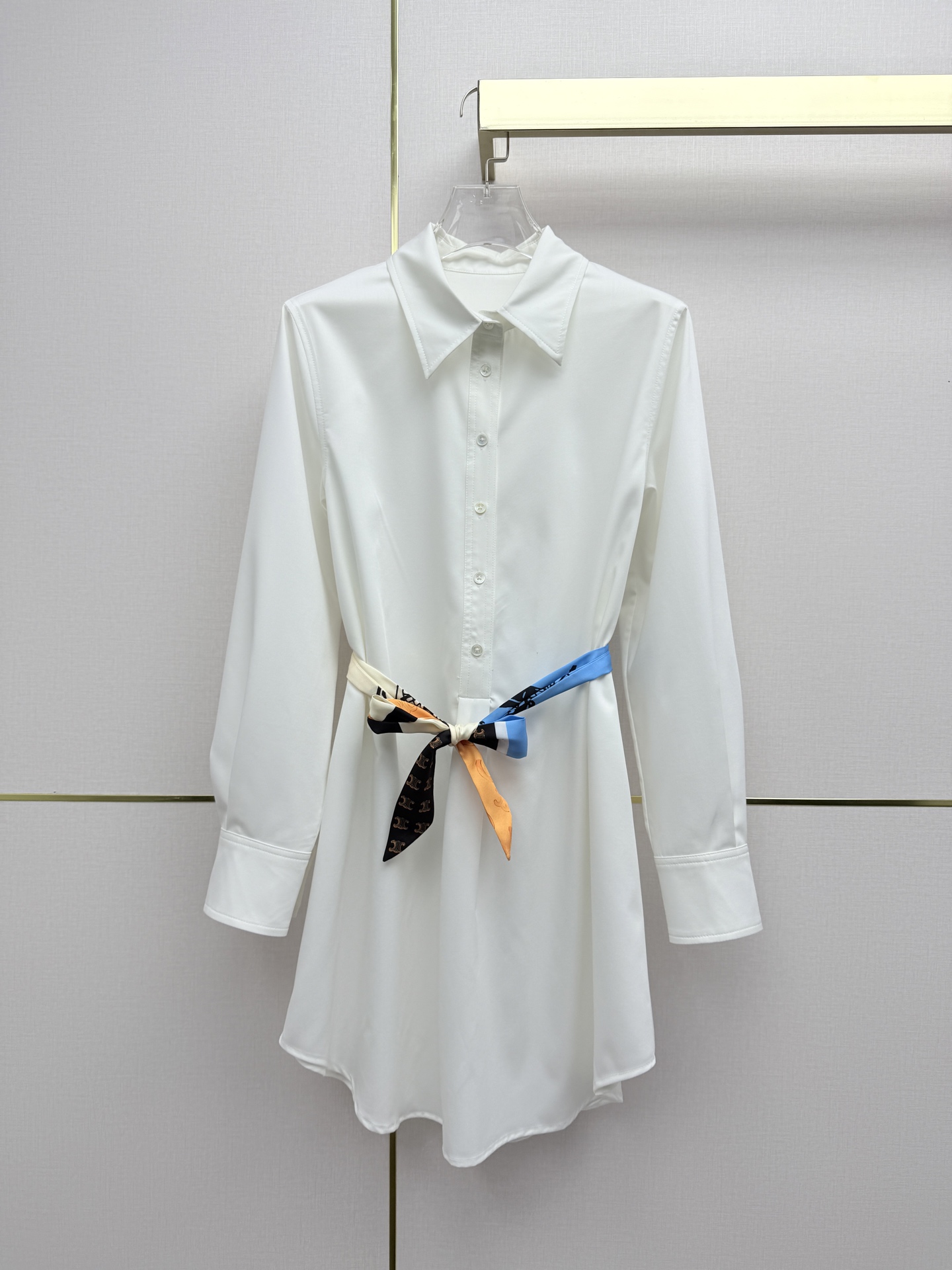 Details: 26SS Early Spring Collared Shirt Dress with Arch Pattern Embroidery and Printed Belt. High-end Custom with Fine Workmanship