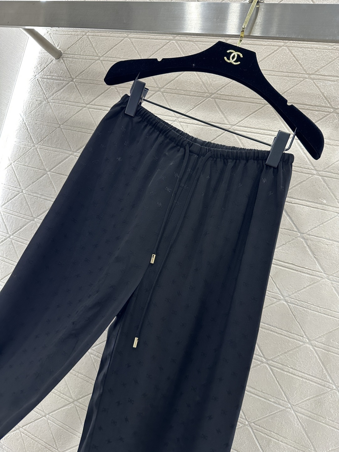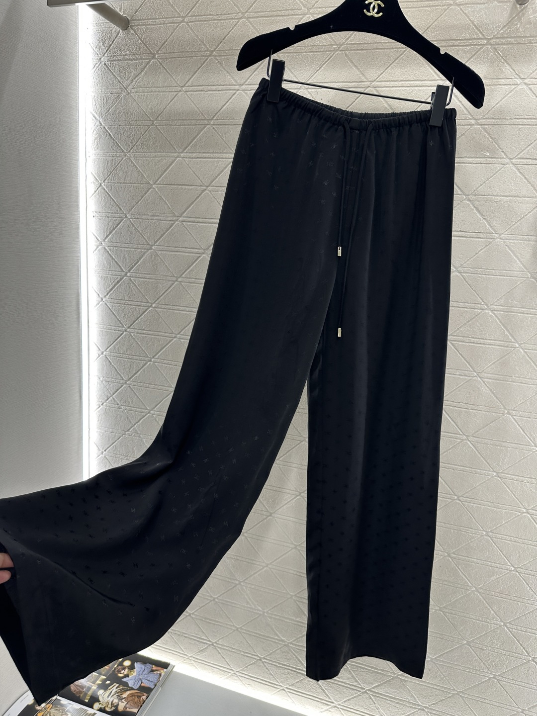 Details: Jacquard wide-leg pants, two colors, drawstring waist.
