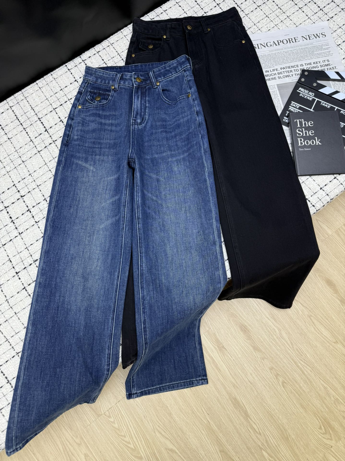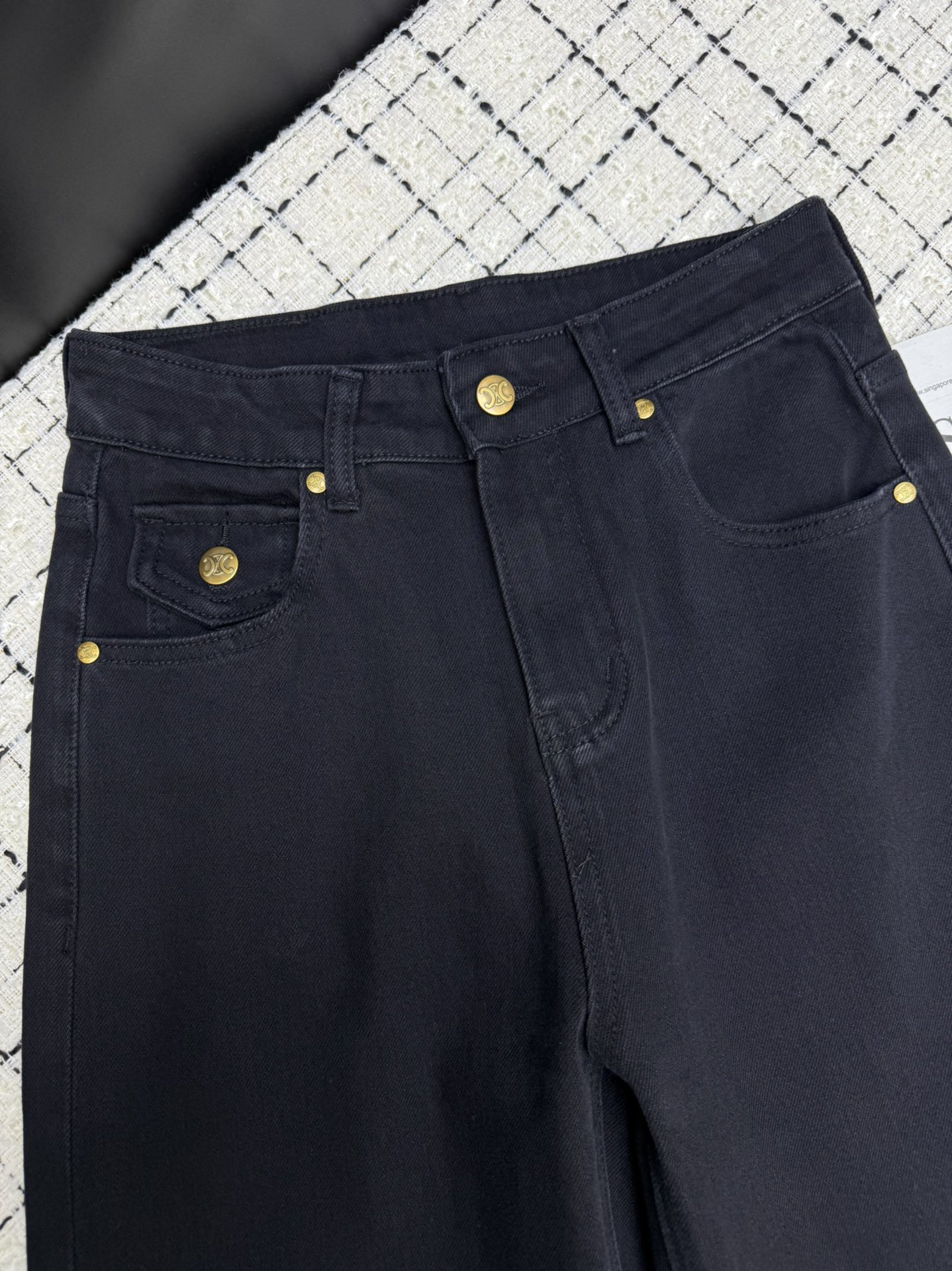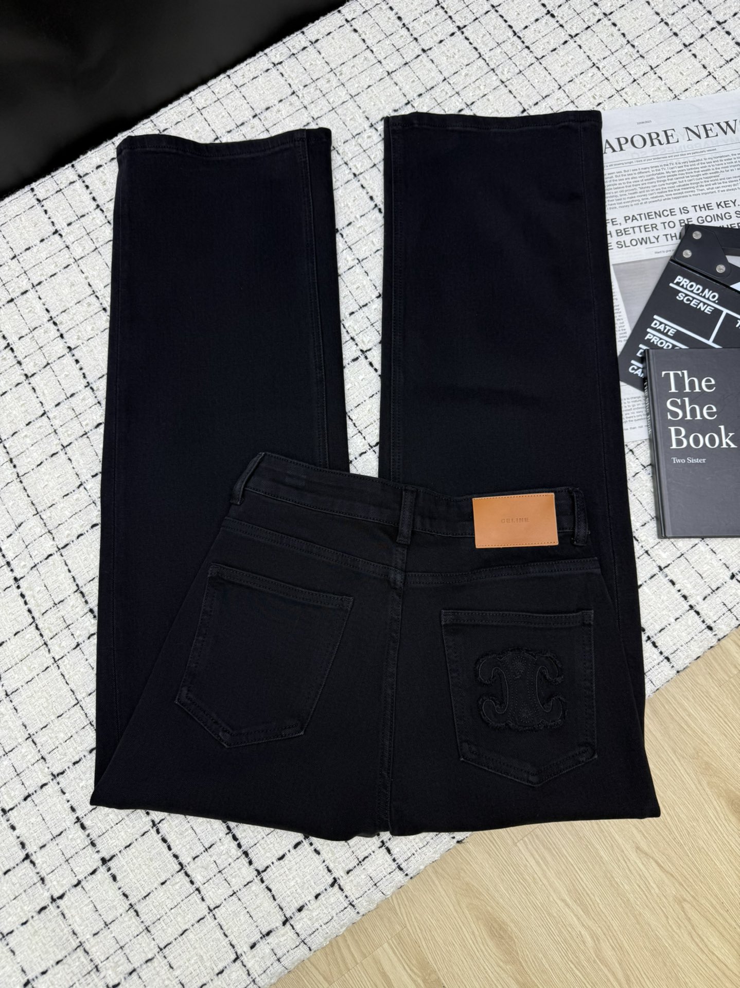 Details: FW straight - leg jeans with arch logo patch. Straighten legs, stylish and retro. High - end customization with fine workmanship