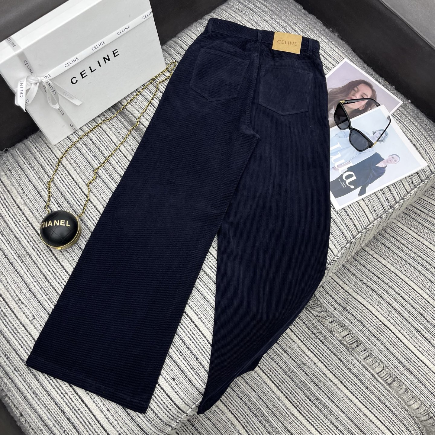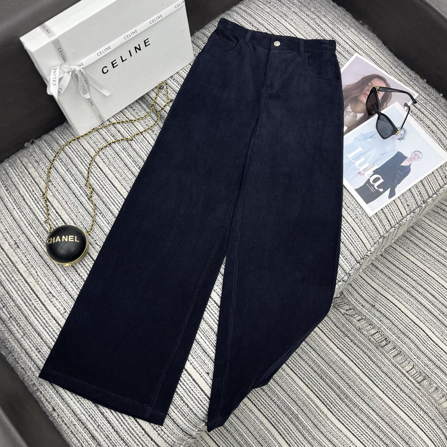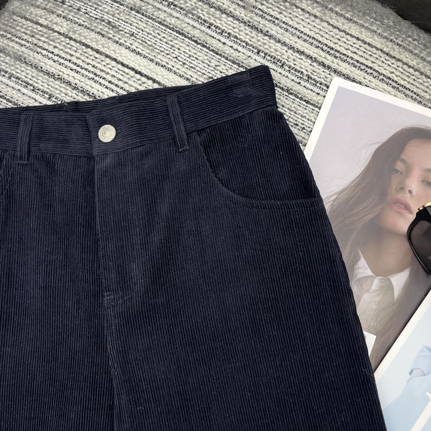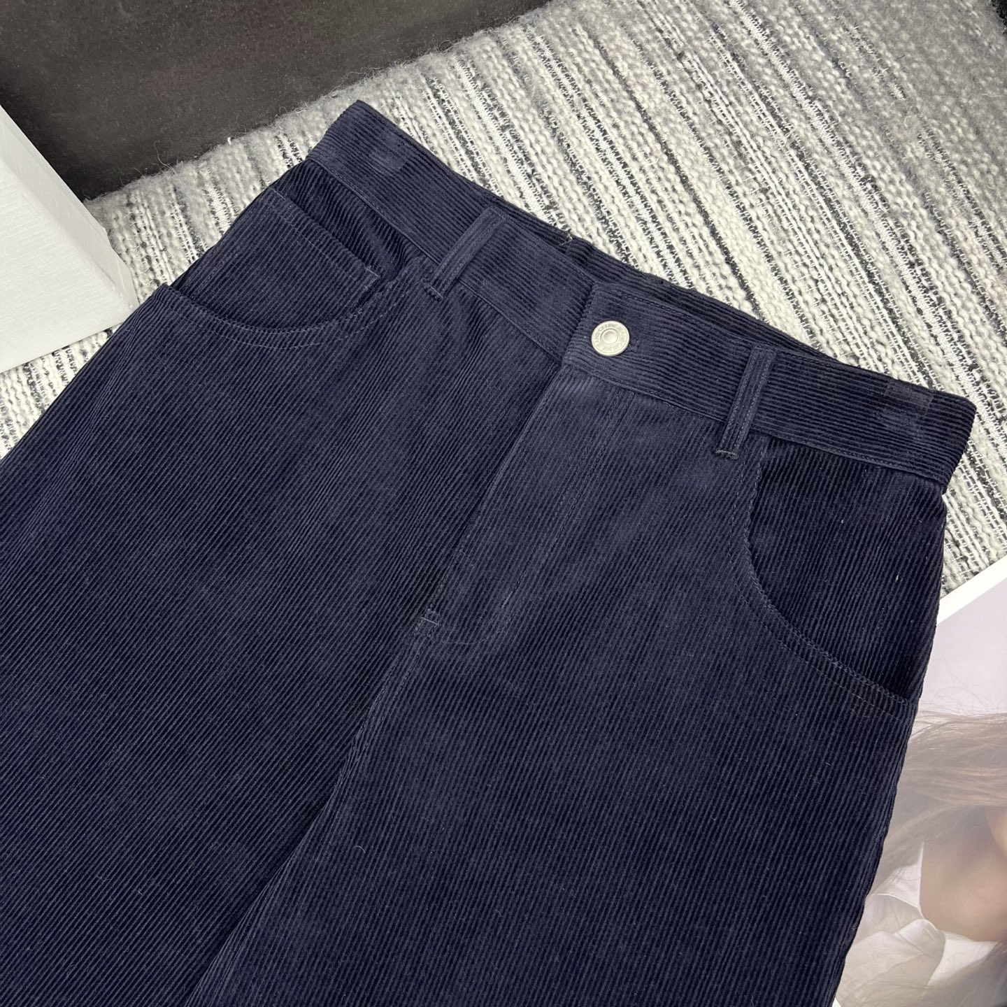 Details: Spring New Corduroy Wide-leg Pants with Leather Brand Embellishment