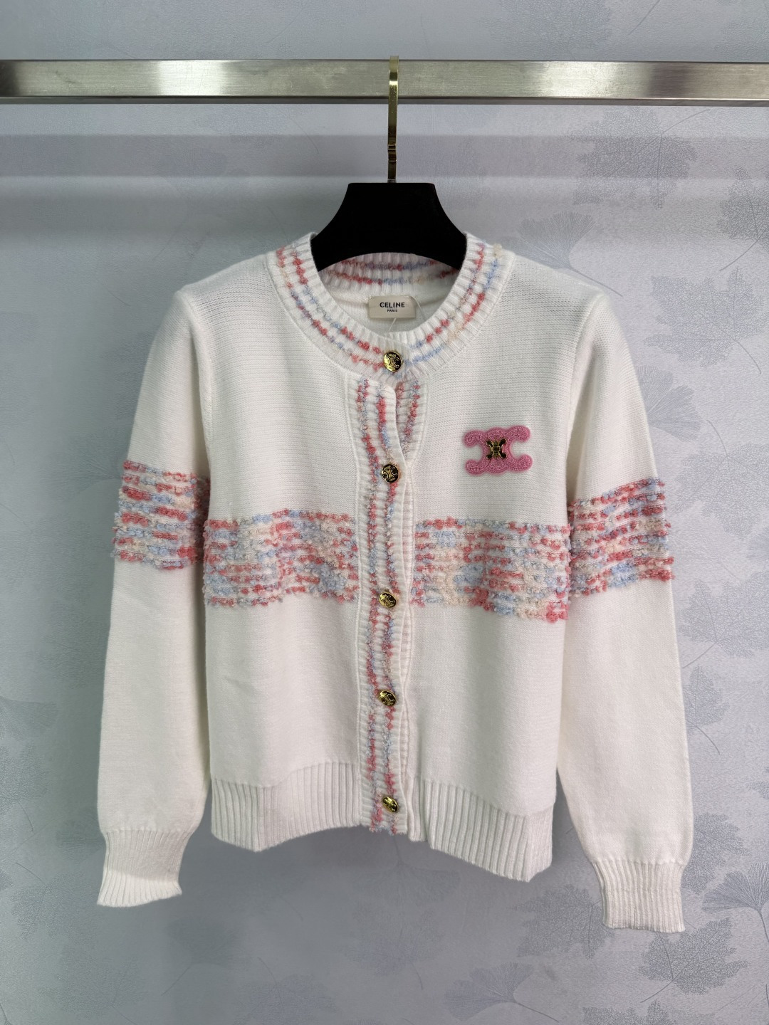 Details: Autumn arch knitted round-neck long-sleeve cardigan, made from custom wool yarn, showcasing a retro and charming appeal.