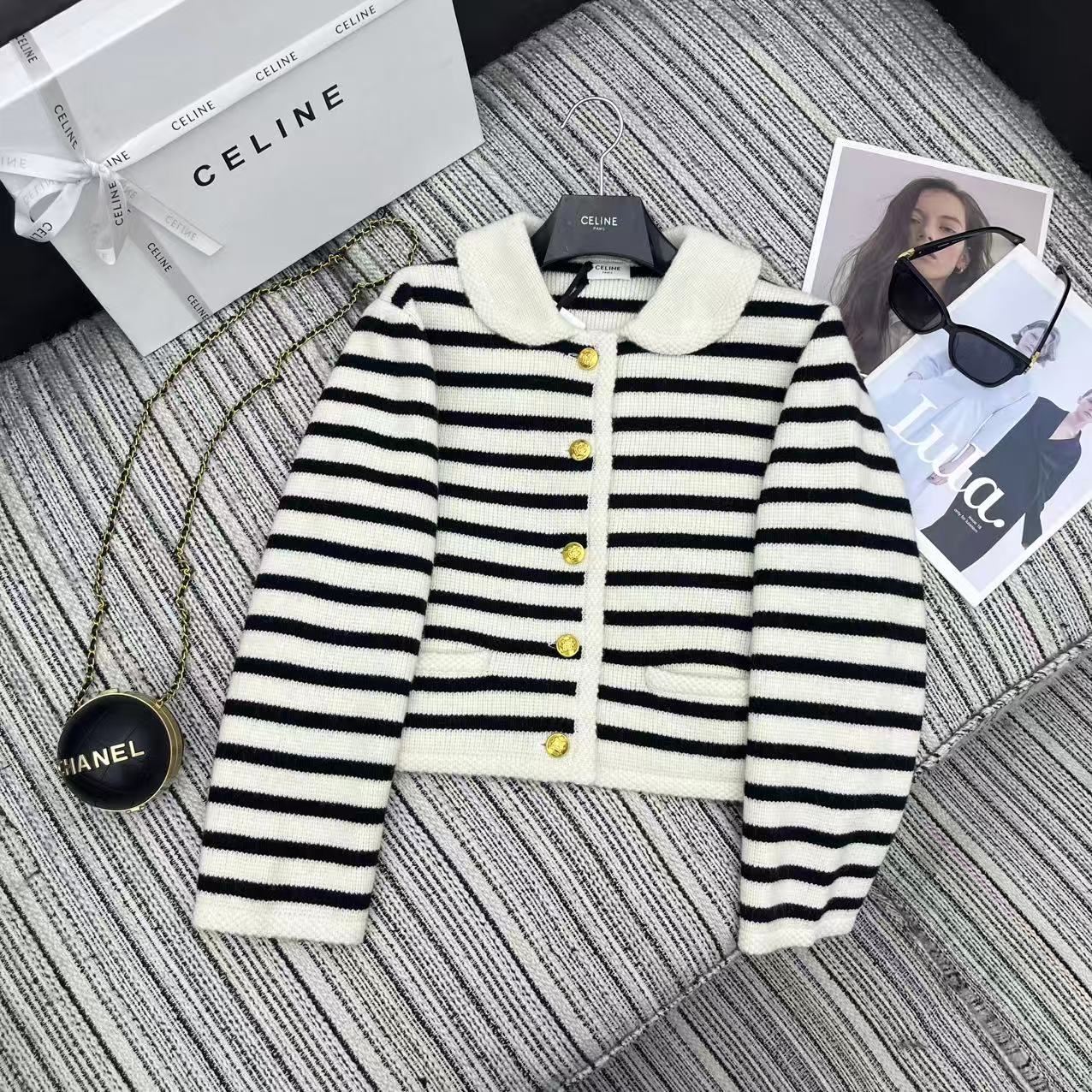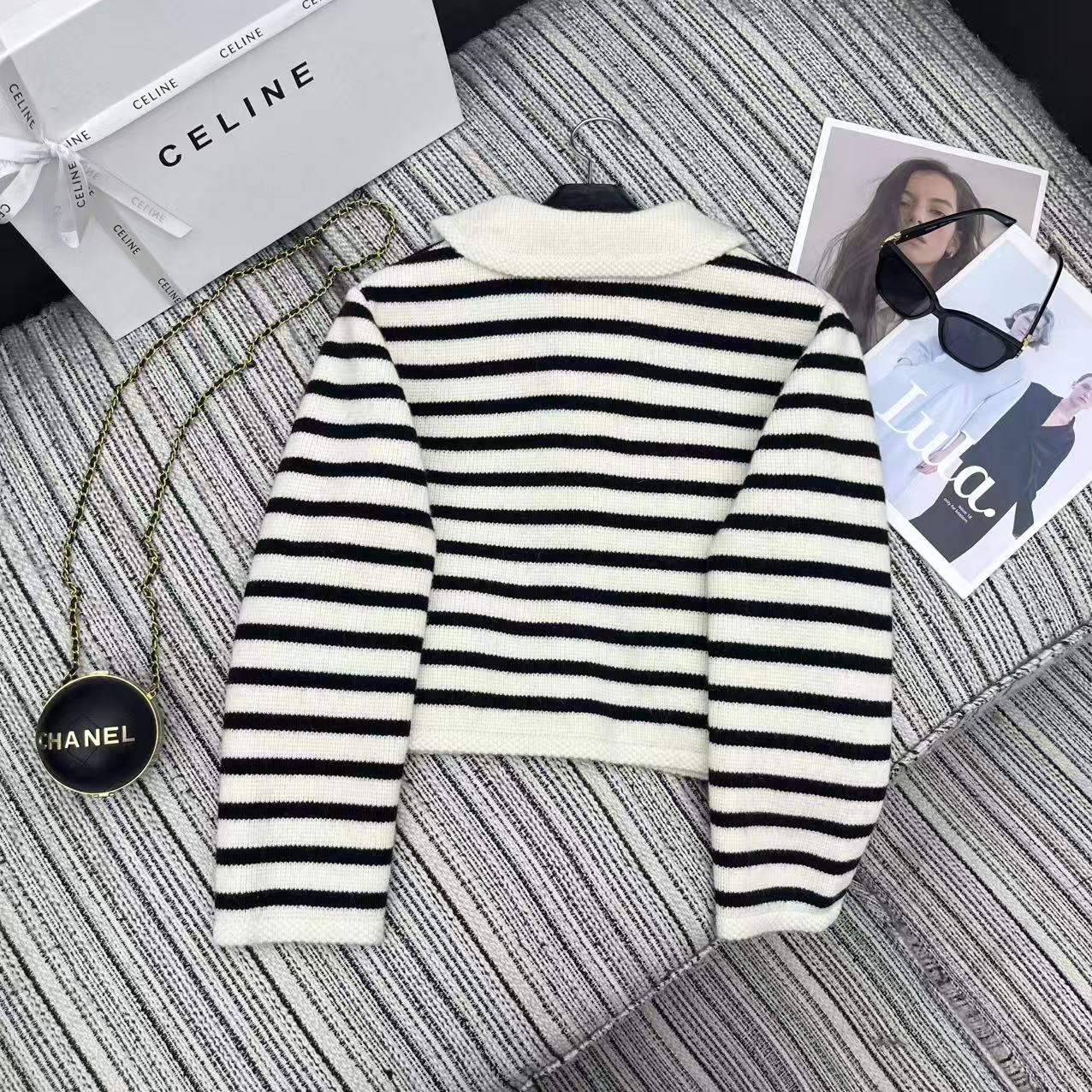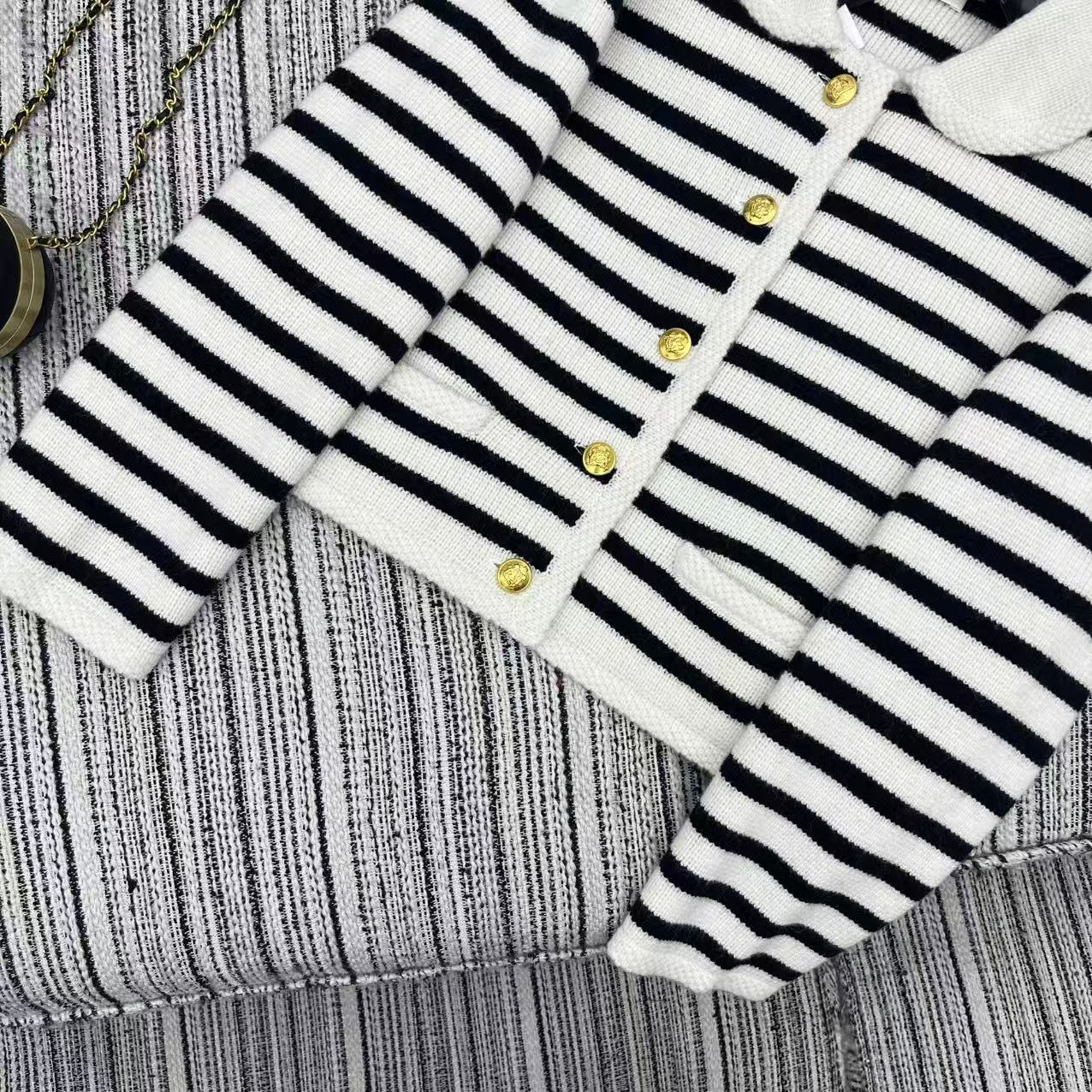 Details: Highly recommended early autumn series, woolen cardigan with doll collar and stripe, metal buttons.