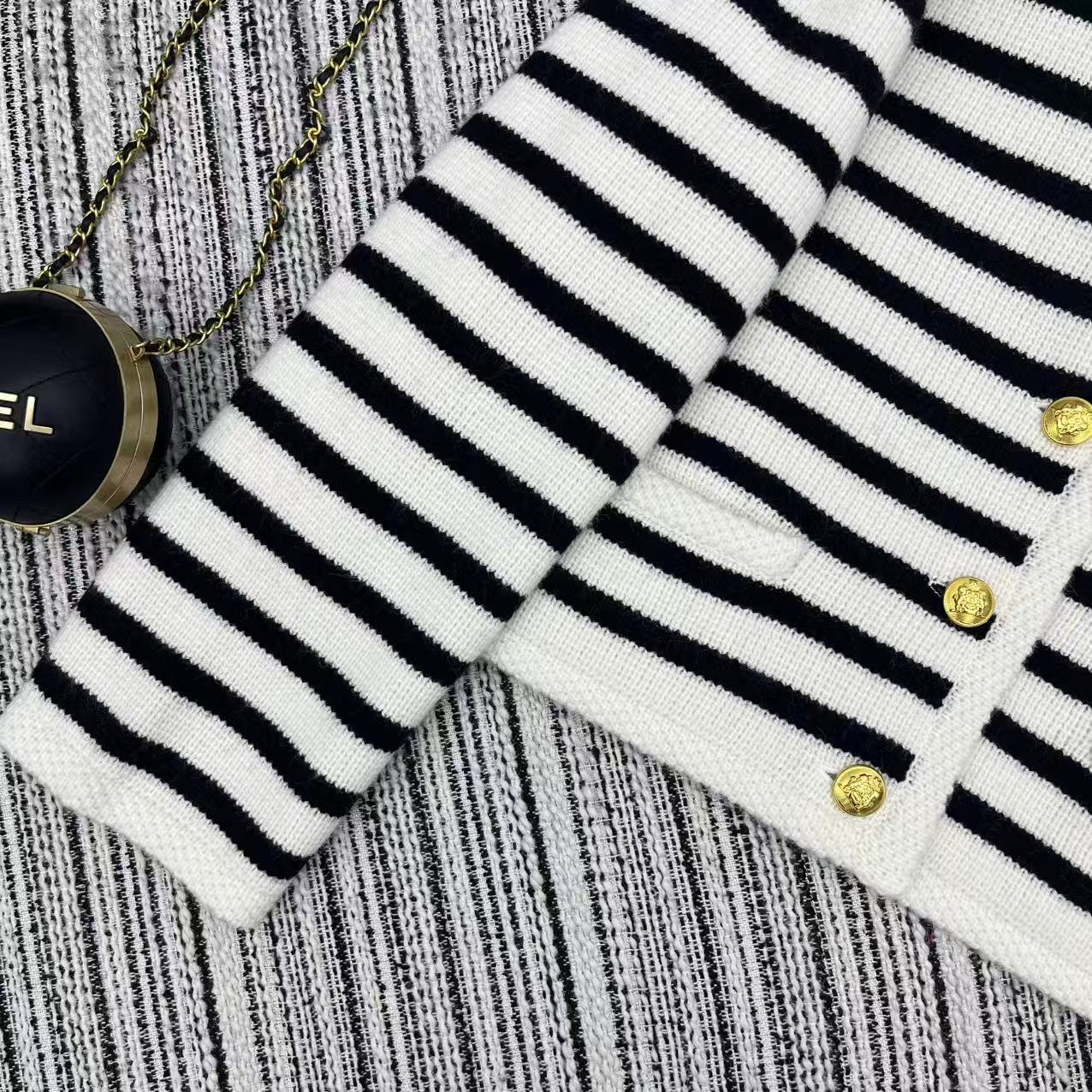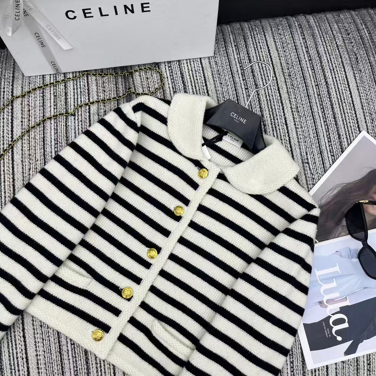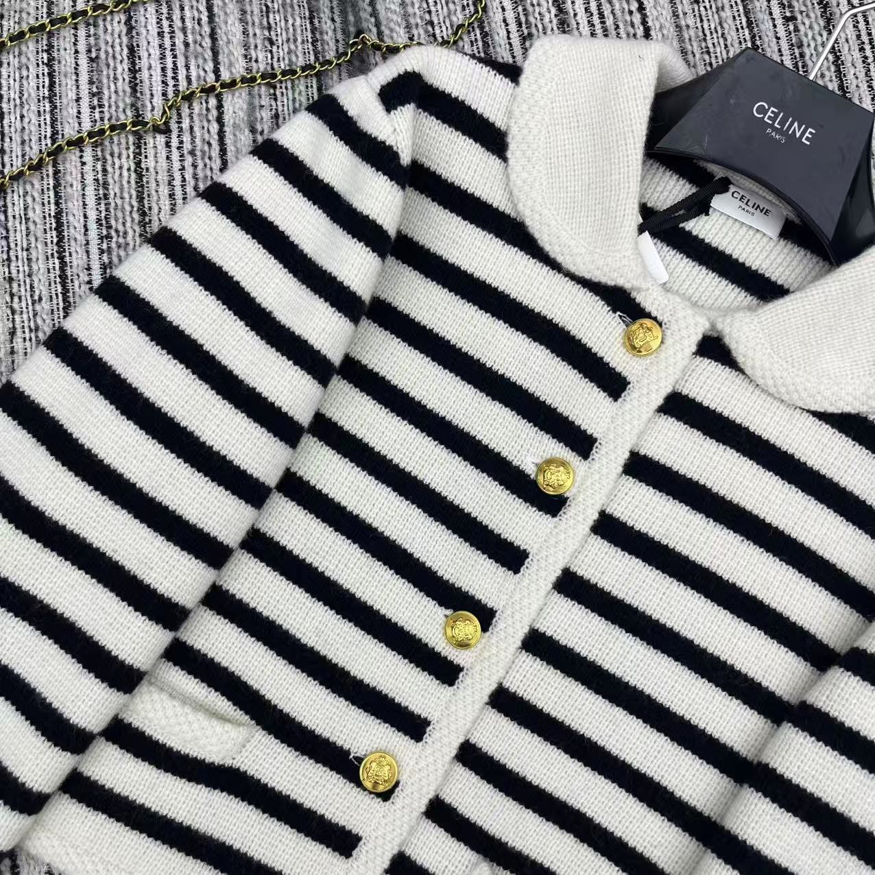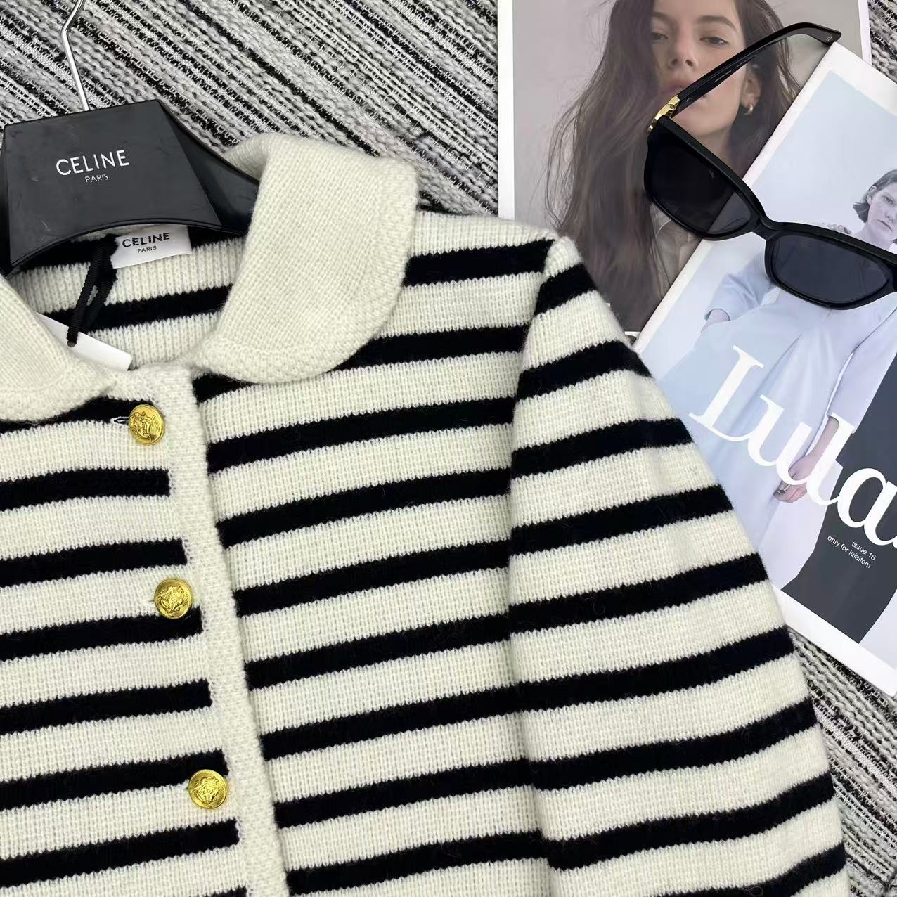 Details: Highly recommended early autumn series, woolen cardigan with doll collar and stripe, metal buttons.