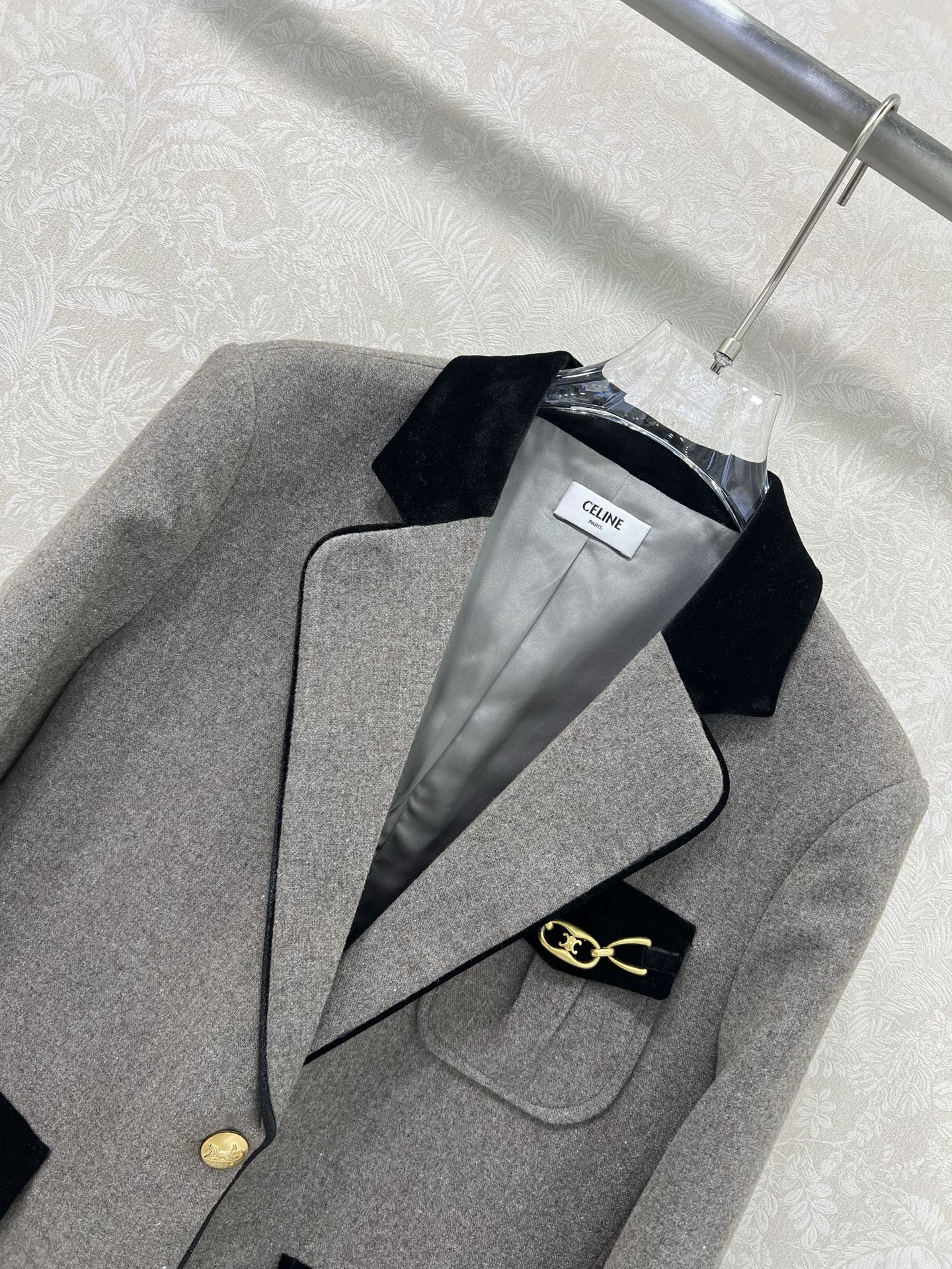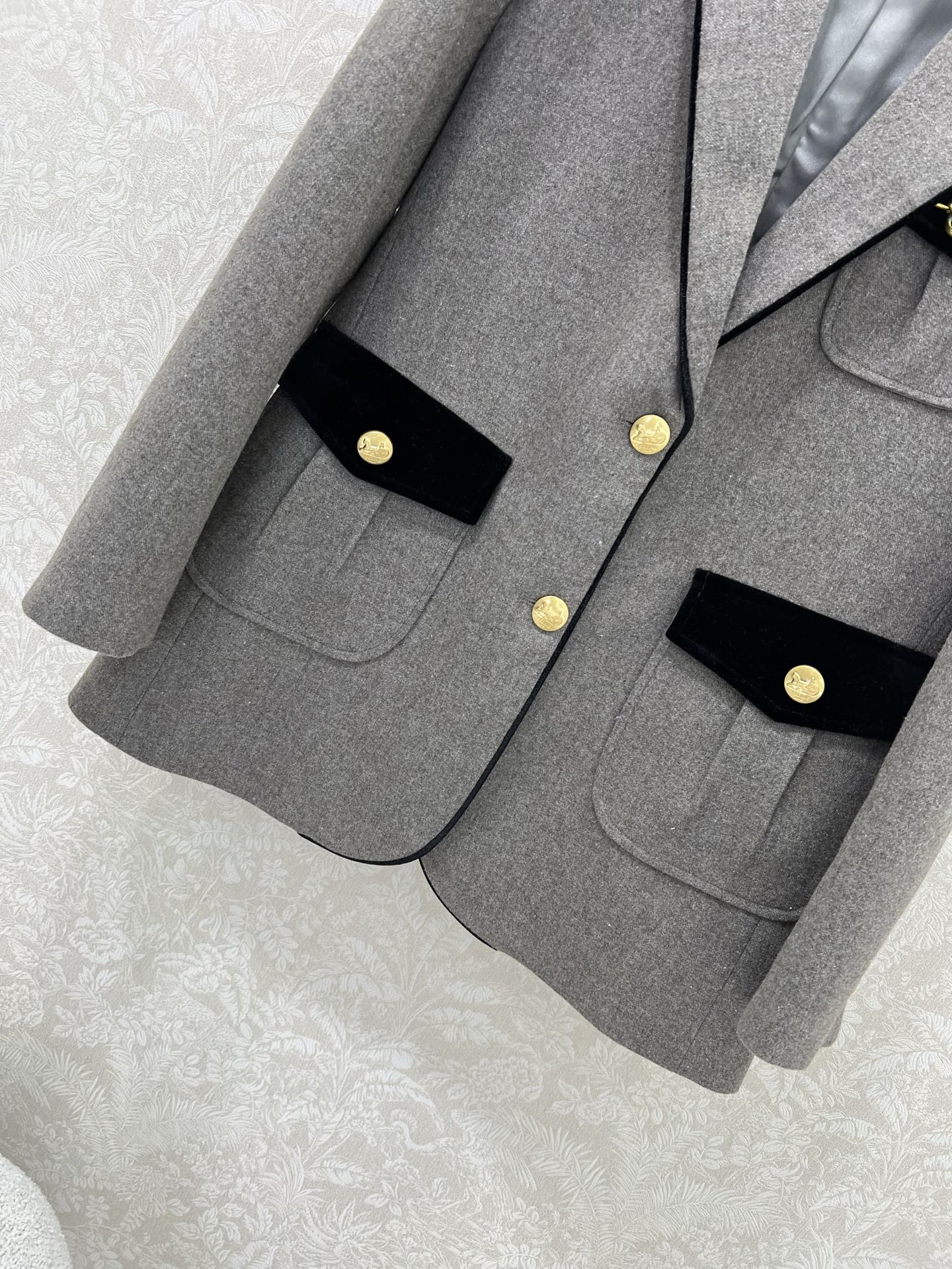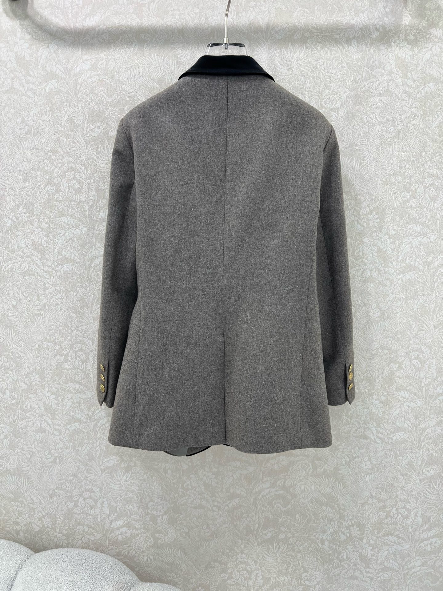 Details: New woolen suit in melange color, velvet collar, snowflake pattern, classic look, high-end customization