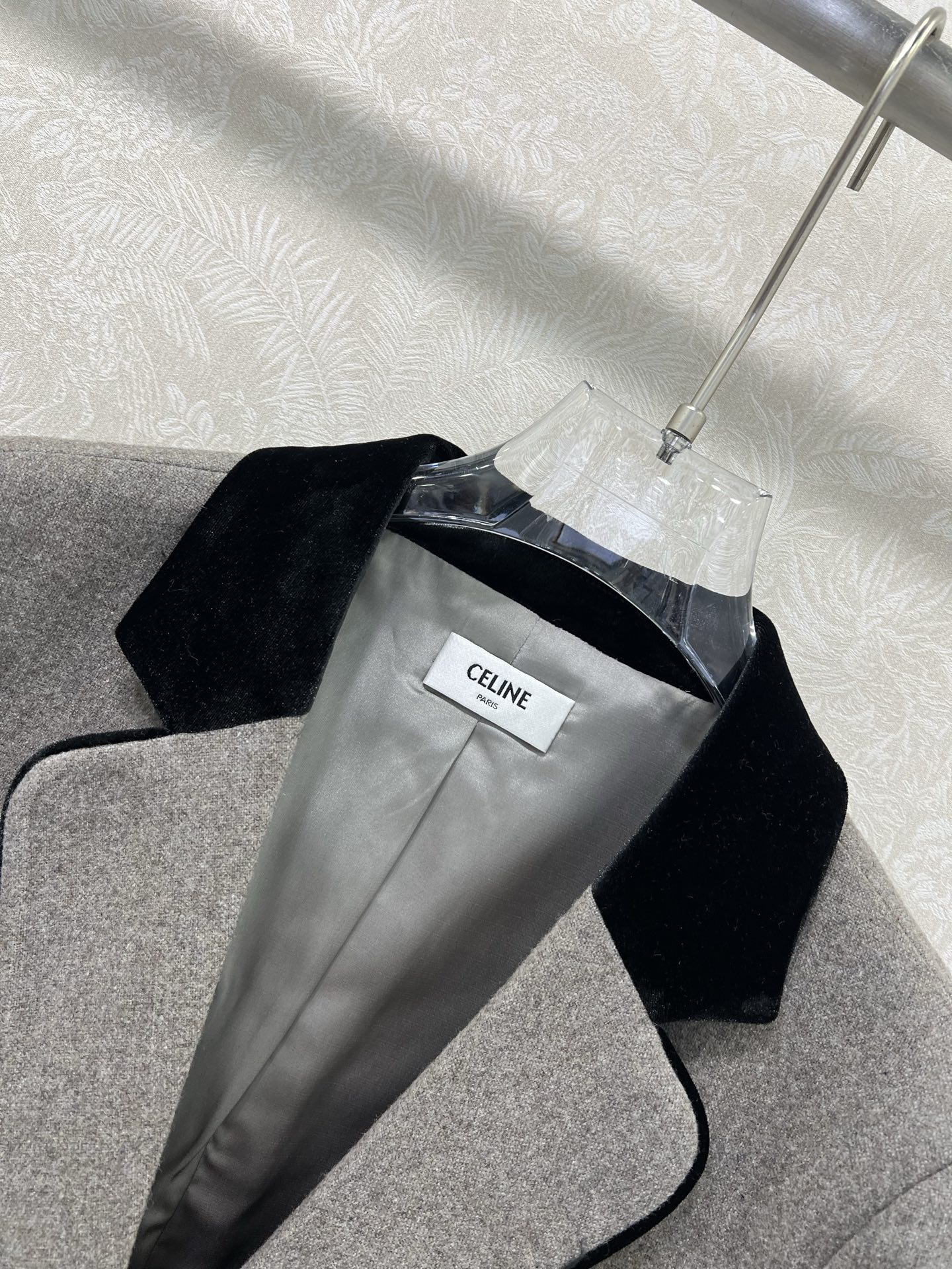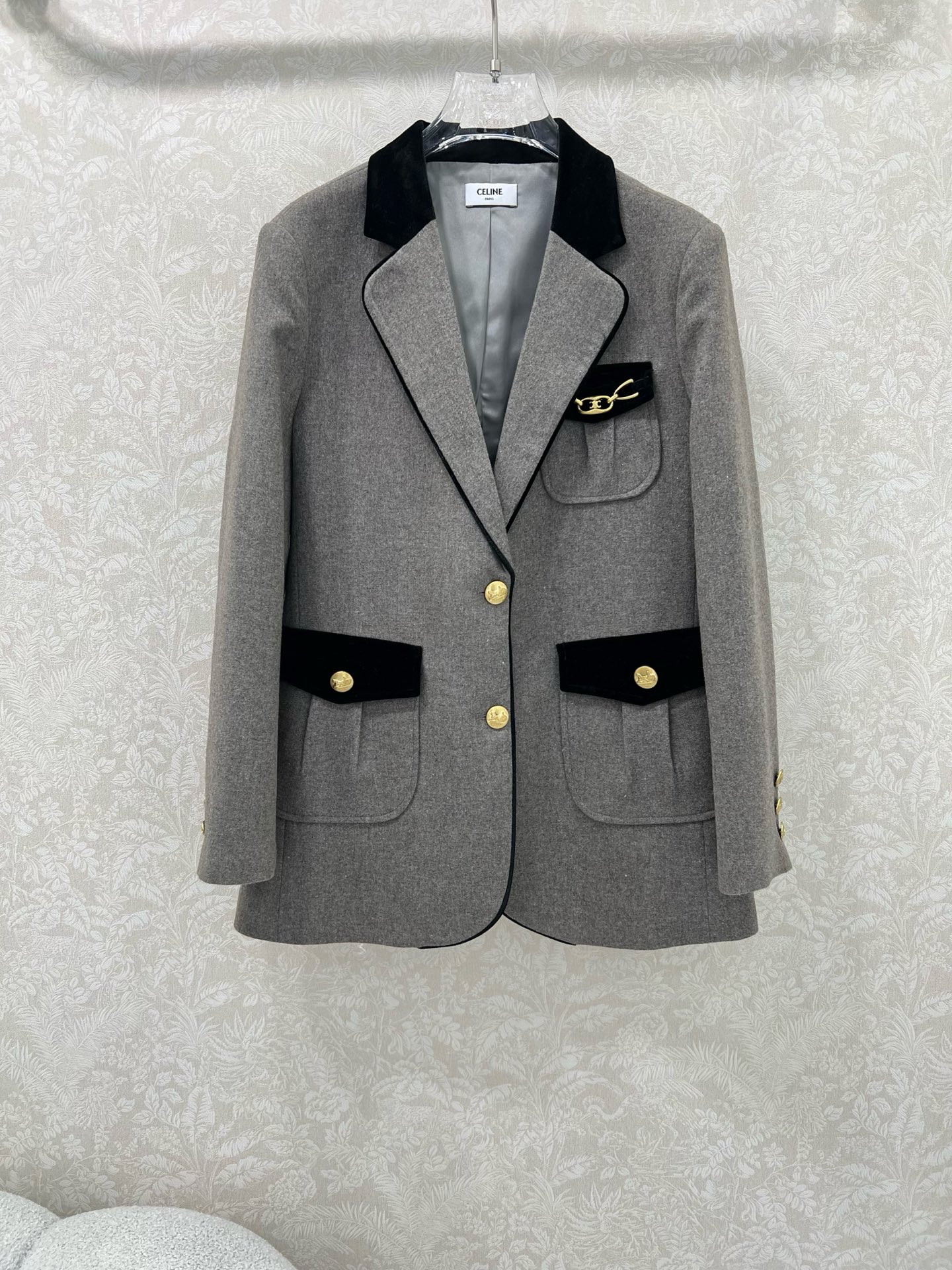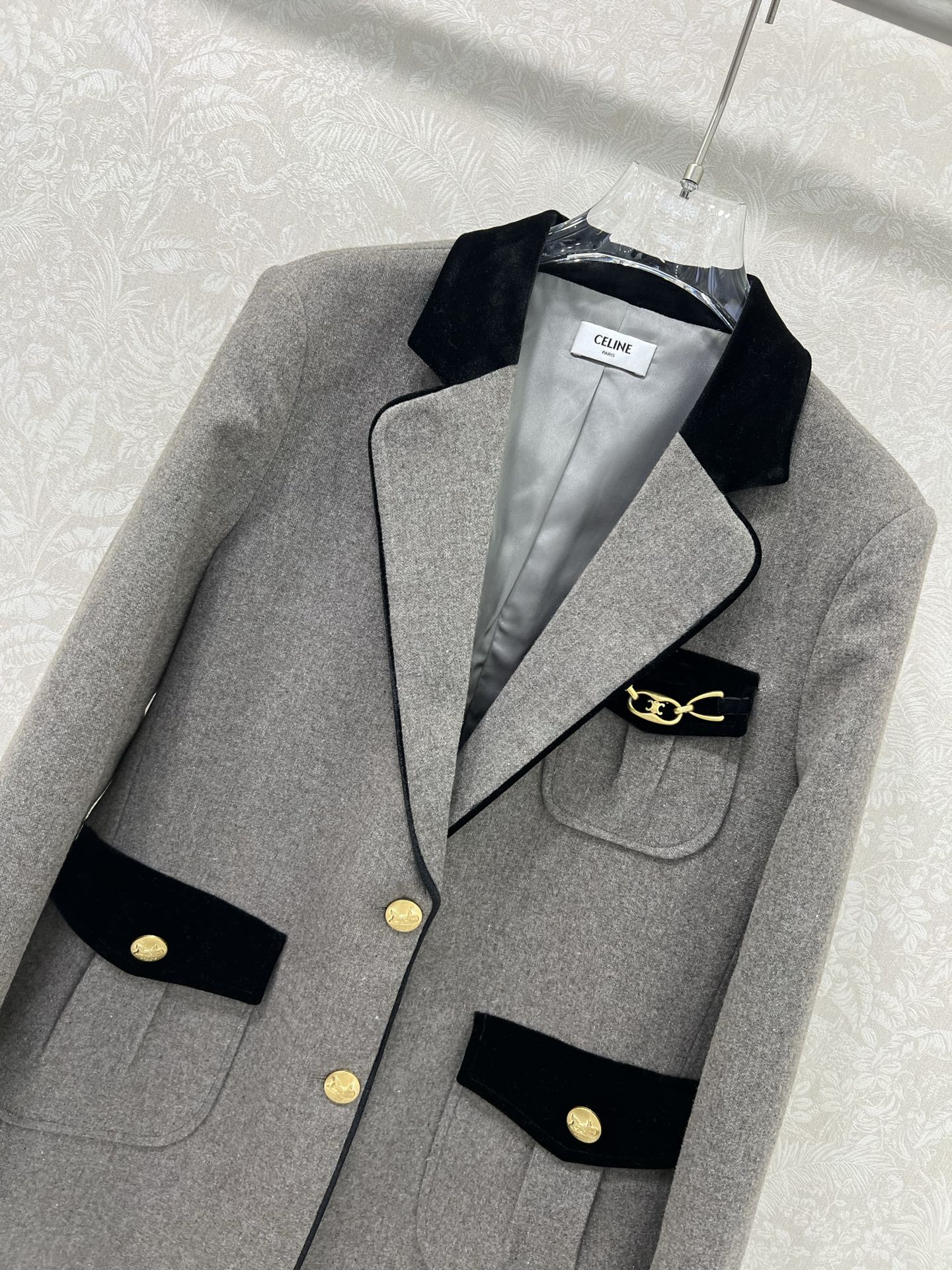 Details: New woolen suit in melange color, velvet collar, snowflake pattern, classic look, high-end customization