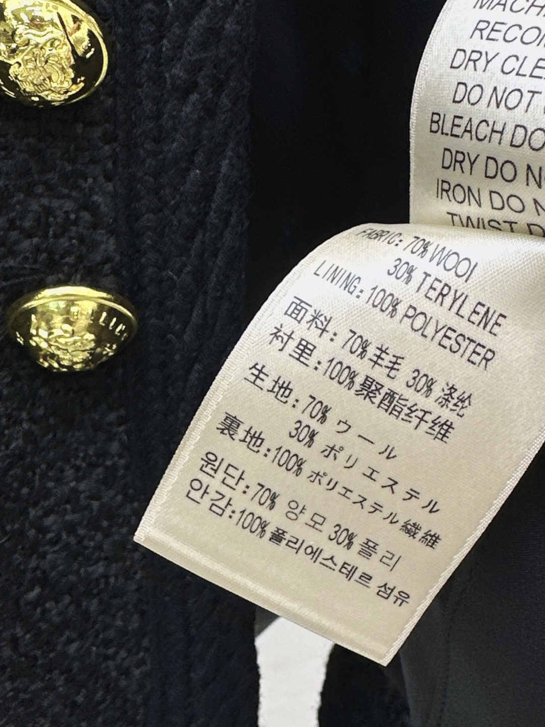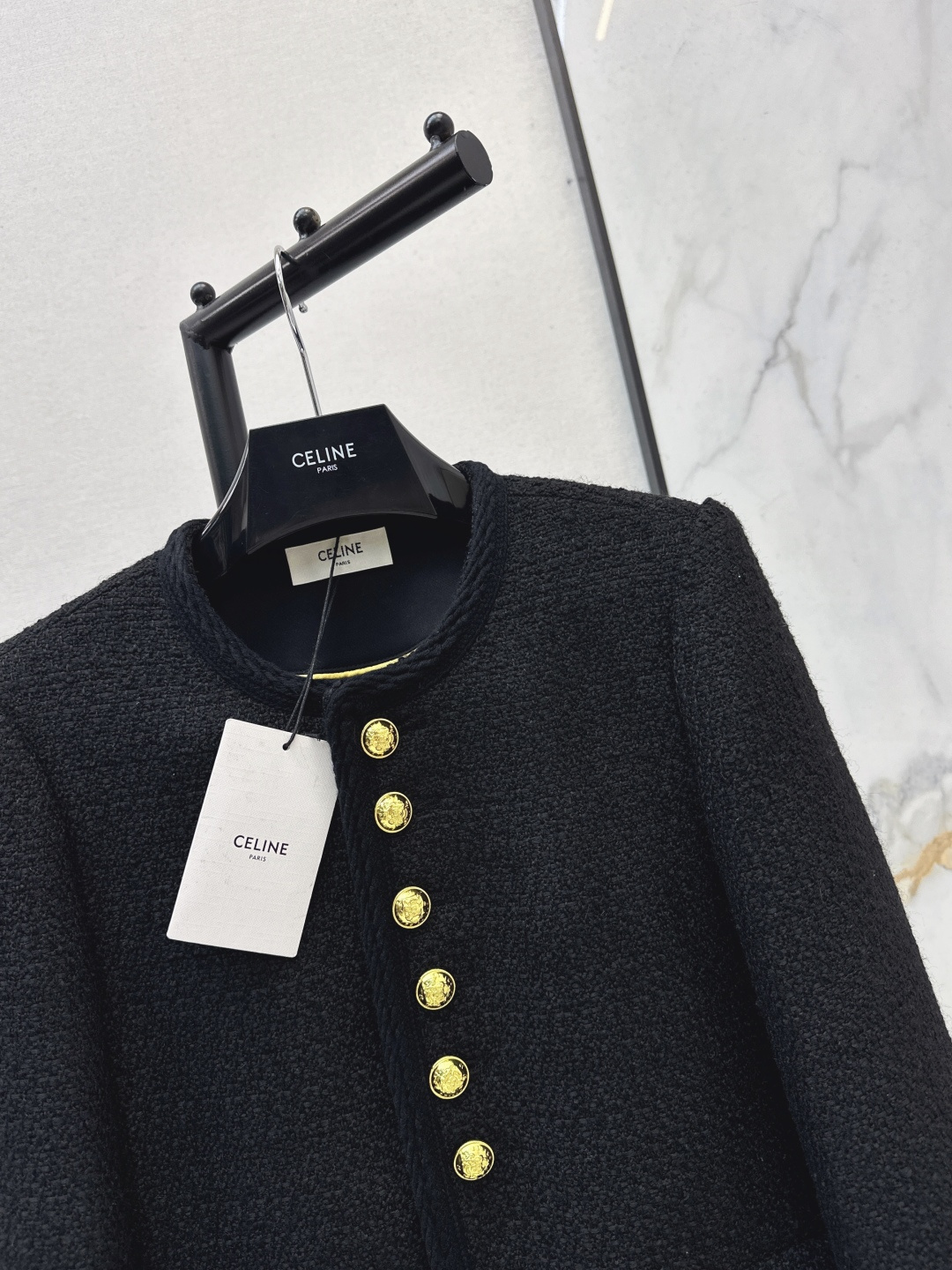 Details: Autumn and winter black and gold series jacket, classic short cut, half-button design, wool fabric.