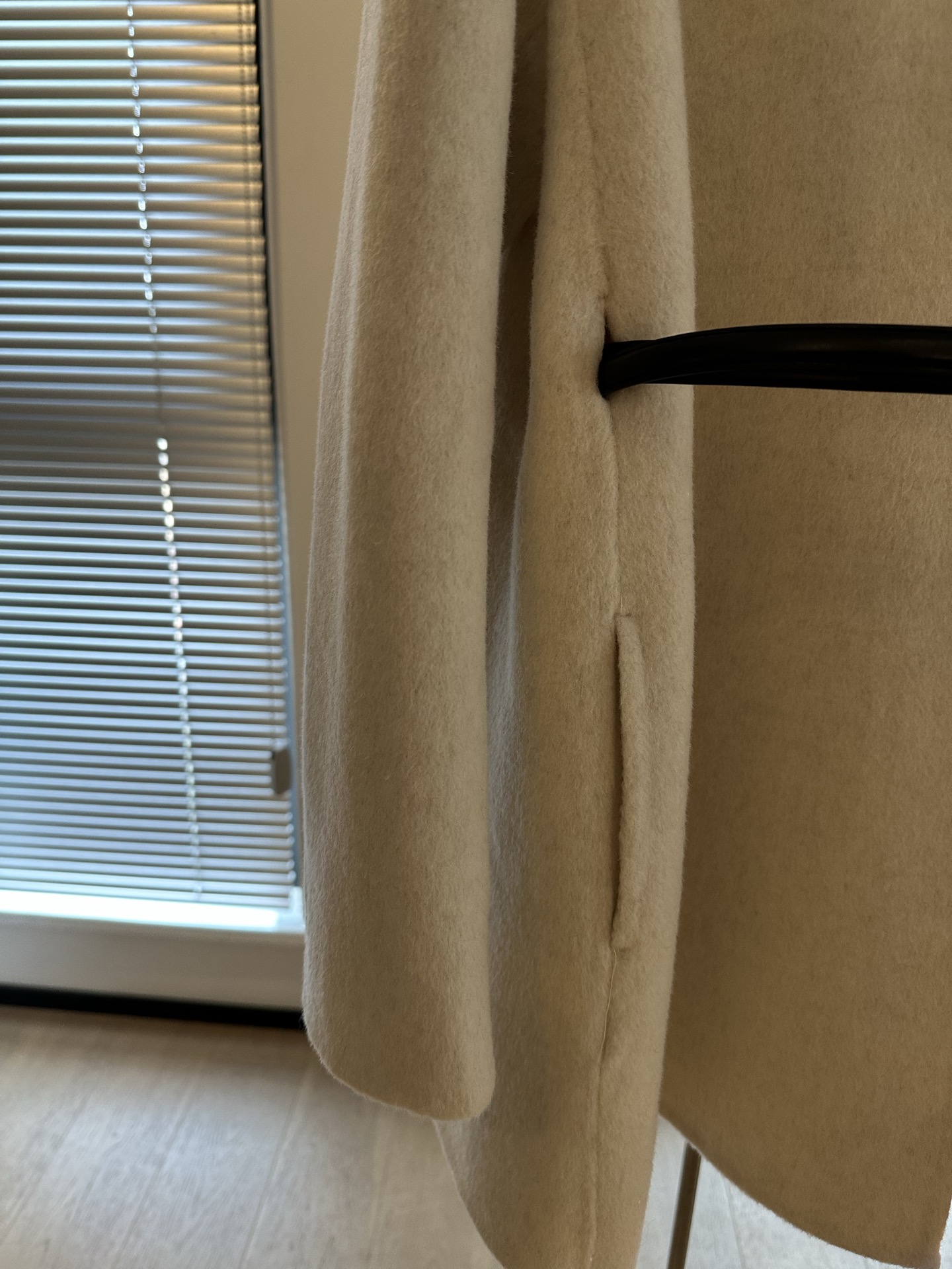 Details: French designer s bespoke wine red coat, with a 10% cashmere blend, providing a soft and stiff texture, suitable for various styling options, in SM sizes.