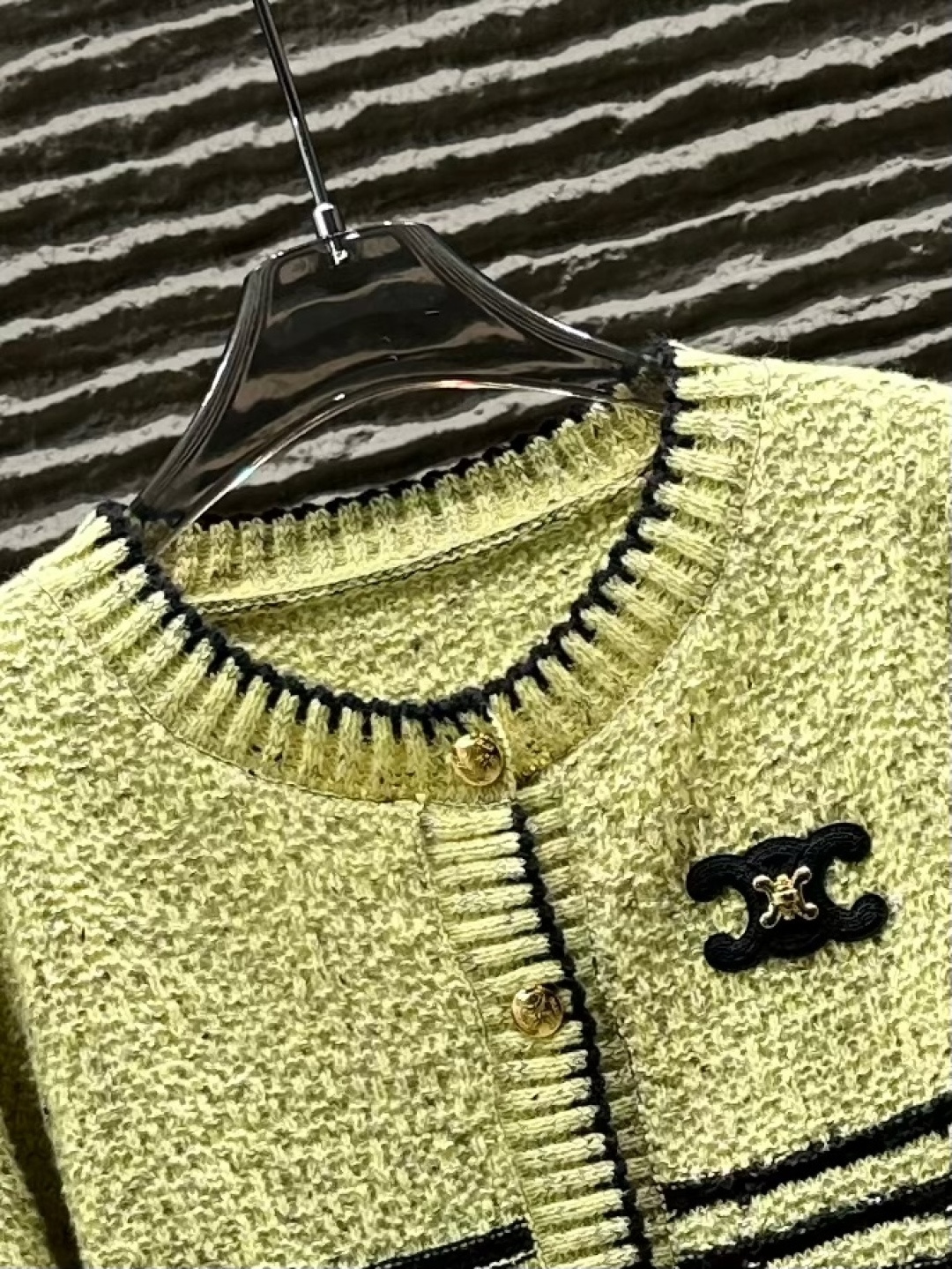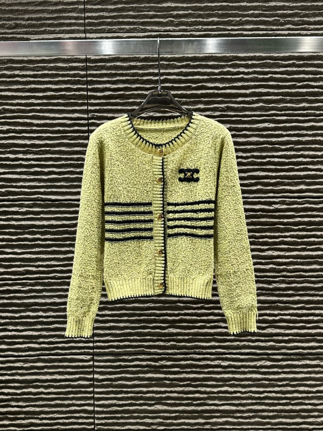 Details: New Cardigan with Arch Stripes. fine craftsmanship