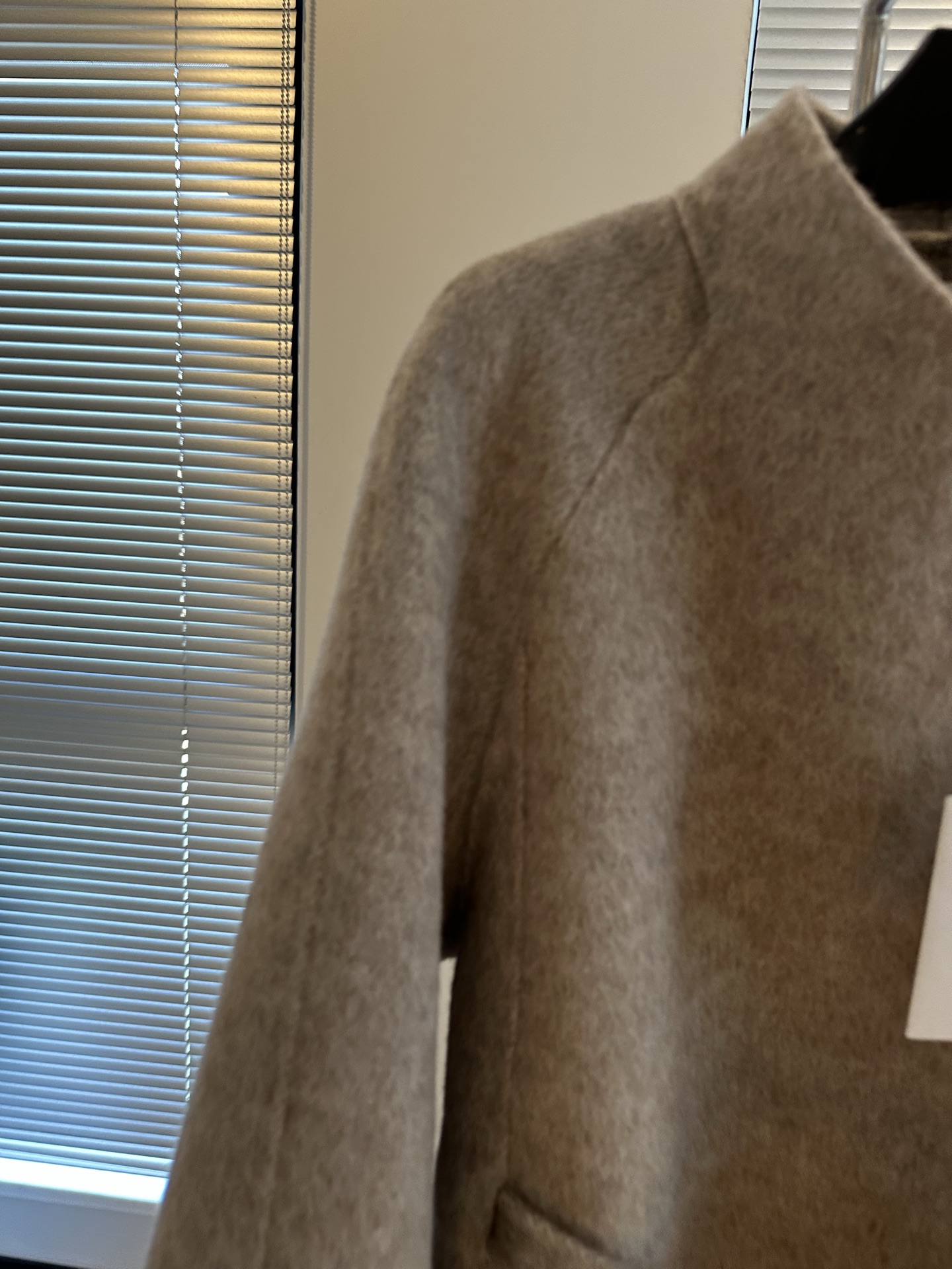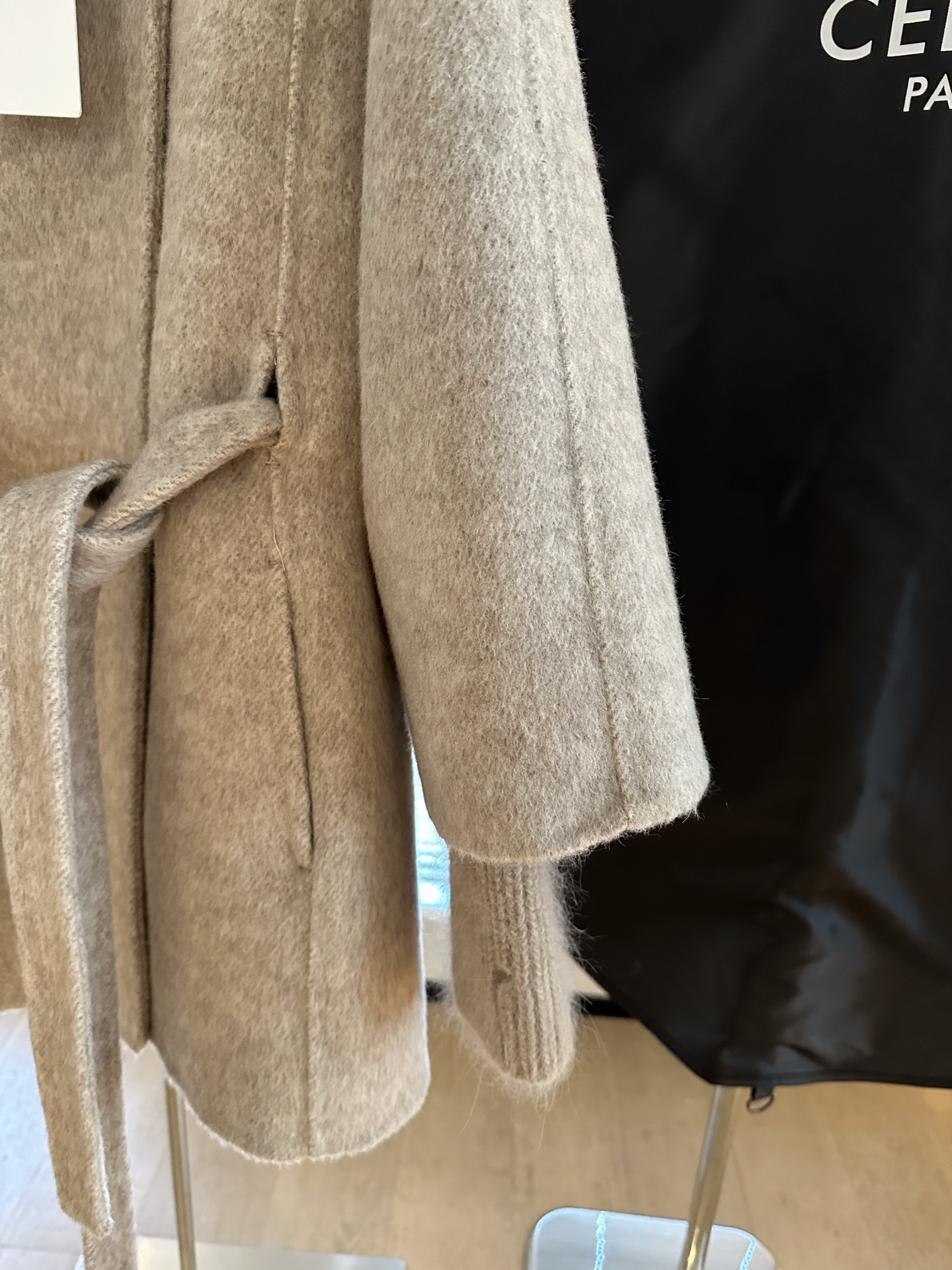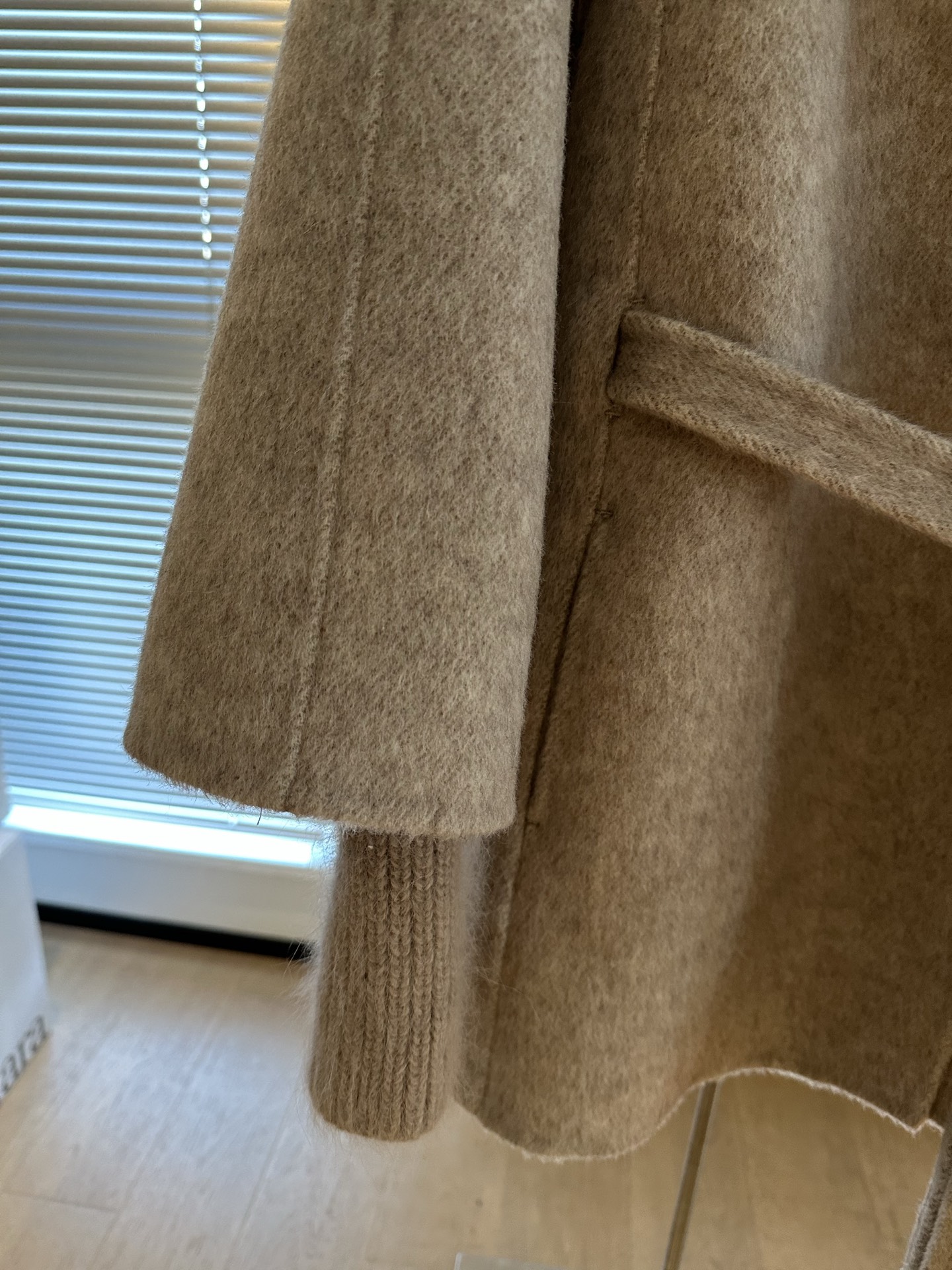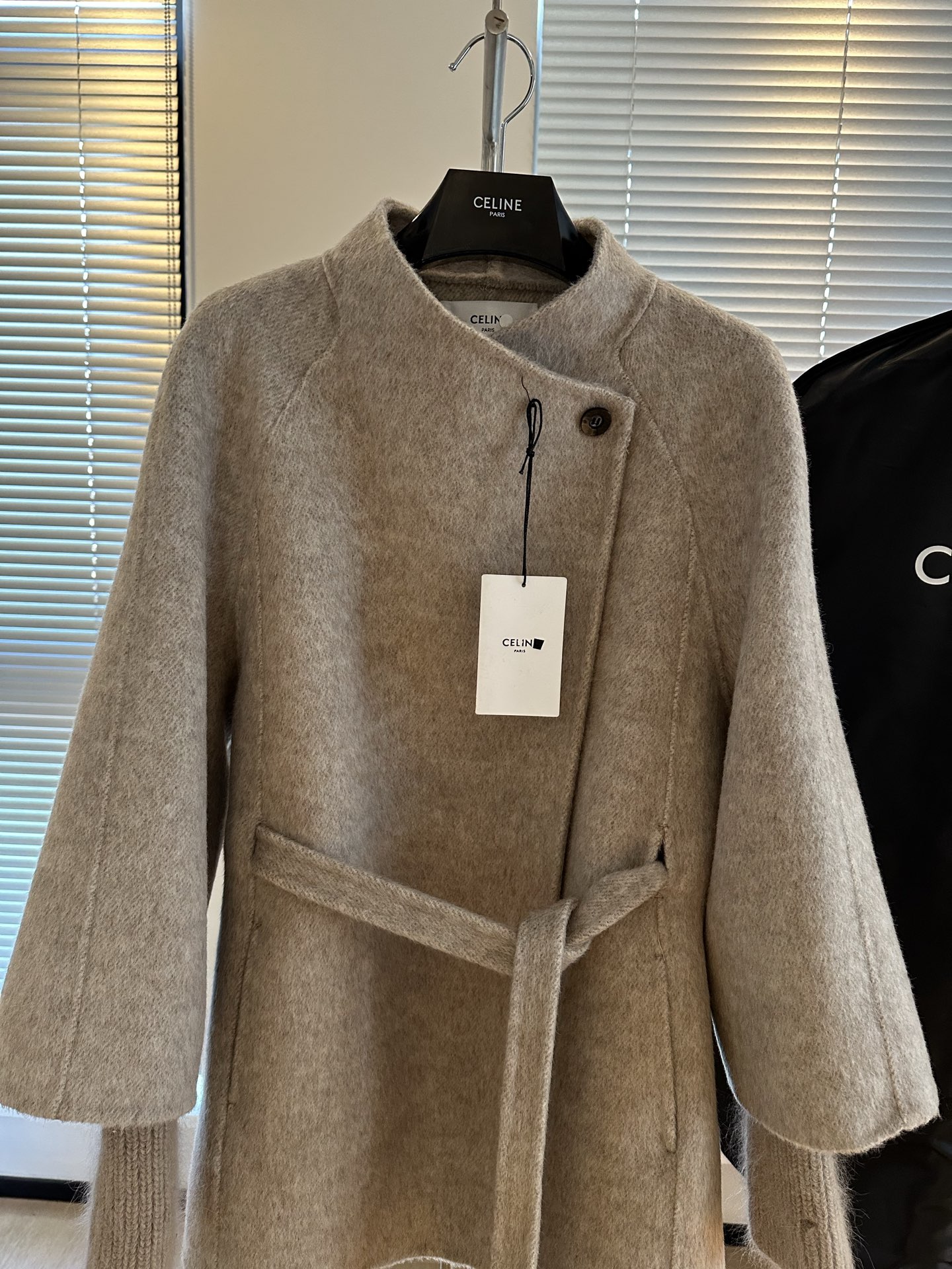 Details: New cashmere coat with A-line cut, composed of 90% wool and 10% cashmere, suitable for fall and winter.