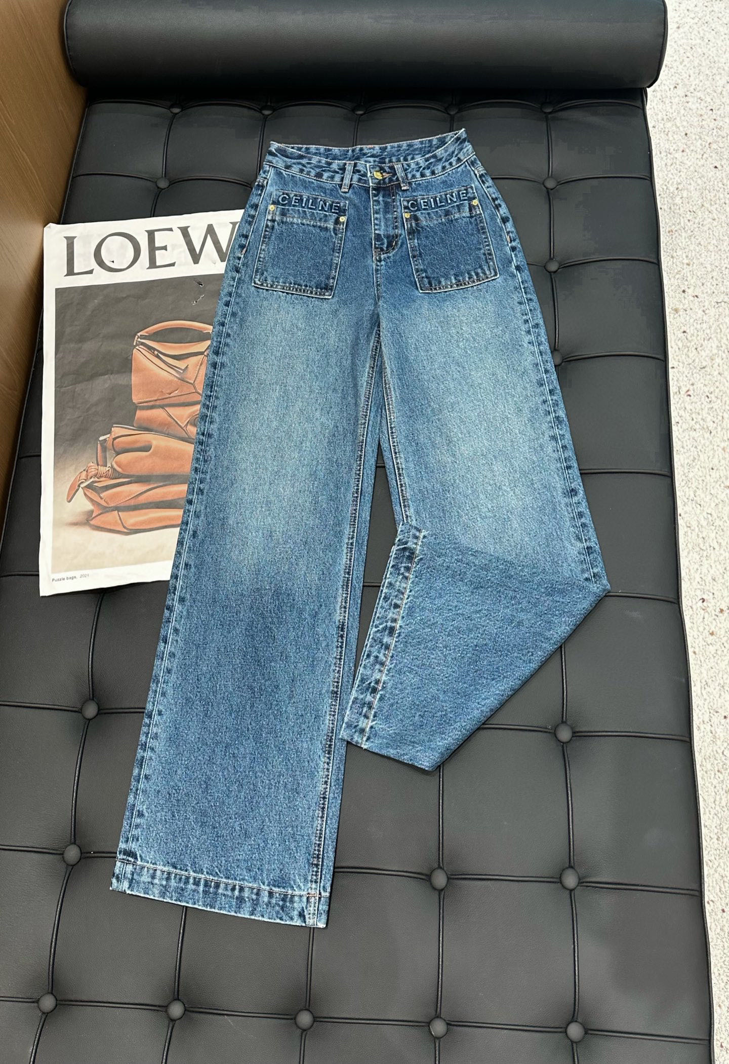 Details: New Double-pocket Embroidered Straight-leg Jeans, High-end Custom, Fine Workmanship