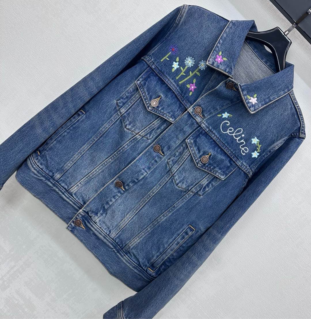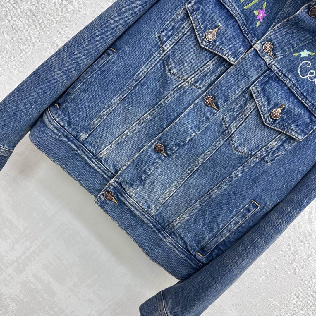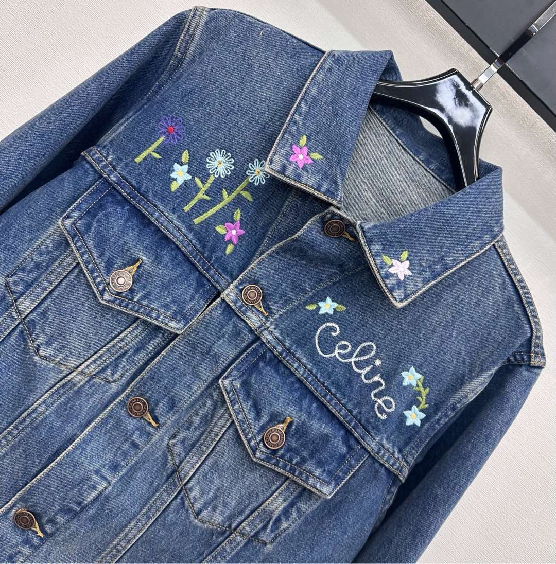 Details: Denim Jacket with embroidered flowers, combining retro charm with stylish flair, features high-end customization and fine craftsmanship for original quality.