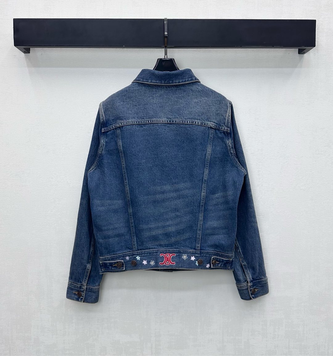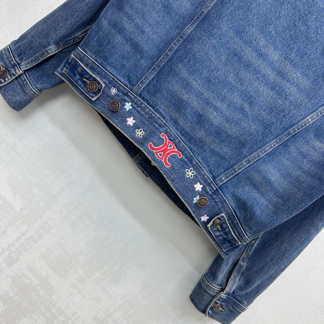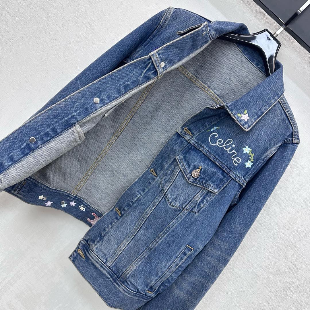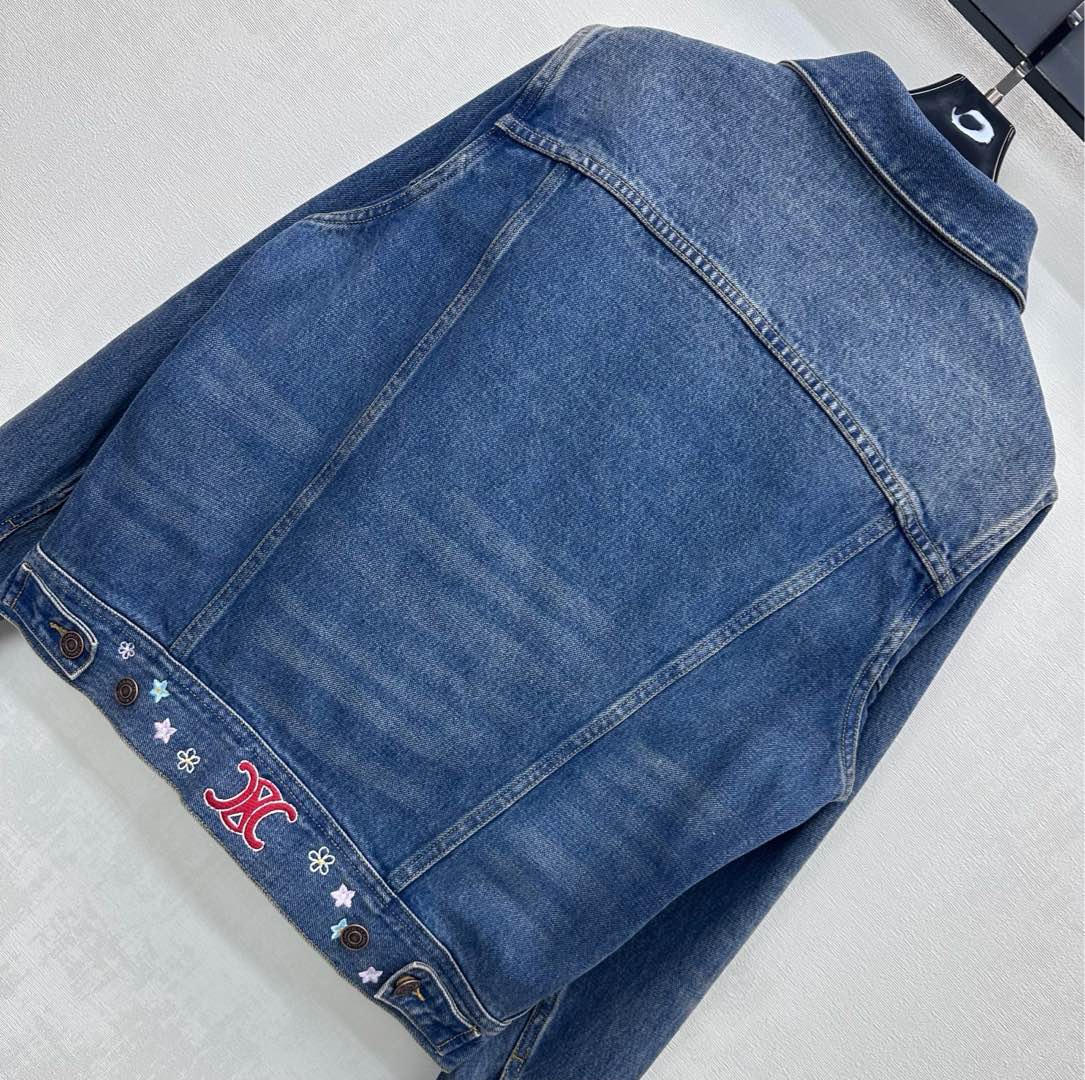 Details: Denim Jacket with embroidered flowers, combining retro charm with stylish flair, features high-end customization and fine craftsmanship for original quality.