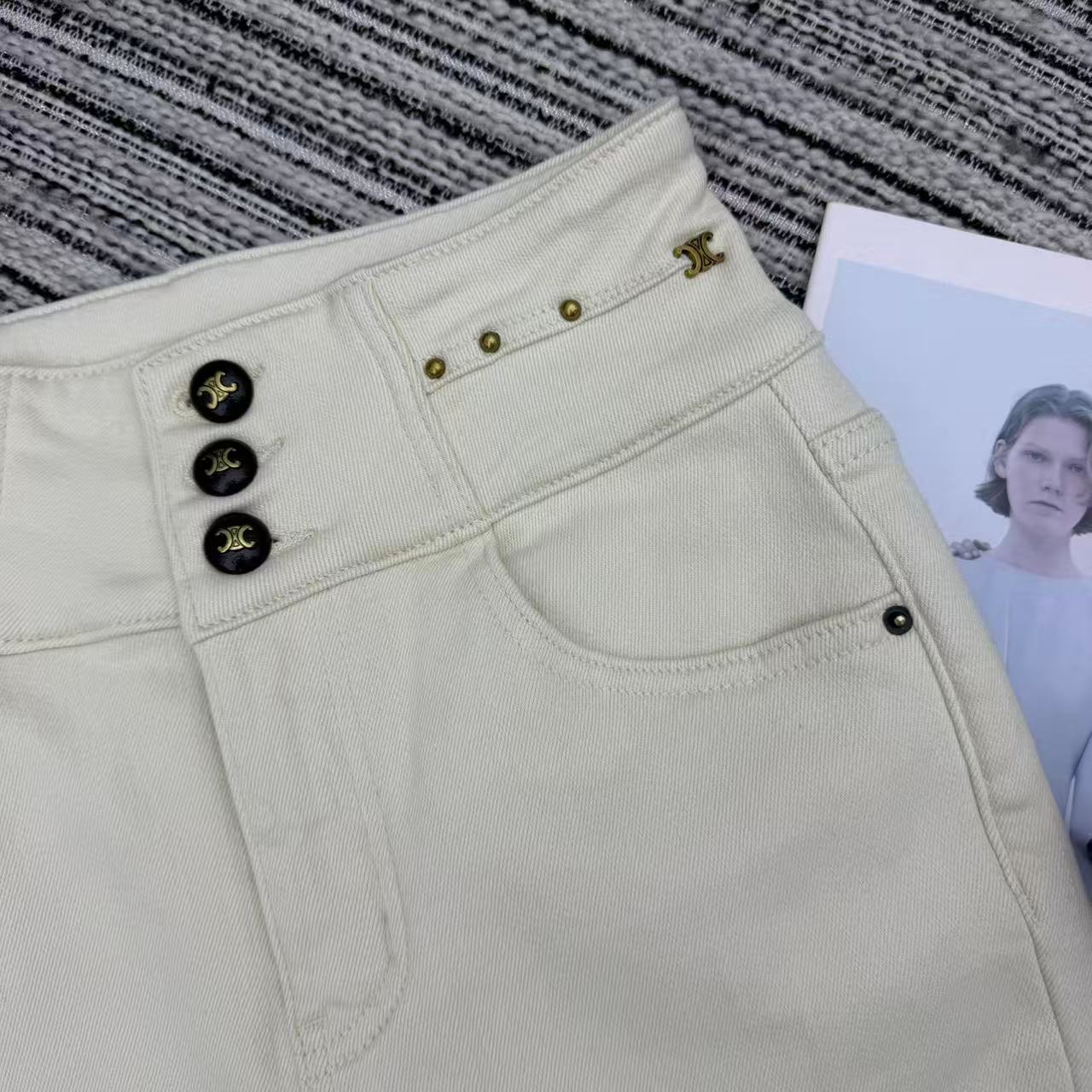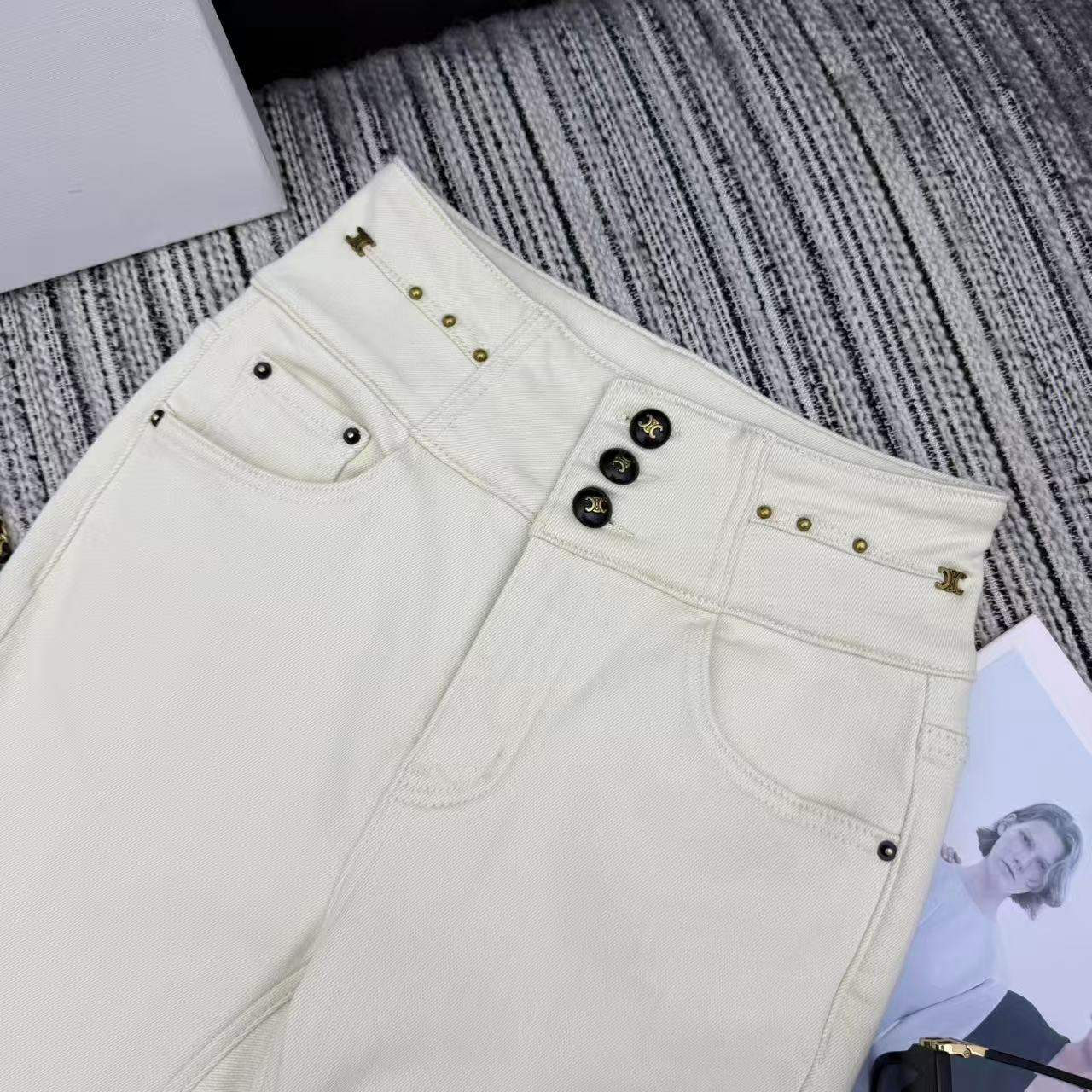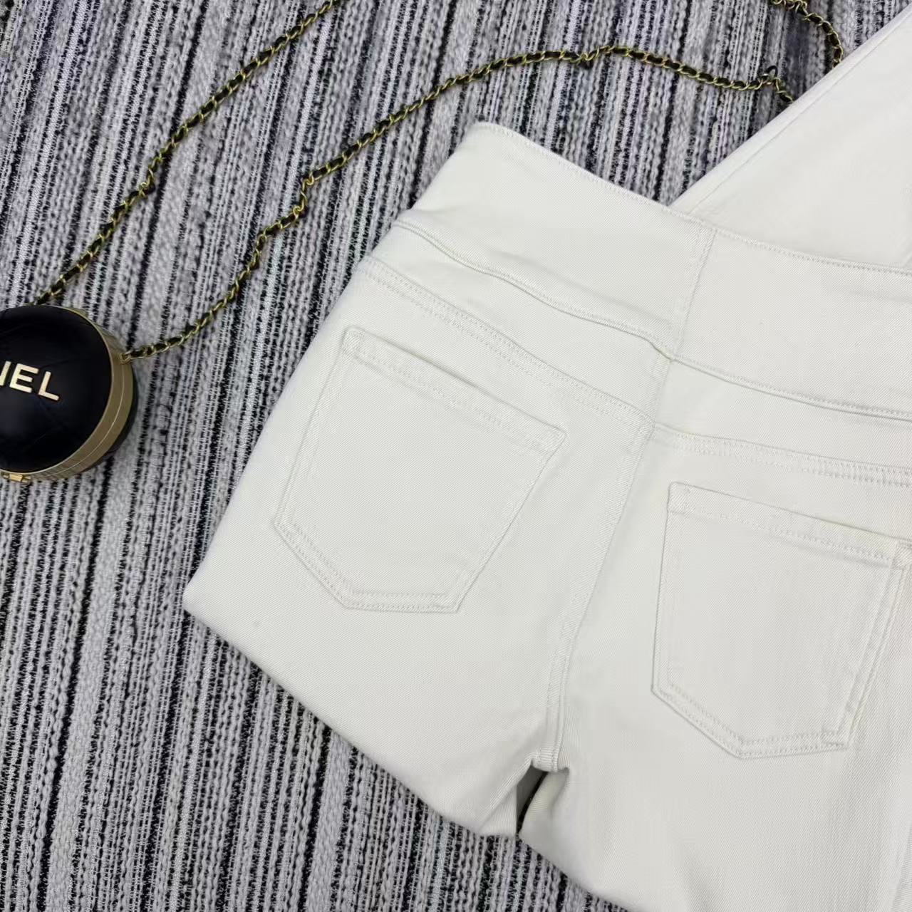 Details: New high - waist skinny jeans with arch metal, fleece - lined, available in S, M, L sizes. High - end customization, fine workmanship