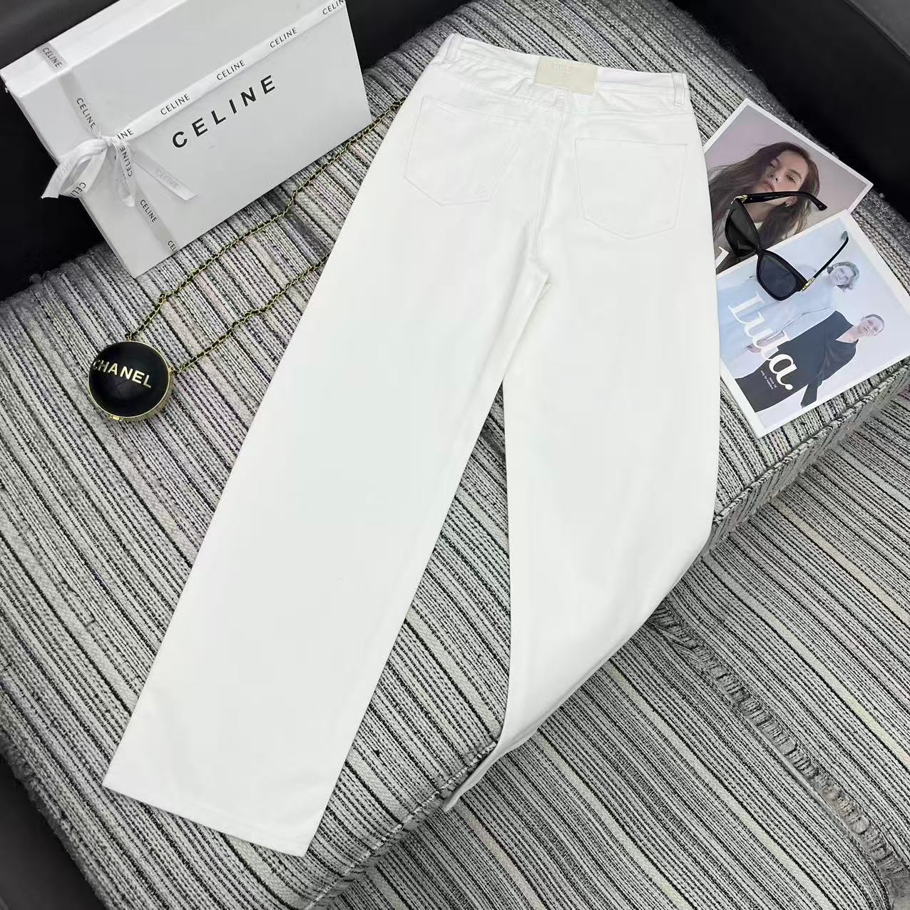 here:home > WOMENS > Celine > Denim Celine (W) > Celine Denim Straight-Leg Pants with Letter Leather Patch