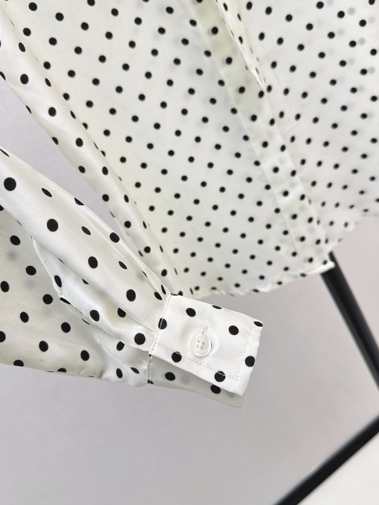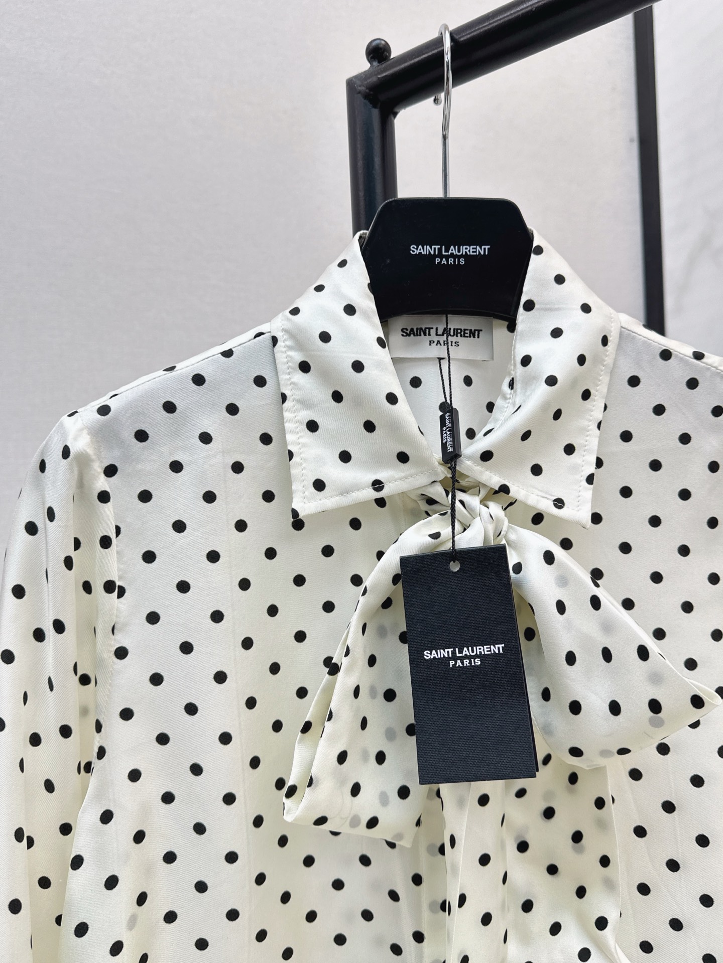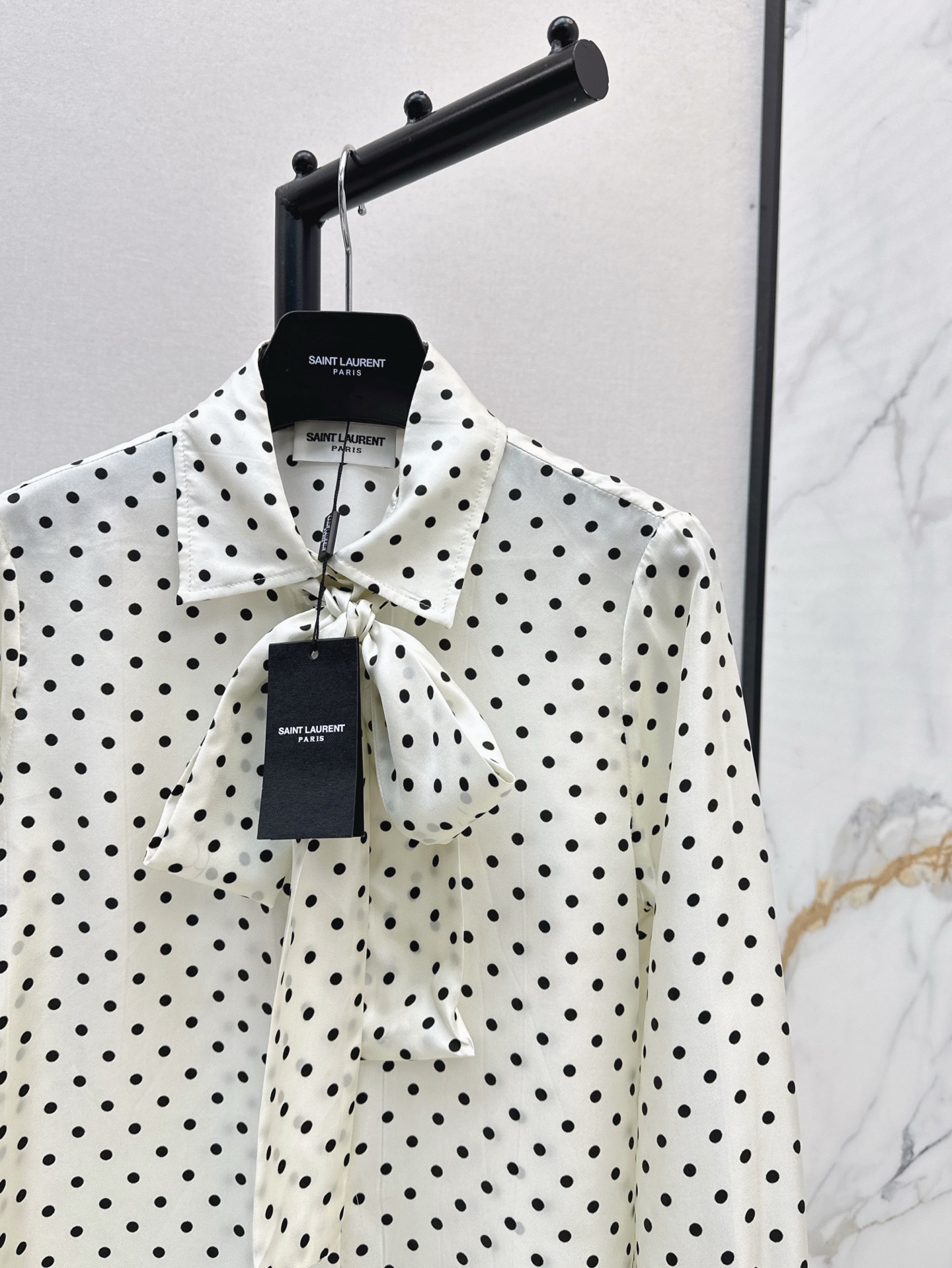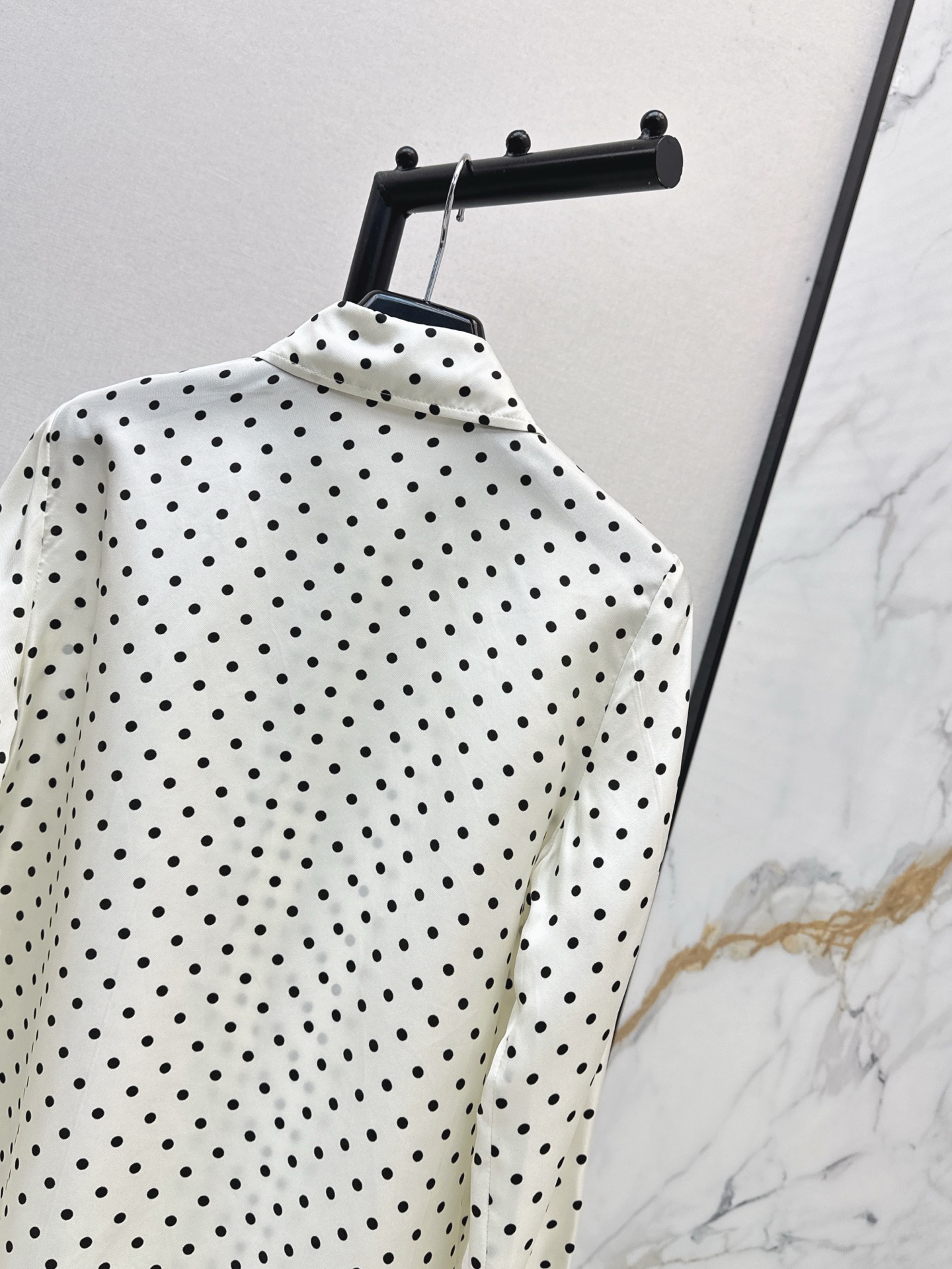 Details: Retro polka - dot silk shirt with ribbon, suitable for single or inner wear, high - end customization