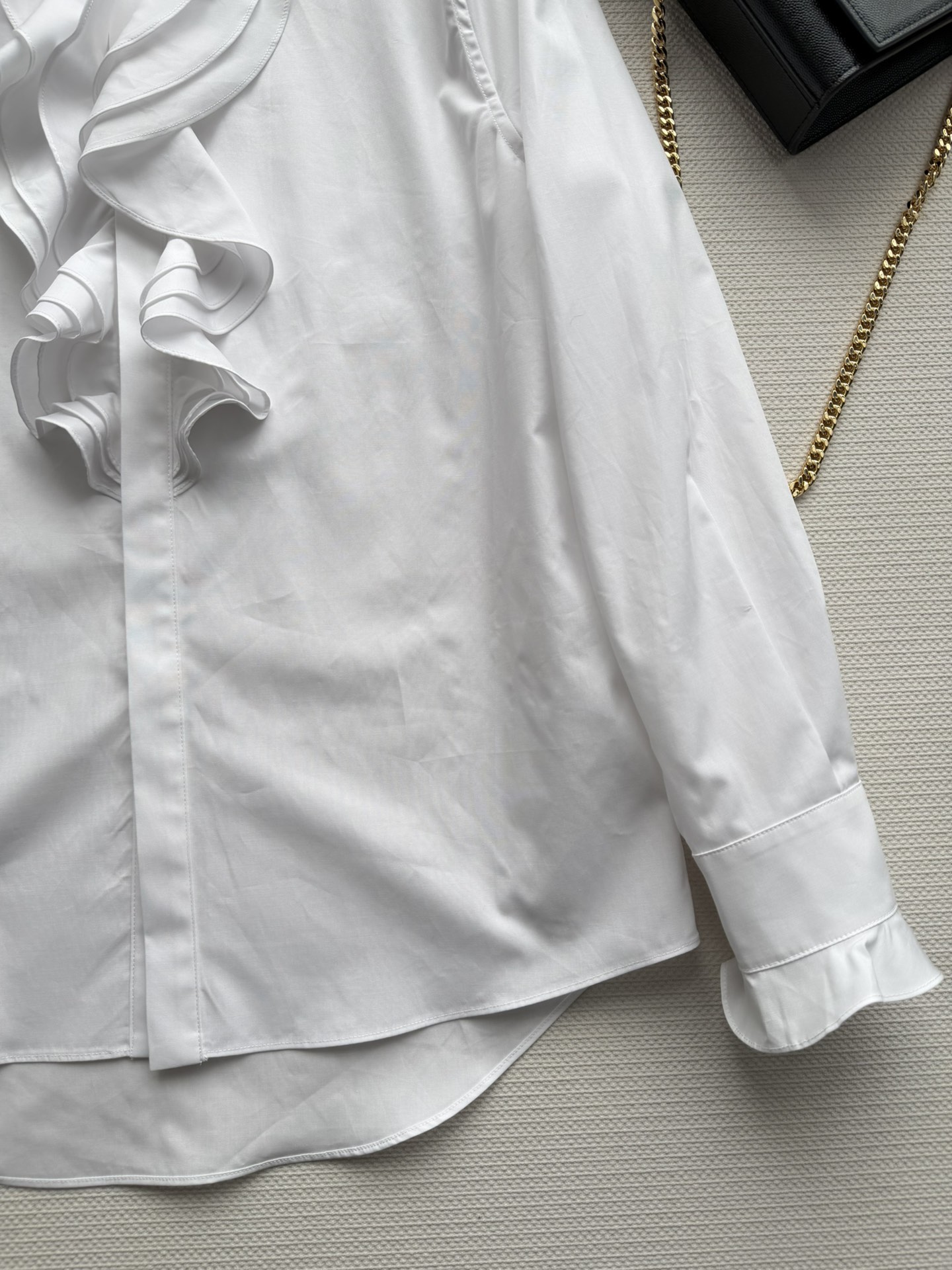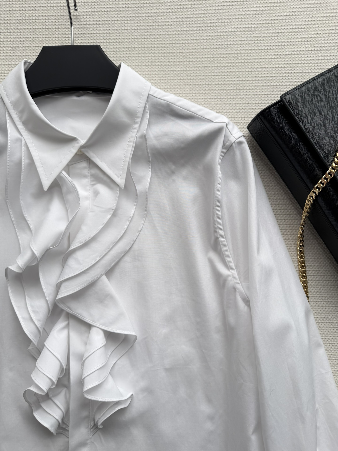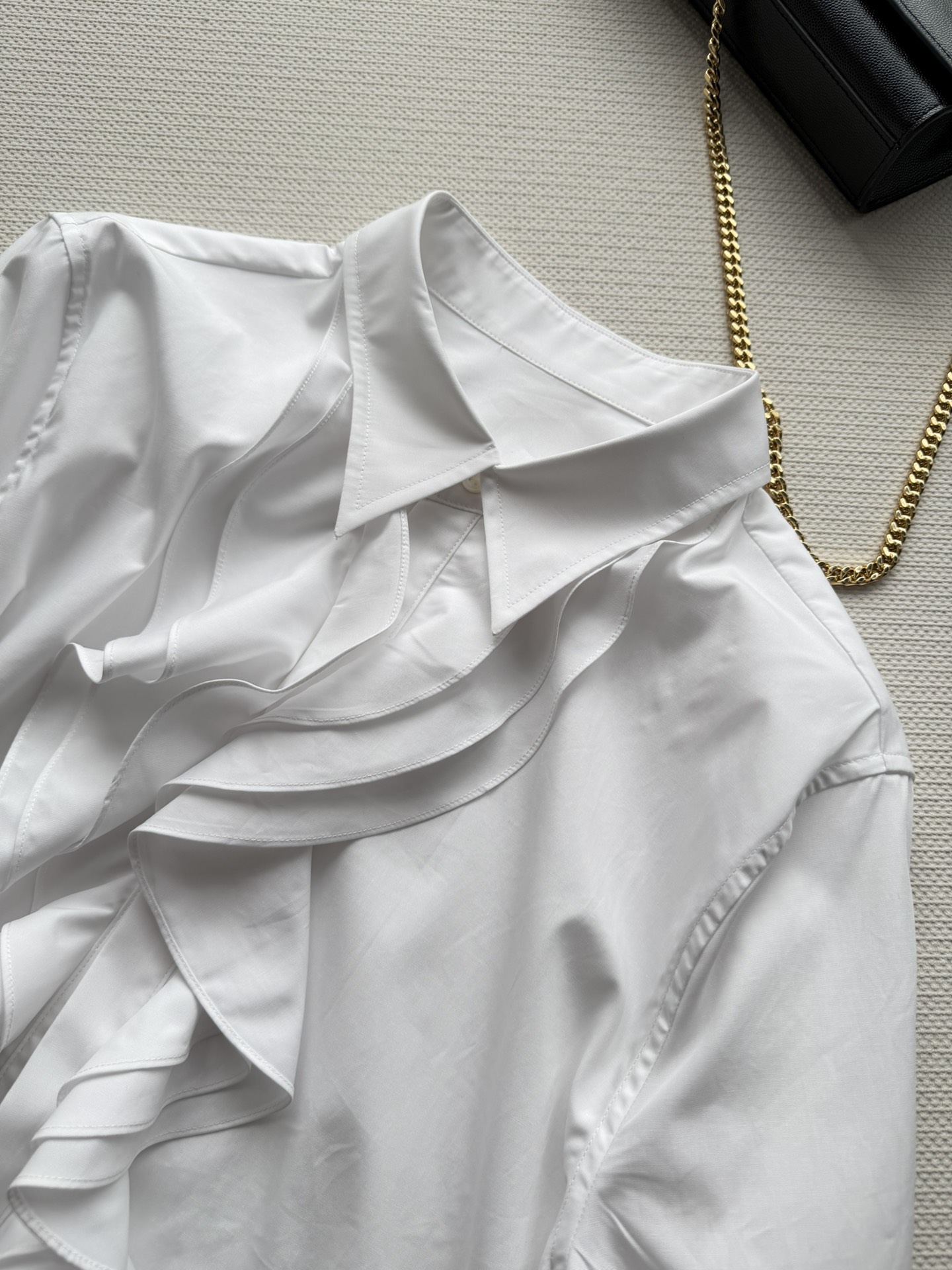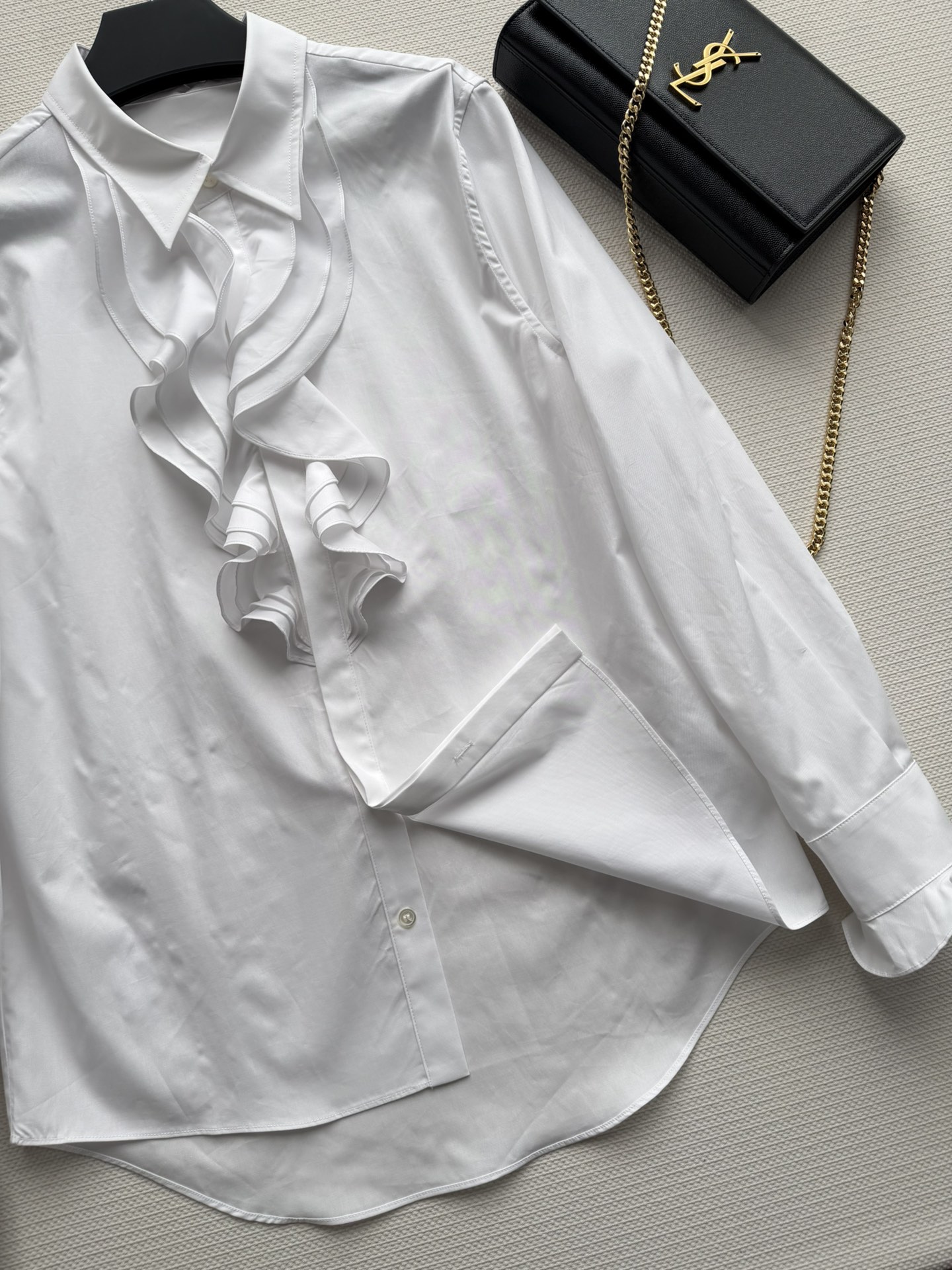 Details: New long - sleeve shirt with ruffled collar, vintage, versatile for different styles