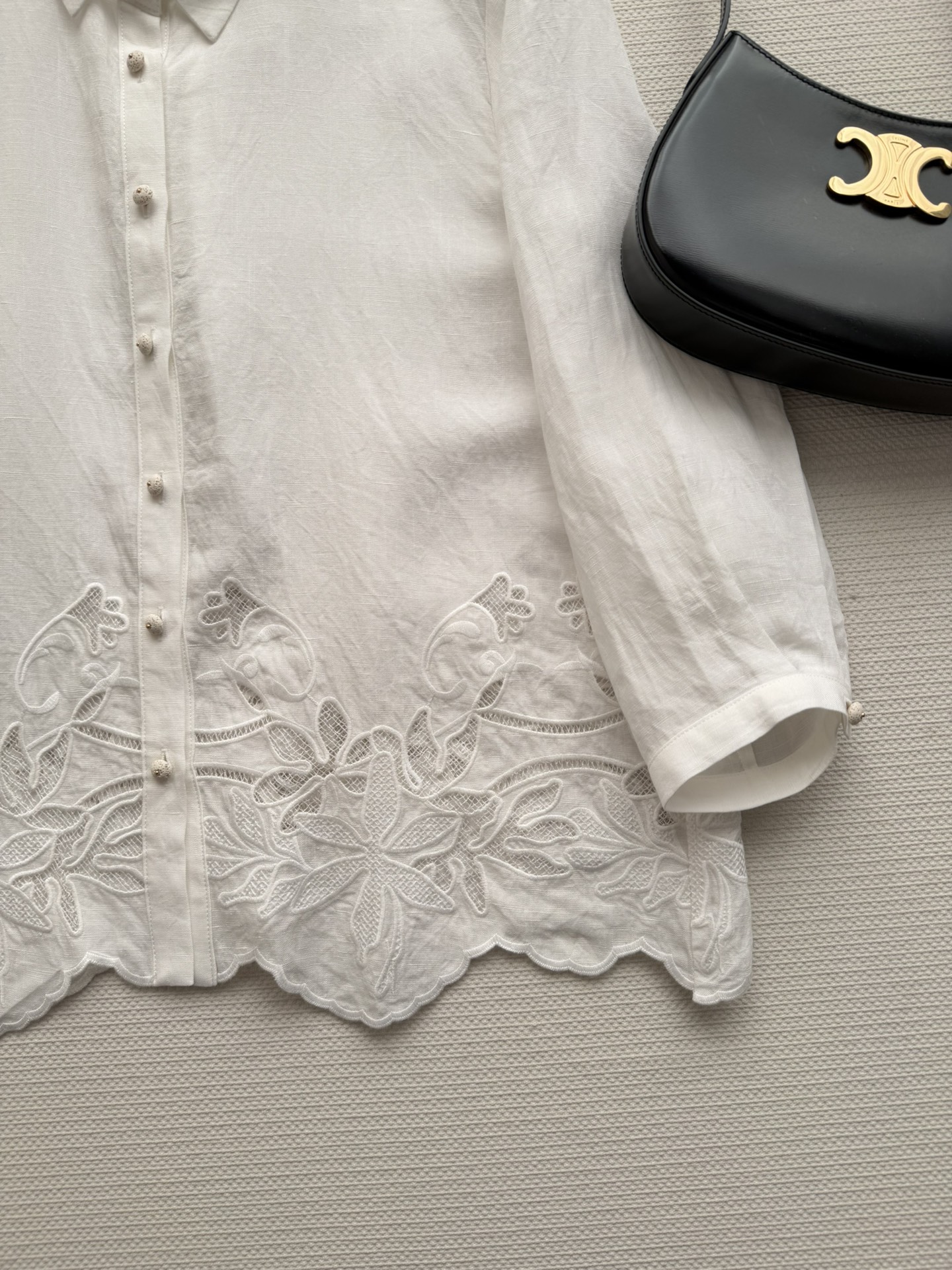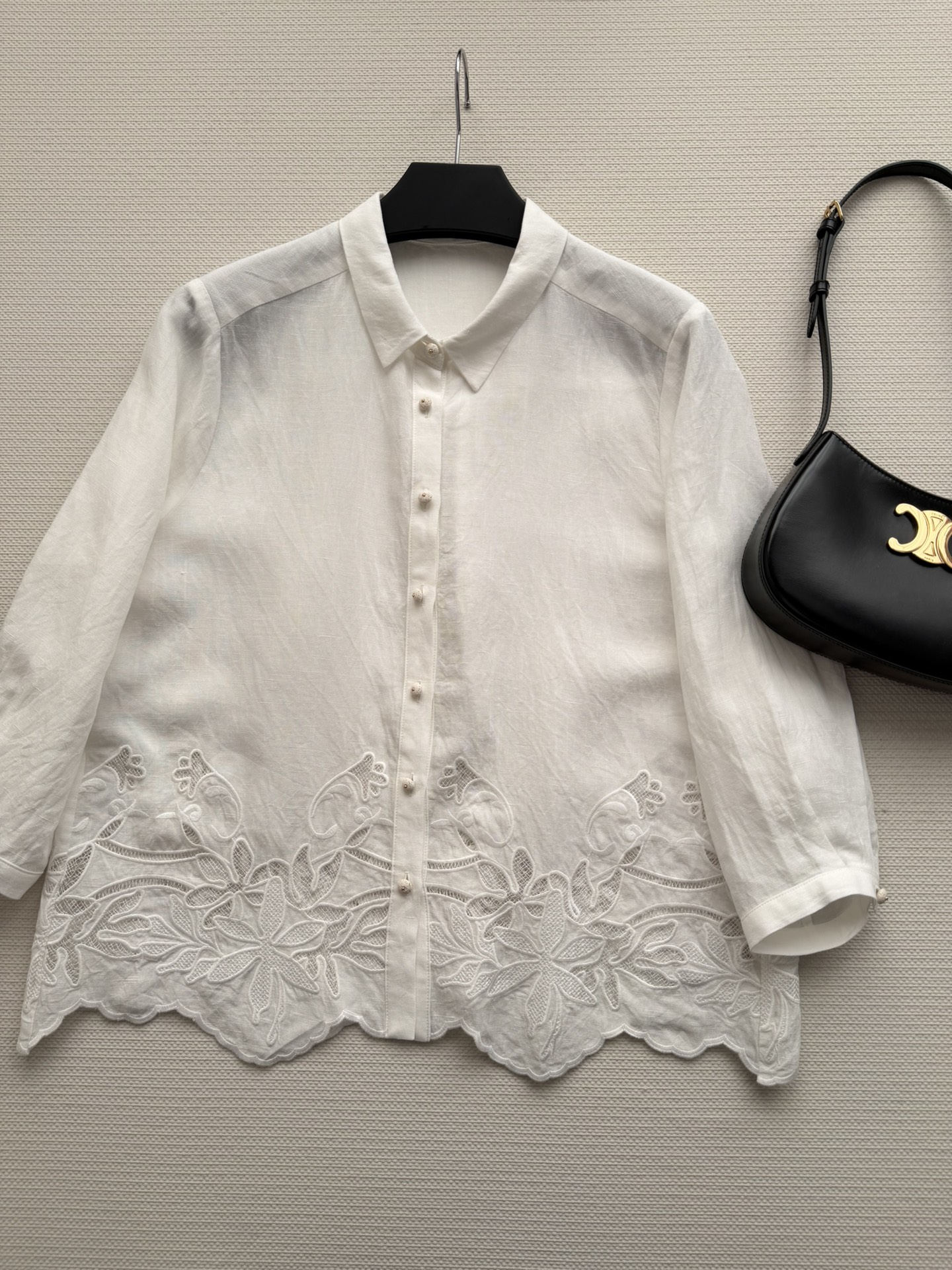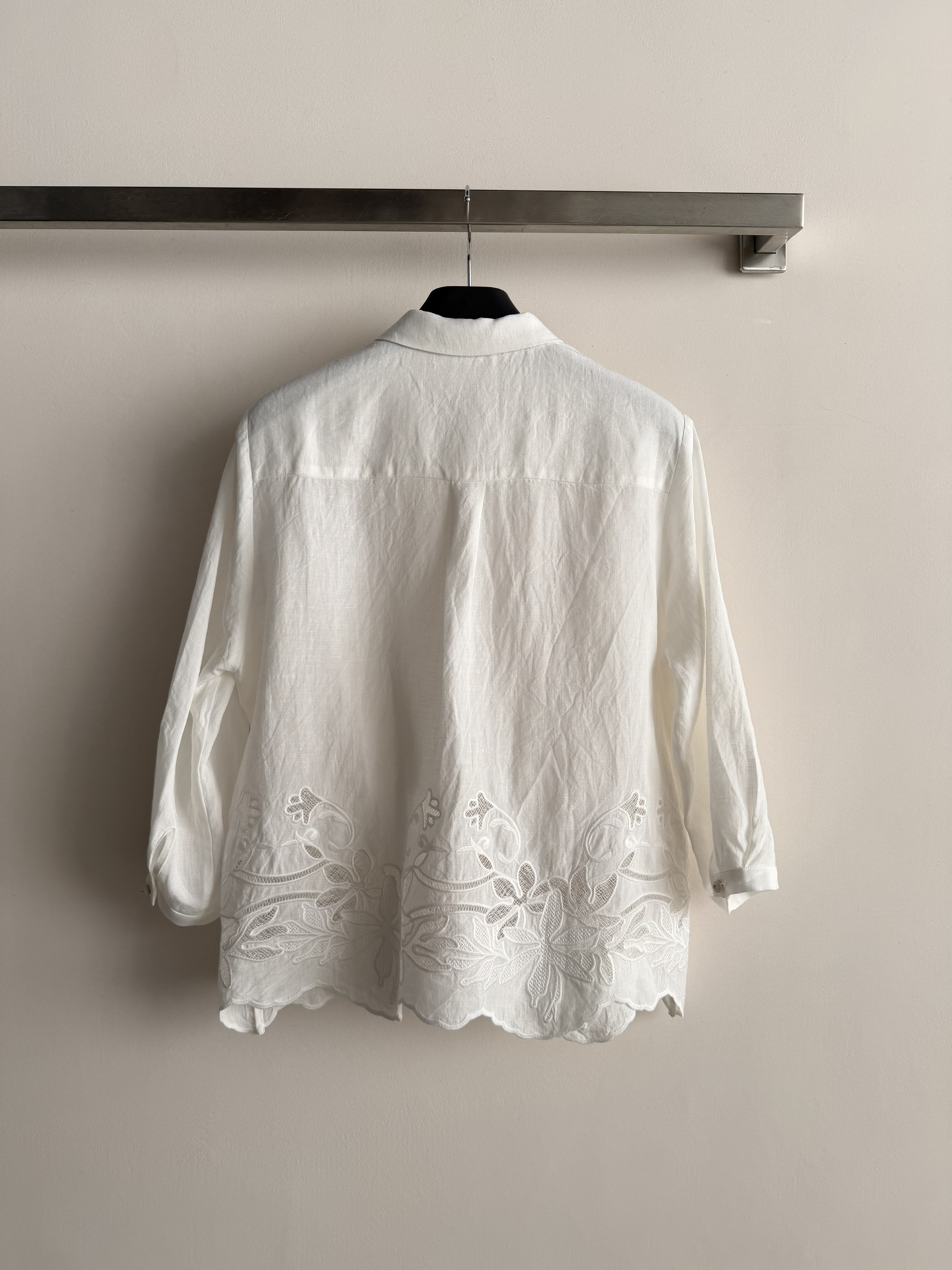 Details: New white embroidered linen shirt, breathable, suitable for spring and summer, can be paired with high-waisted pants or skirts.