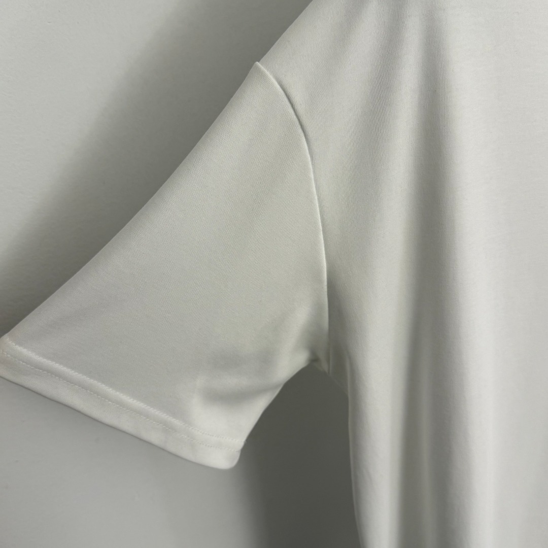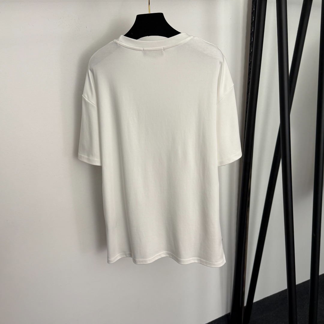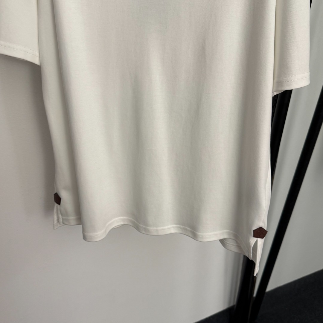 Details: New casual short-sleeved T-shirt with side logo, available in white, dark brown, and black, in sizes S, M, and L.