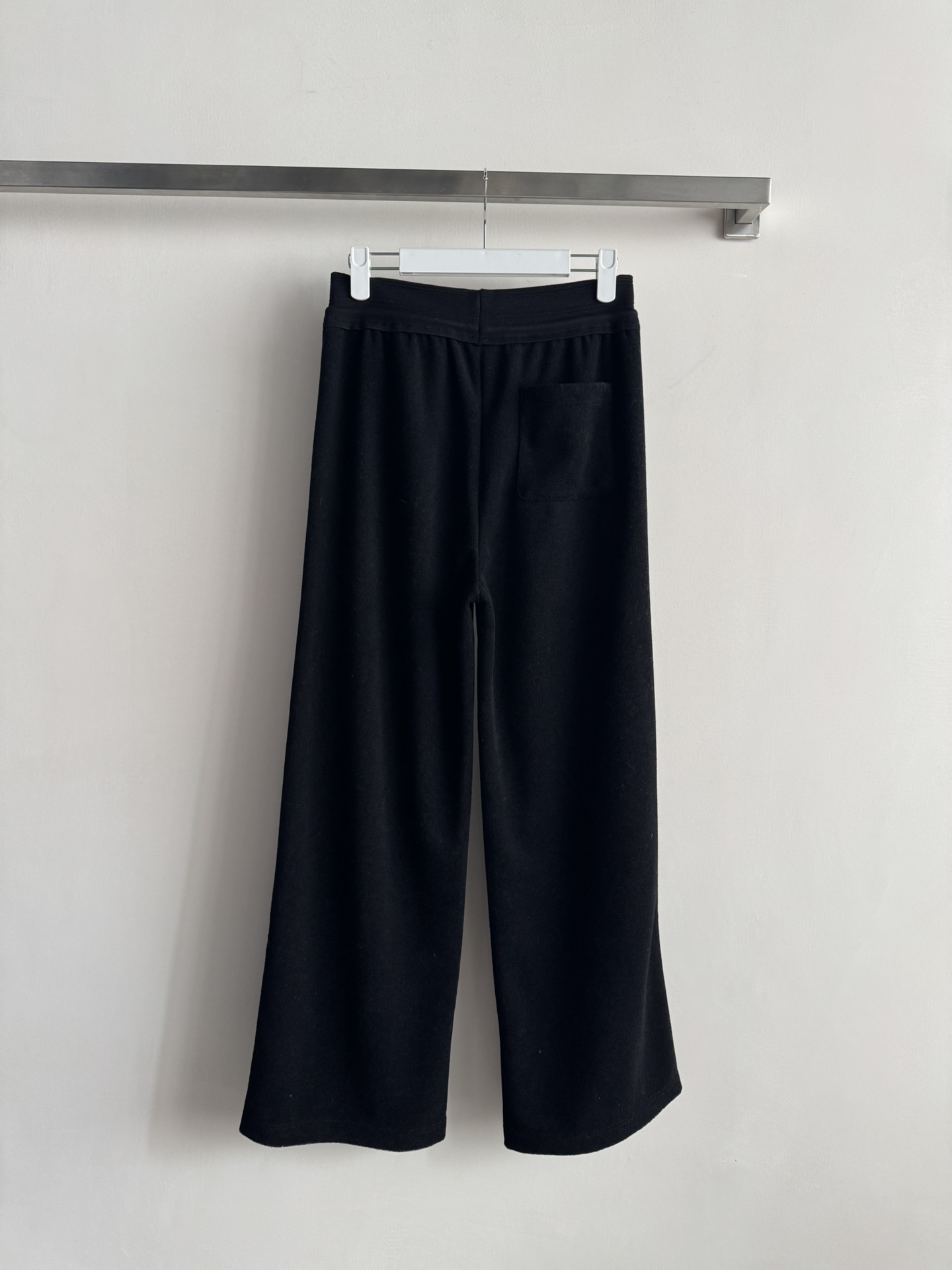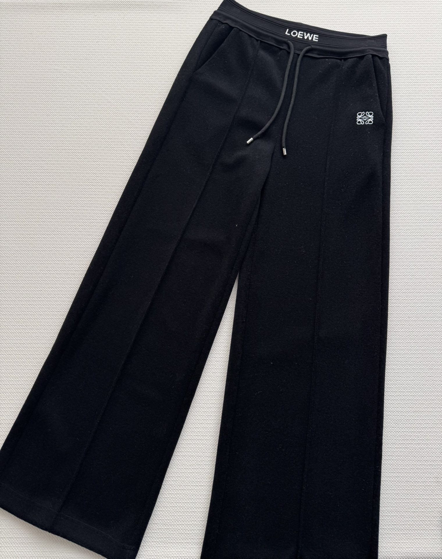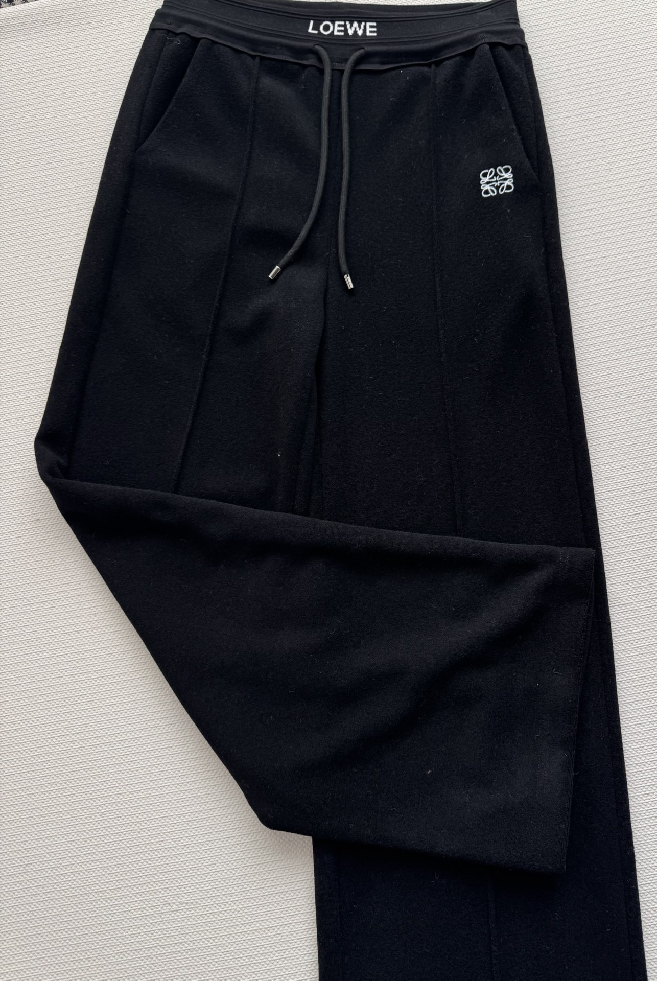 Details: Autumn-Winter Casual Pants, Wool Blend, Soft, High Waist, Adjustable Drawstring, Embroidered Logo, Wide-Leg, Two Colors, High-end Customization, Exquisite Craftsmanship