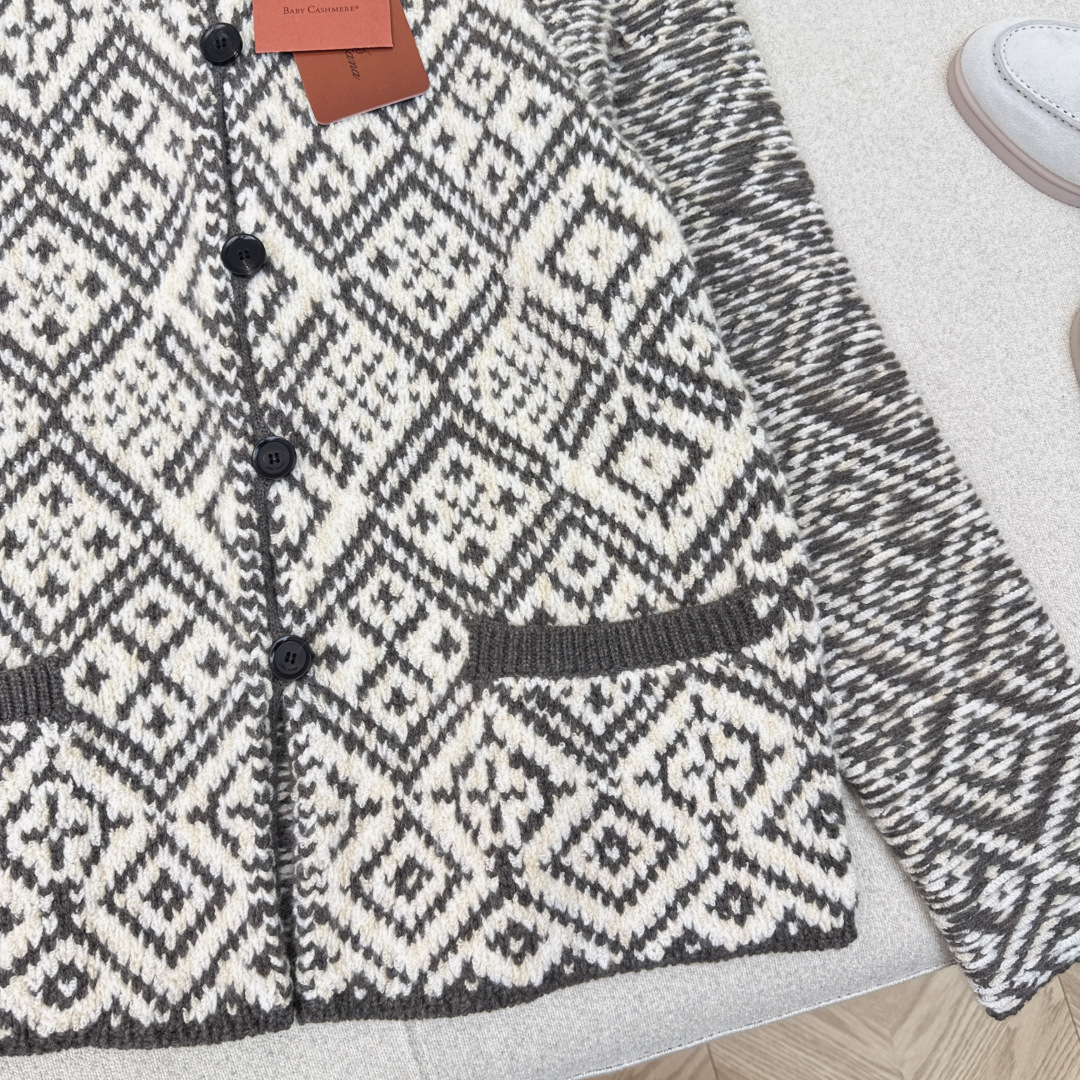 Details: Early spring Fair Isle heavy cashmere cardigan, complex jacquard, warm.