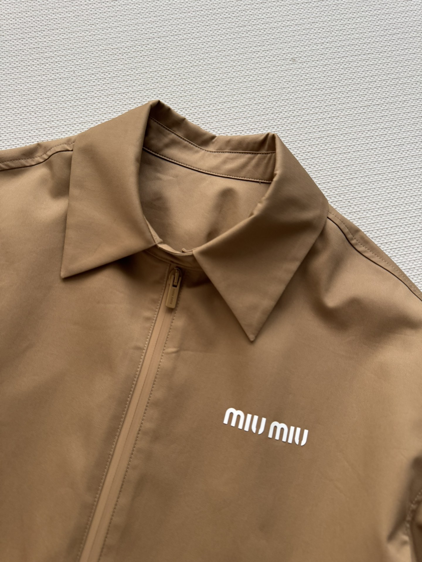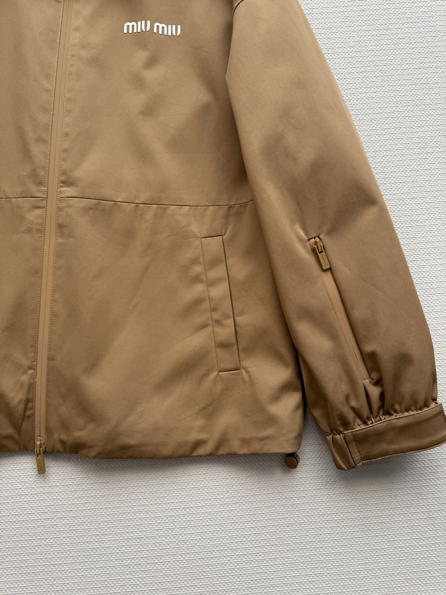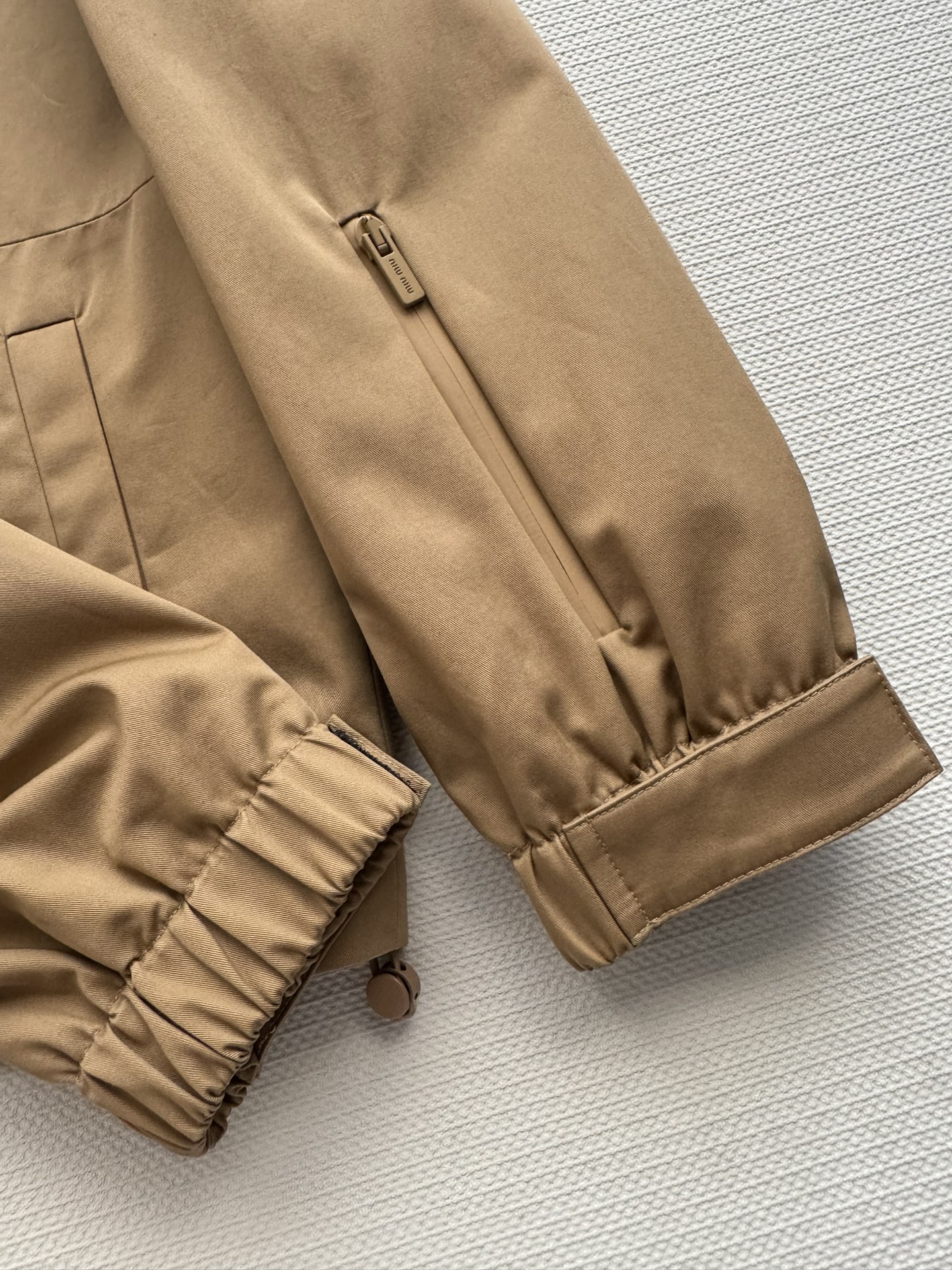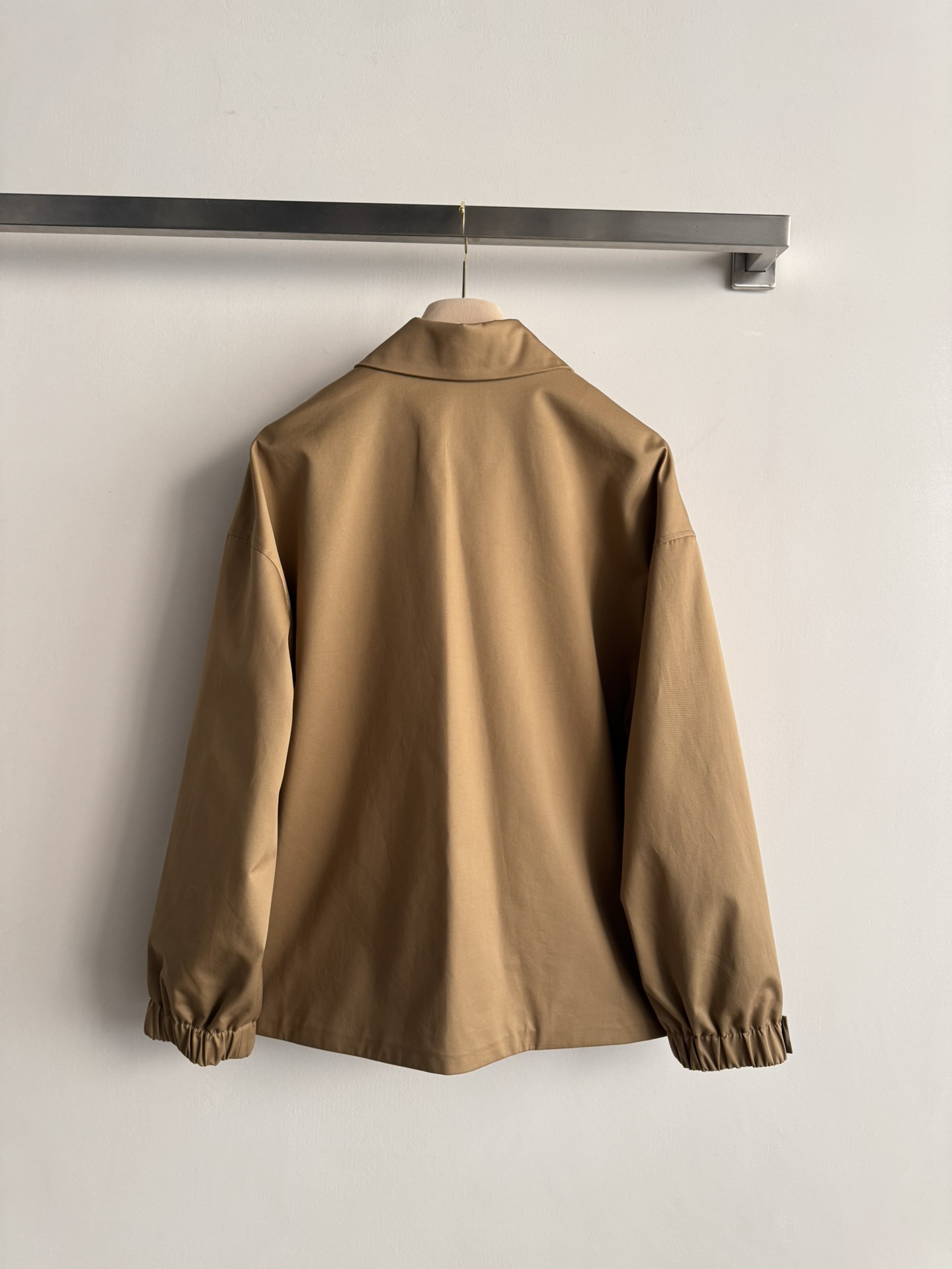 Details: early spring jacket in khaki, with shirt collar and drawstring hem. Made of 100% wrinkle-resistant cotton. Sweet and cool. High-end custom with fine workmanship