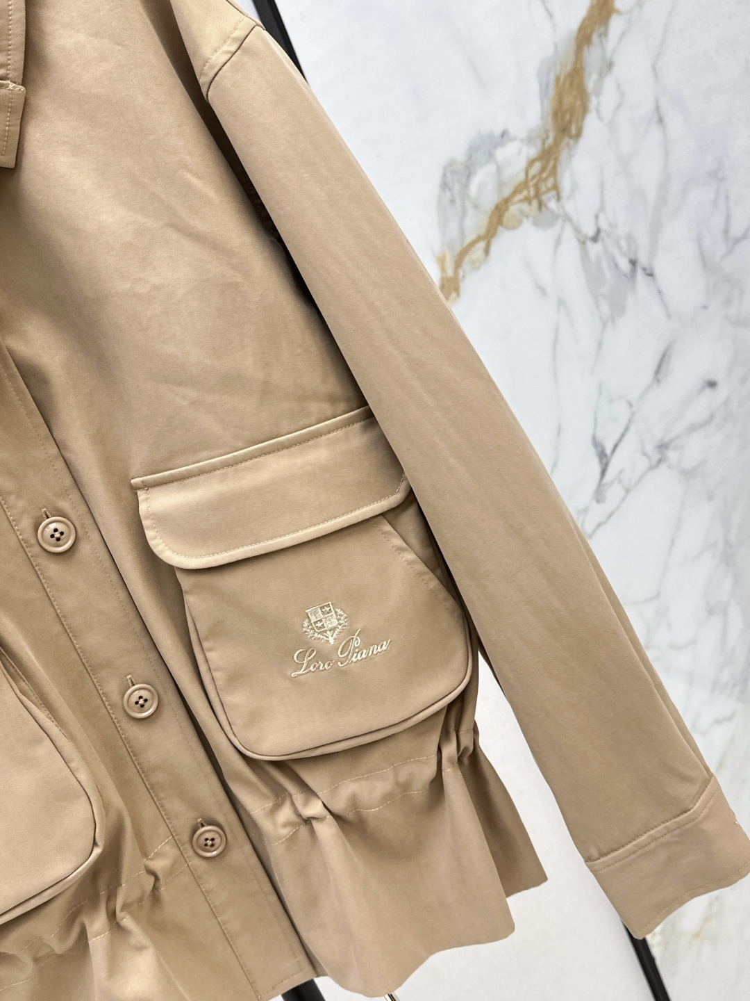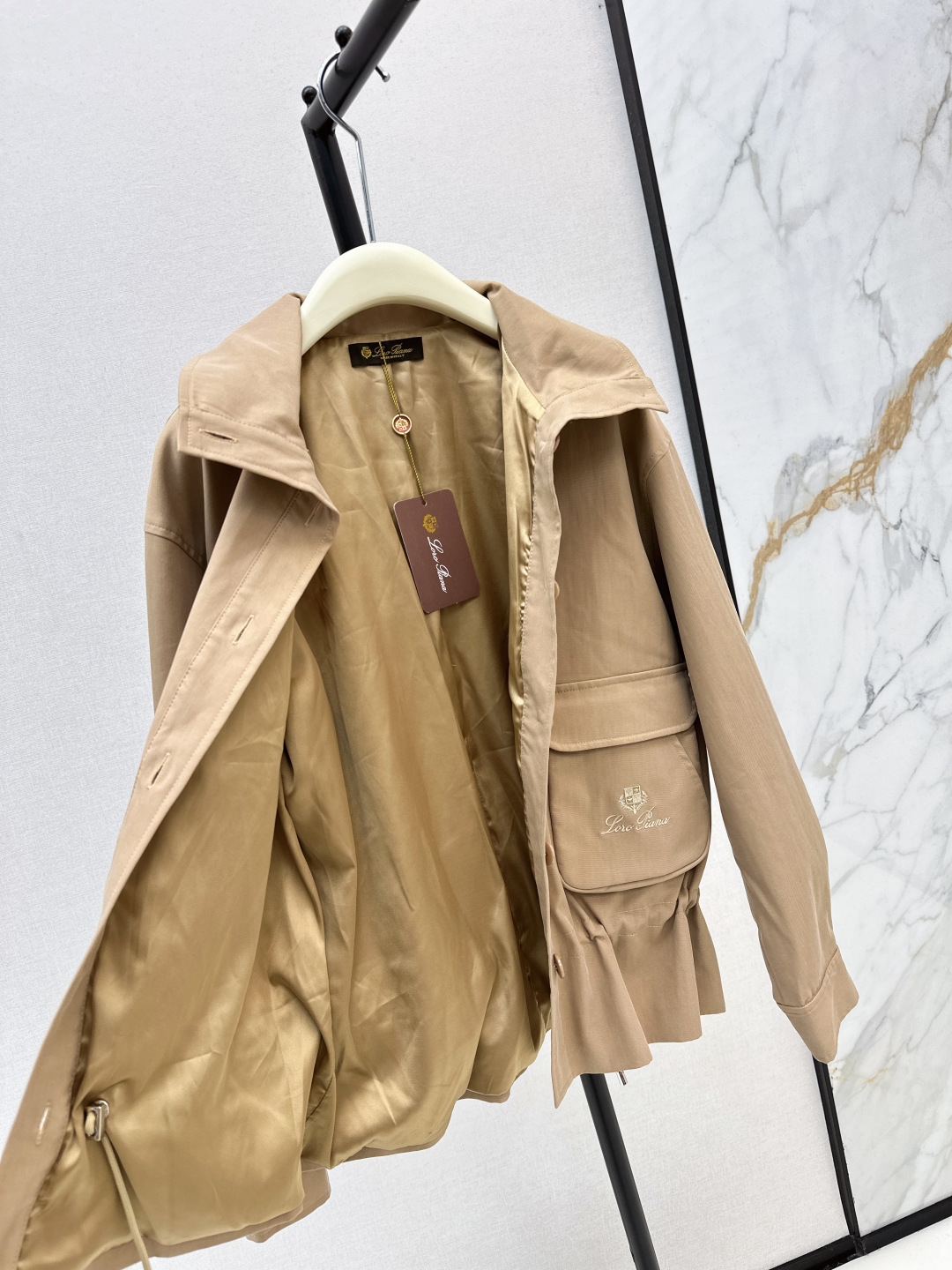 Details: Autumn s latest stylish workwear-inspired double-pocket trench coat in high-density cotton, mid-length, drawstring waist for a flattering fit, with logo embroidery. High-end customization, exquisite workmanship
