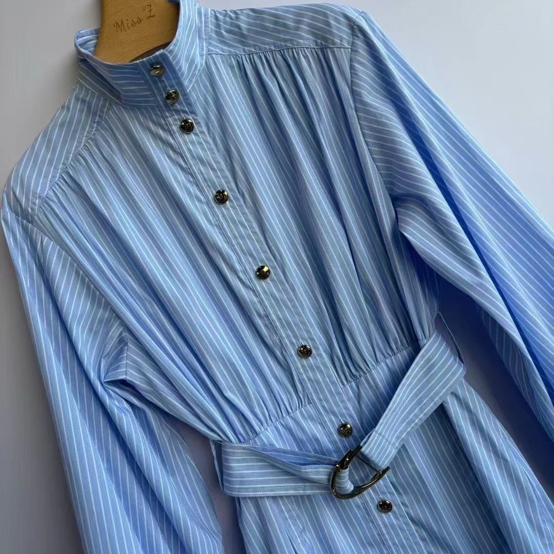 Details: Fall New Striped Workwear High-collared Shirt, Suitable for All Occasions, Imported Turkish Cotton, High-end Customization, Fine Craftsmanship