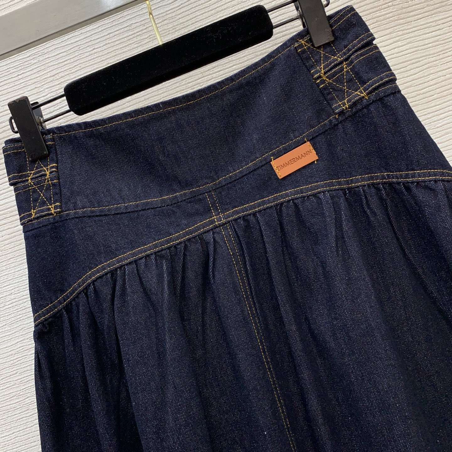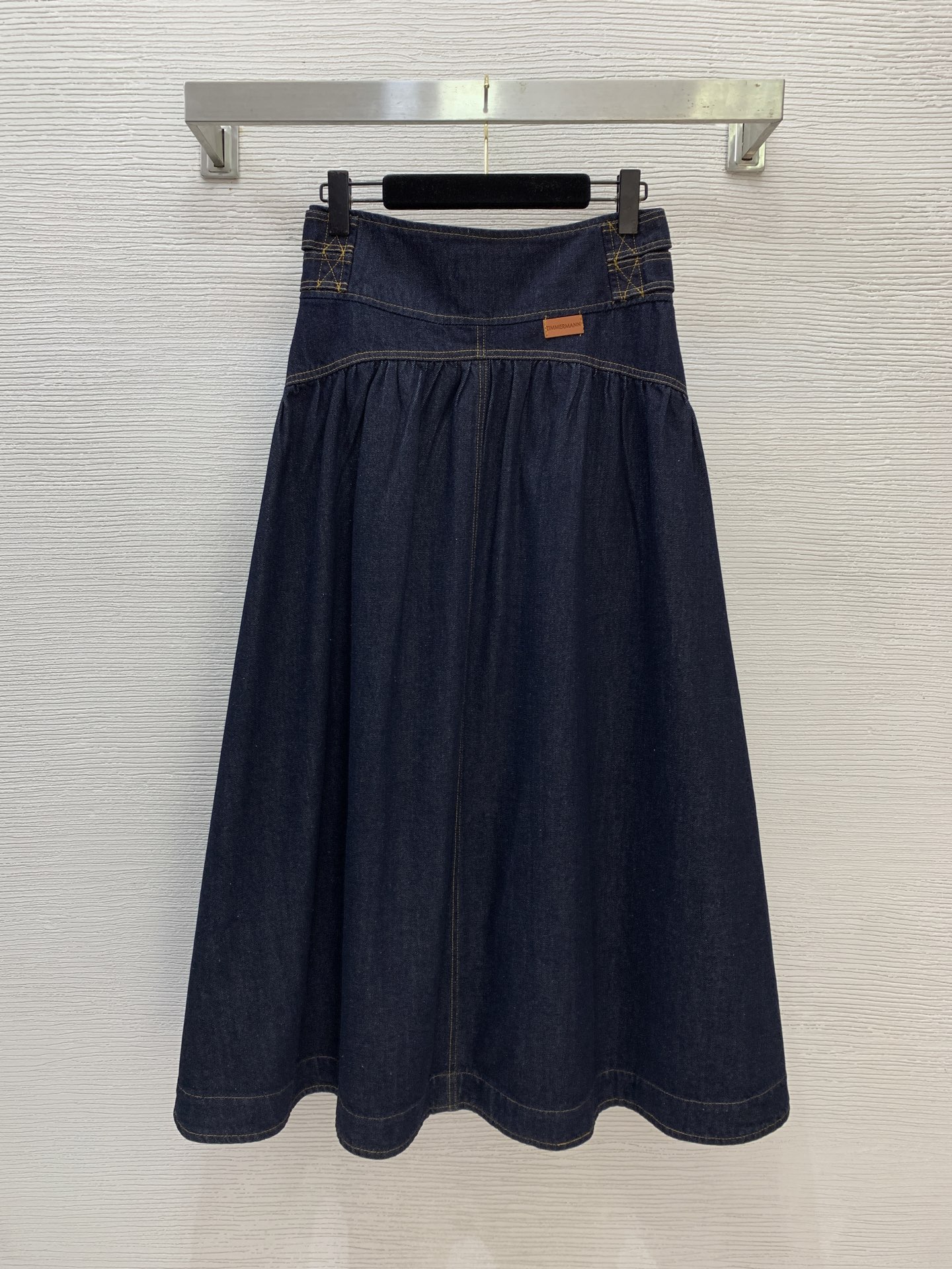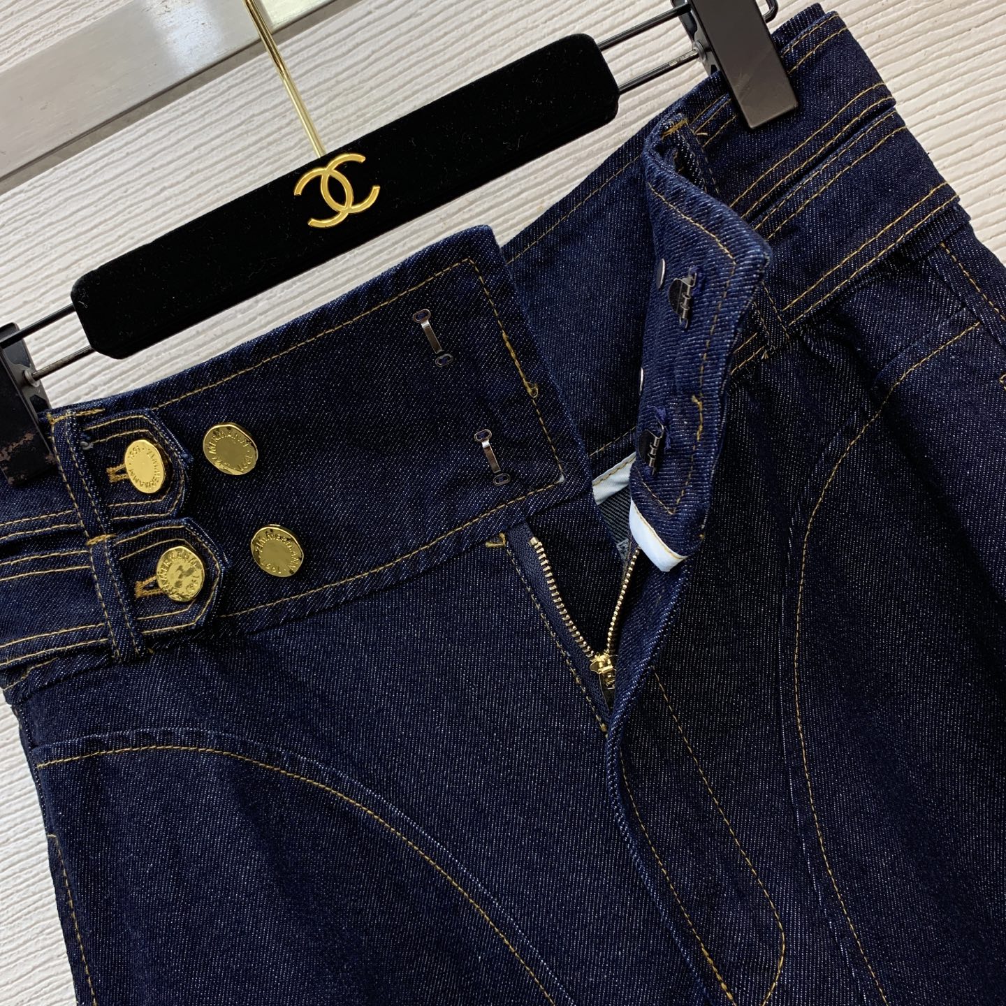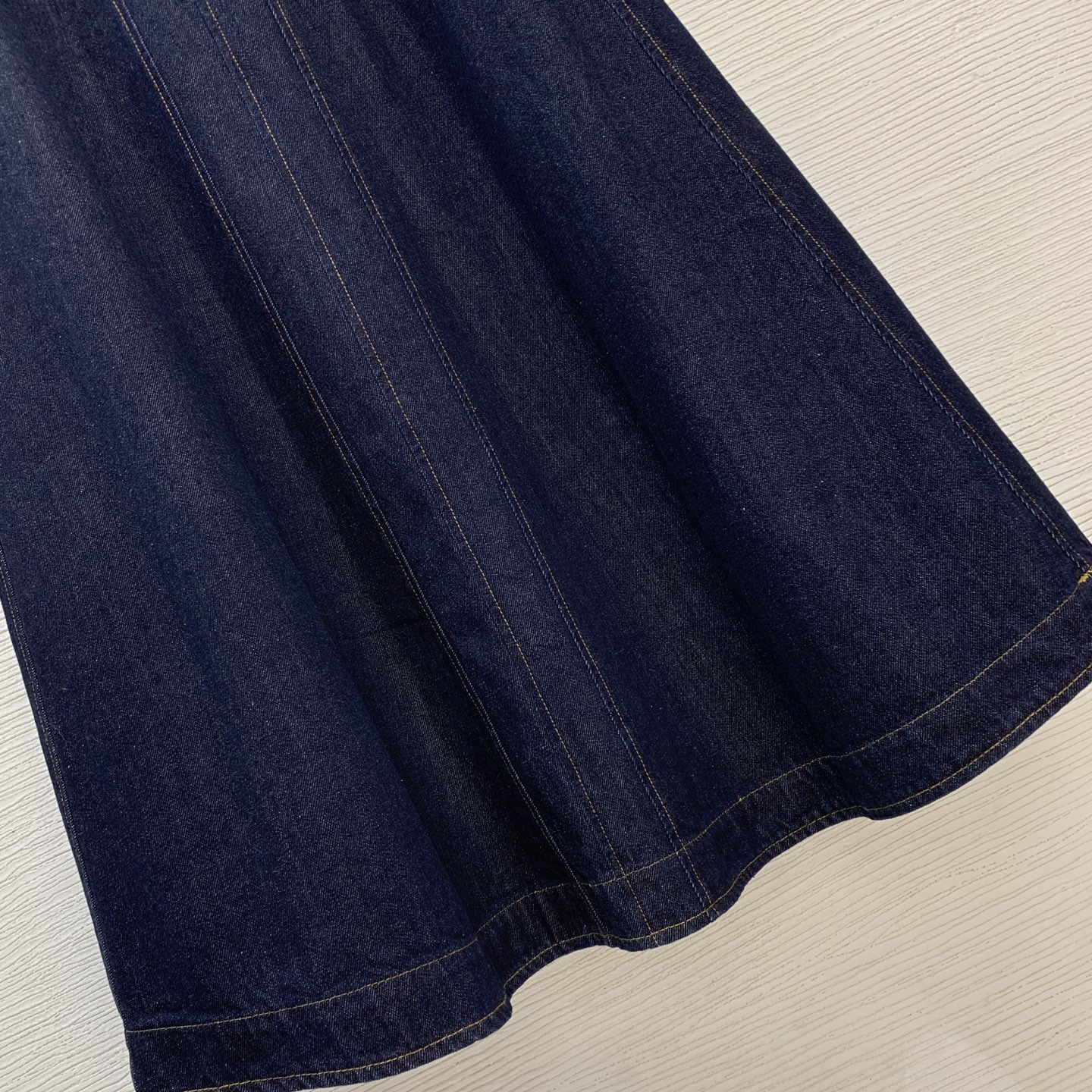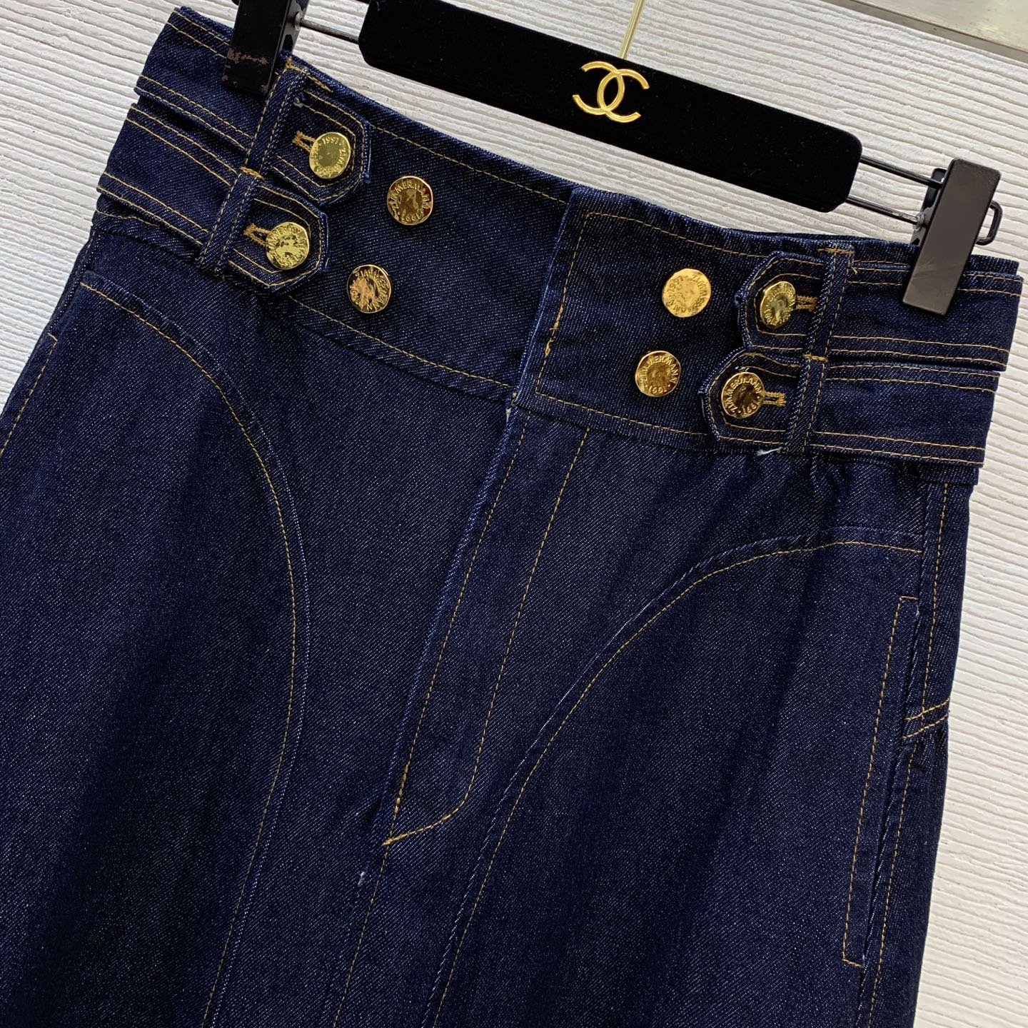 Details: Autumn-winter new custom letter logo golden button leather patch high-waisted flared long denim skirt, size M
