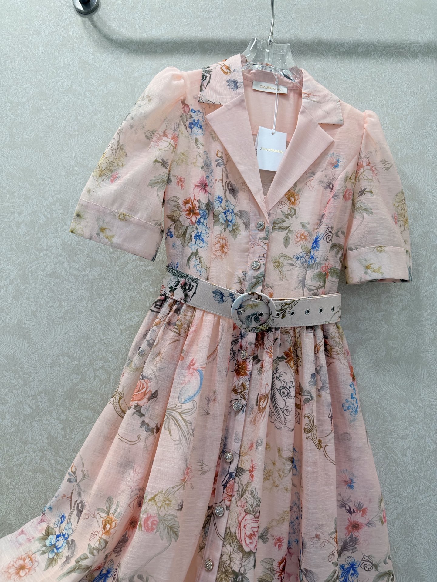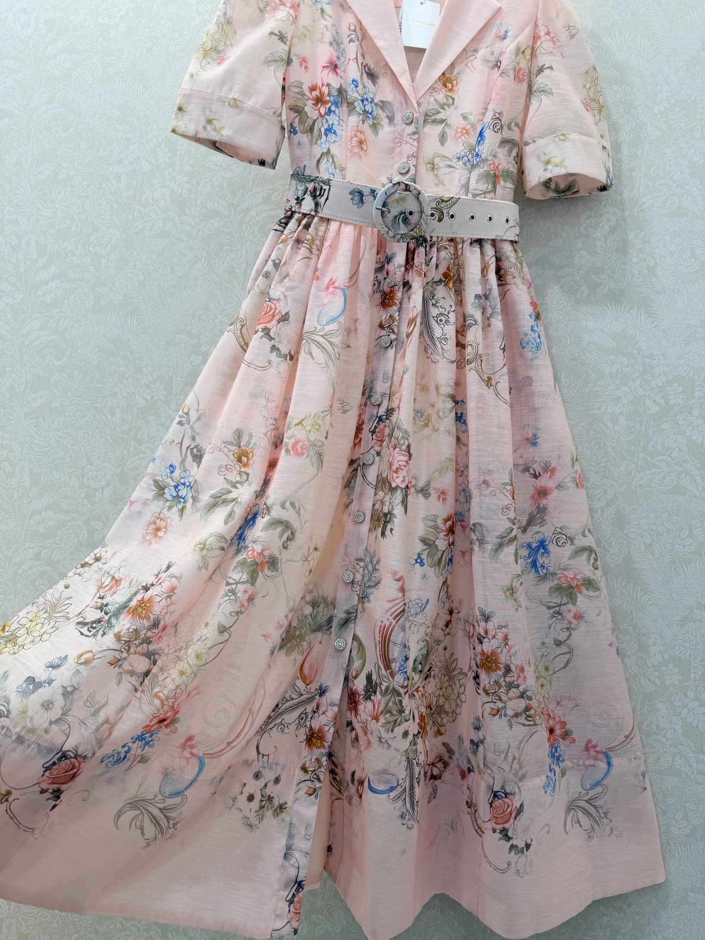 Details: Two-piece long dress with lantern sleeves, floral patterns, and a loose skirt. Available in 3 colors and 4 sizes.
