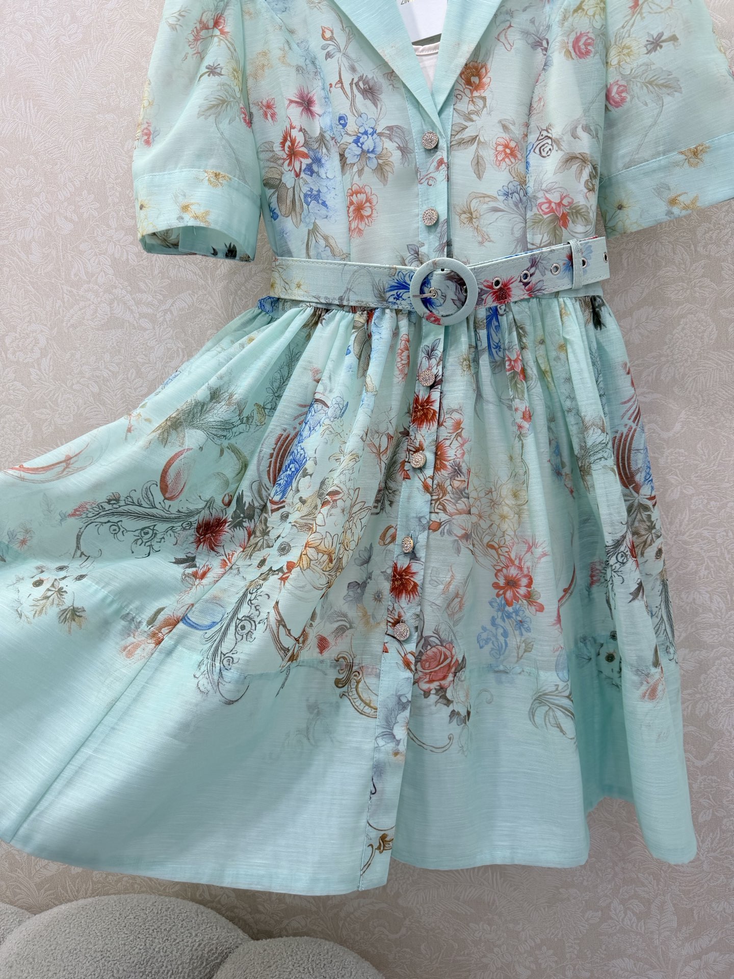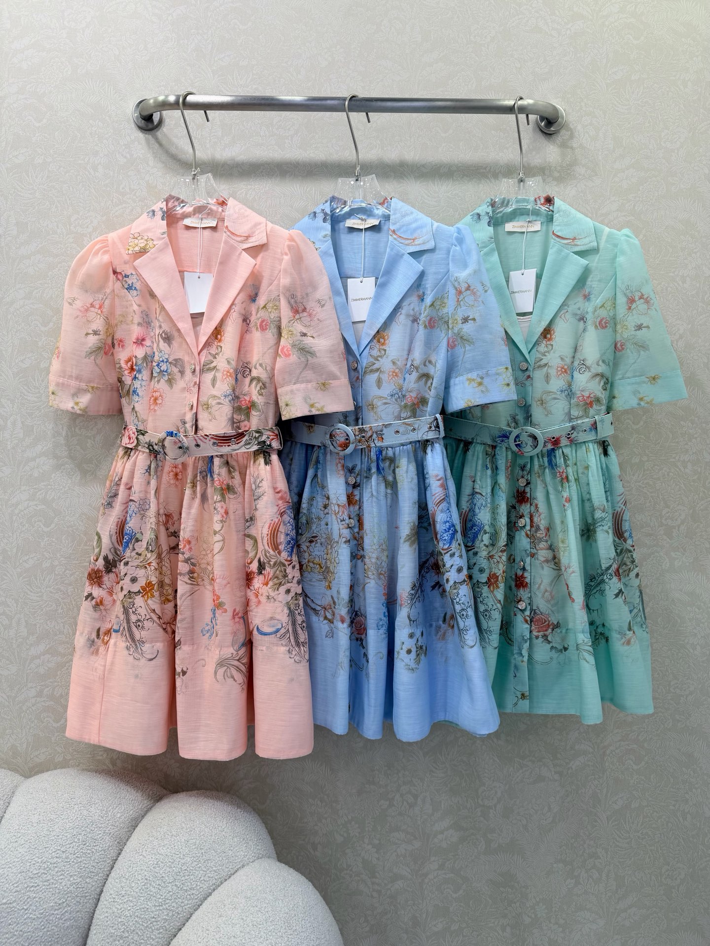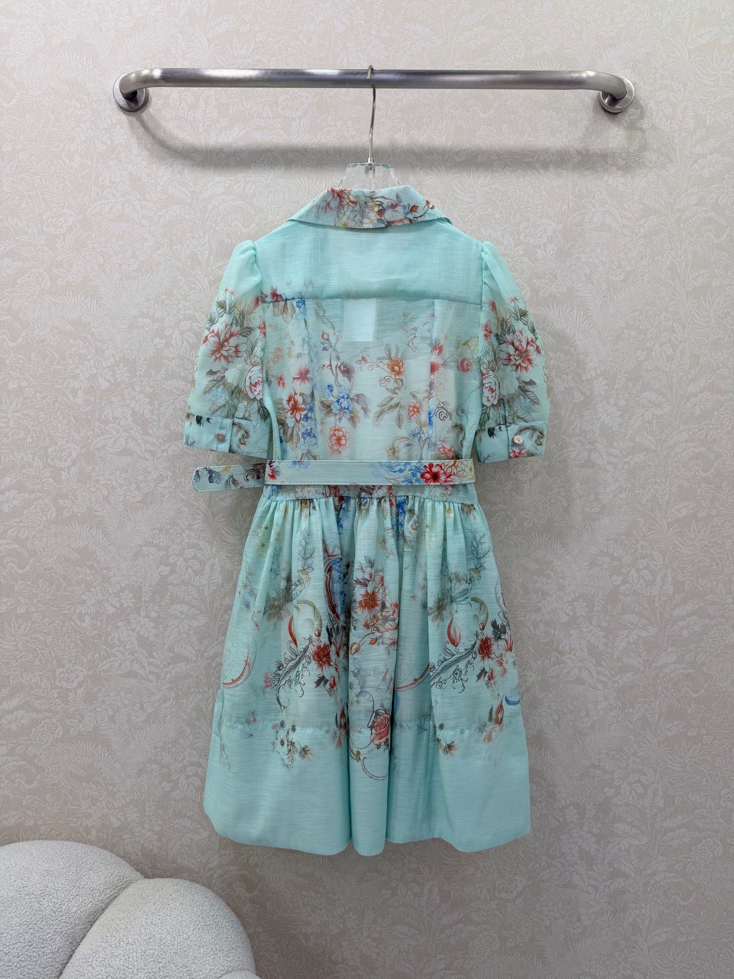 Details: Two-piece short dress with lantern sleeves, floral patterns, and a loose skirt. Available in 3 colors and 4 sizes.