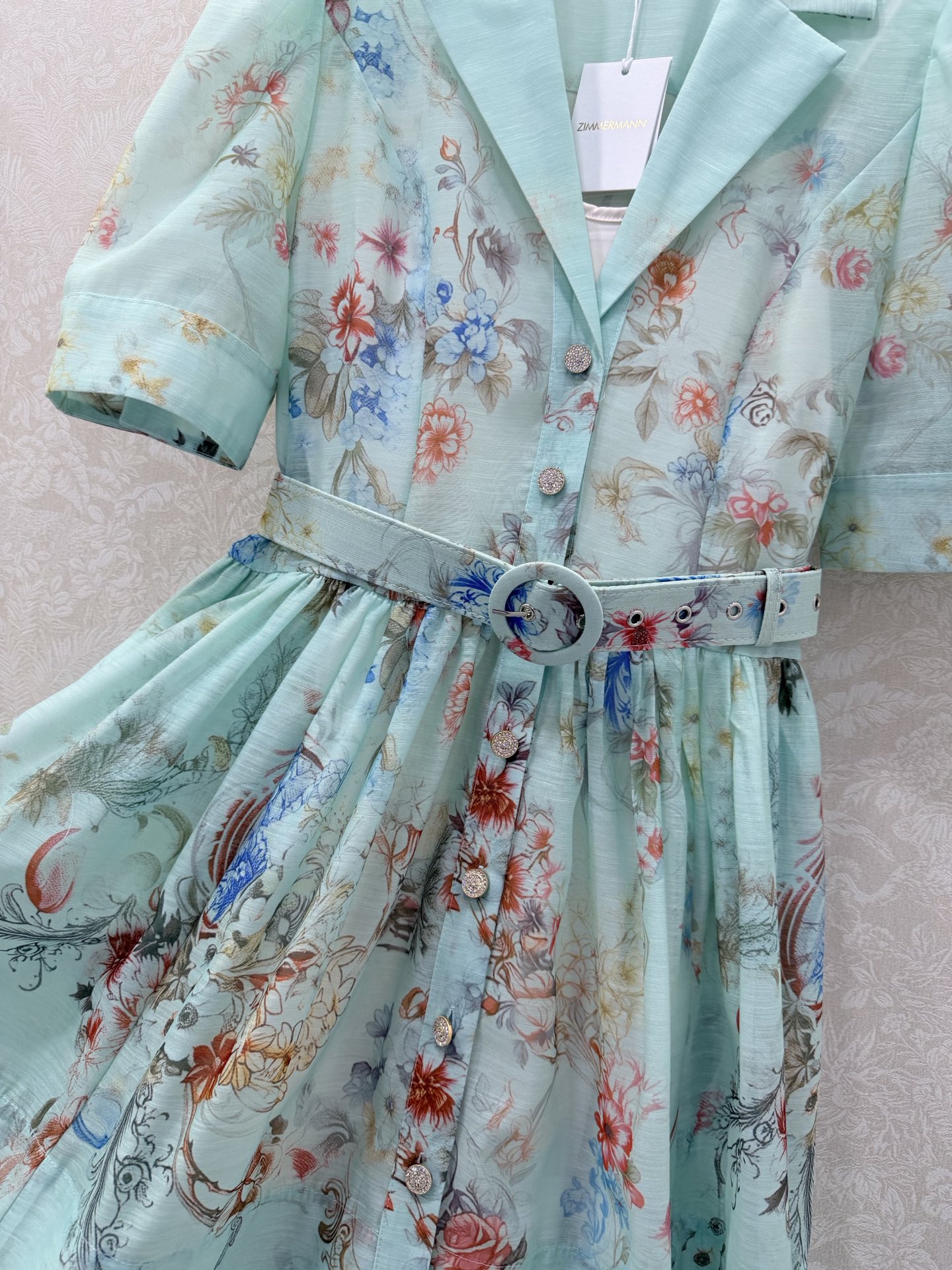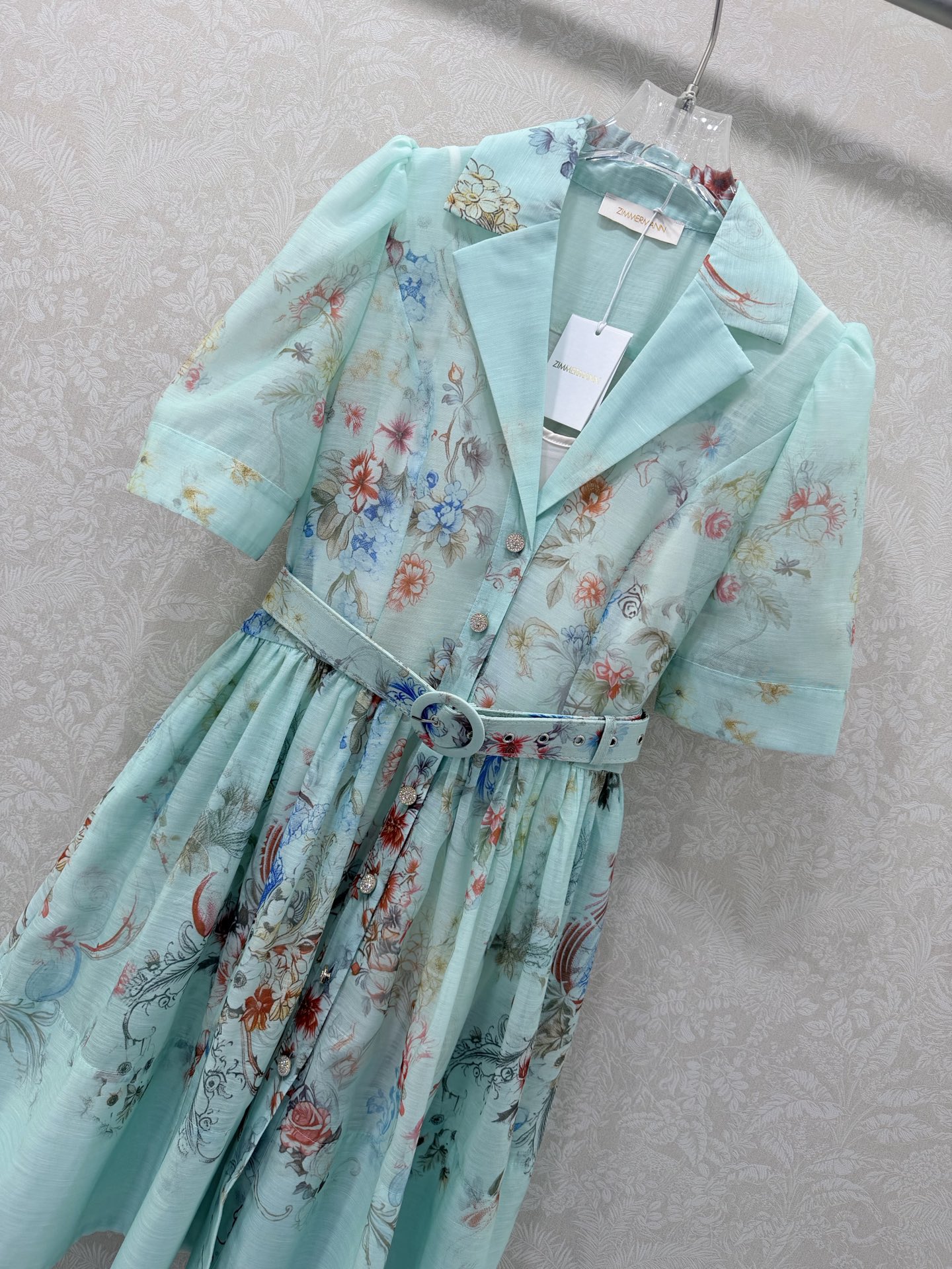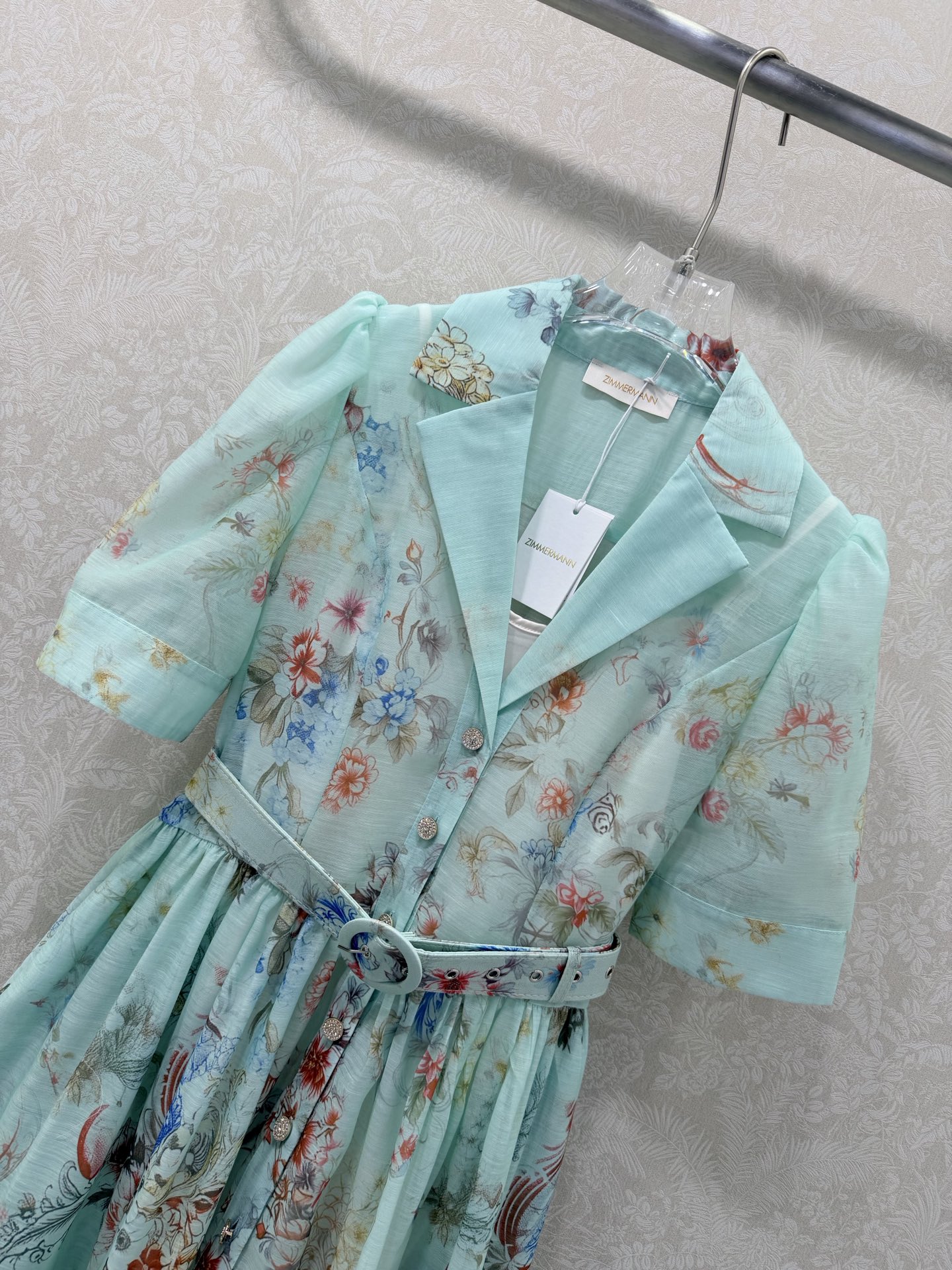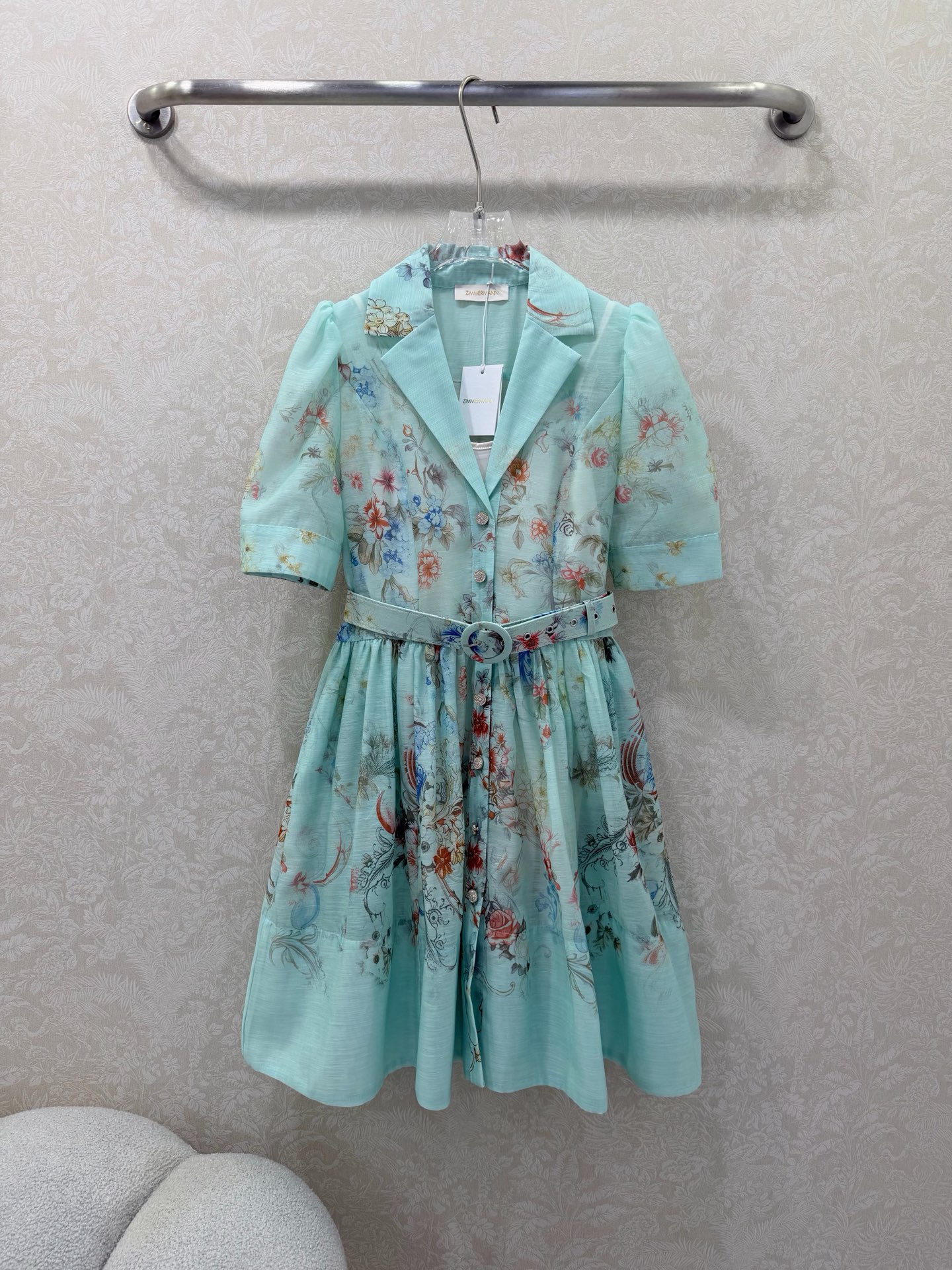 Details: Two-piece short dress with lantern sleeves, floral patterns, and a loose skirt. Available in 3 colors and 4 sizes.