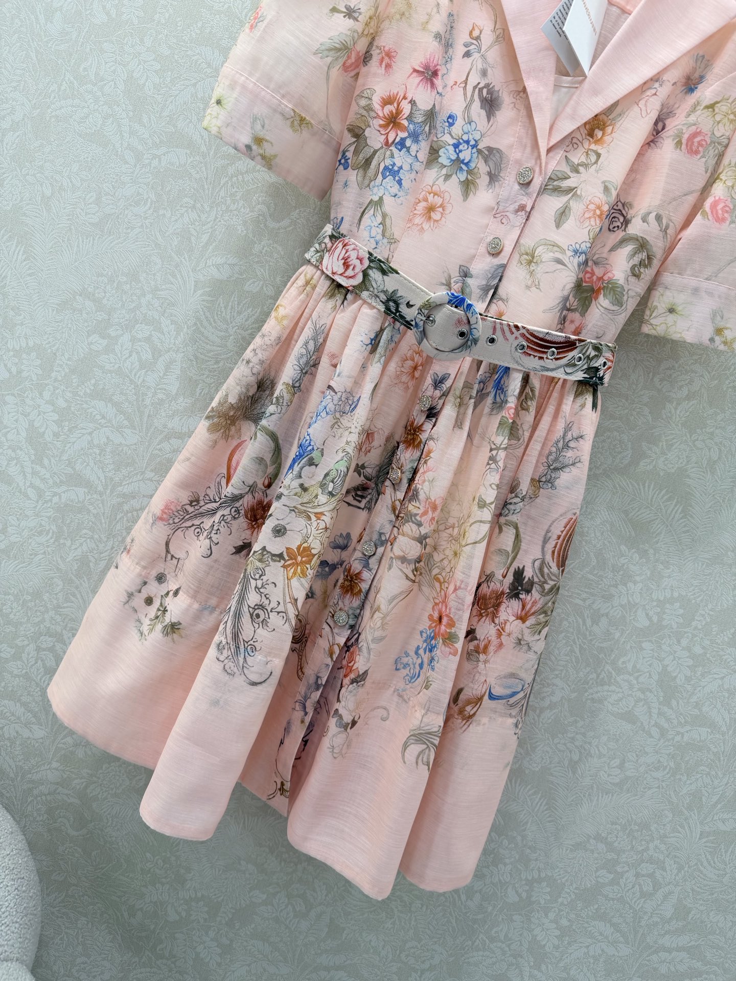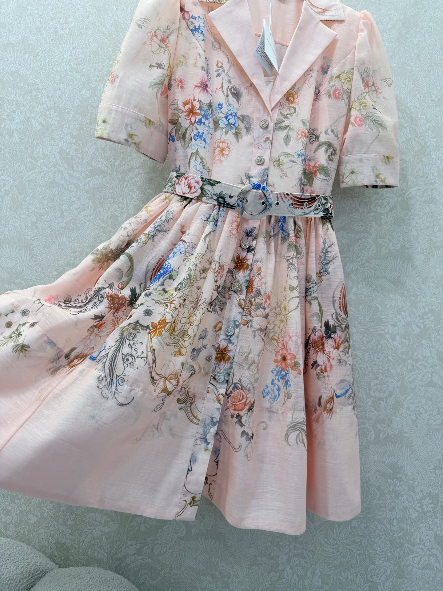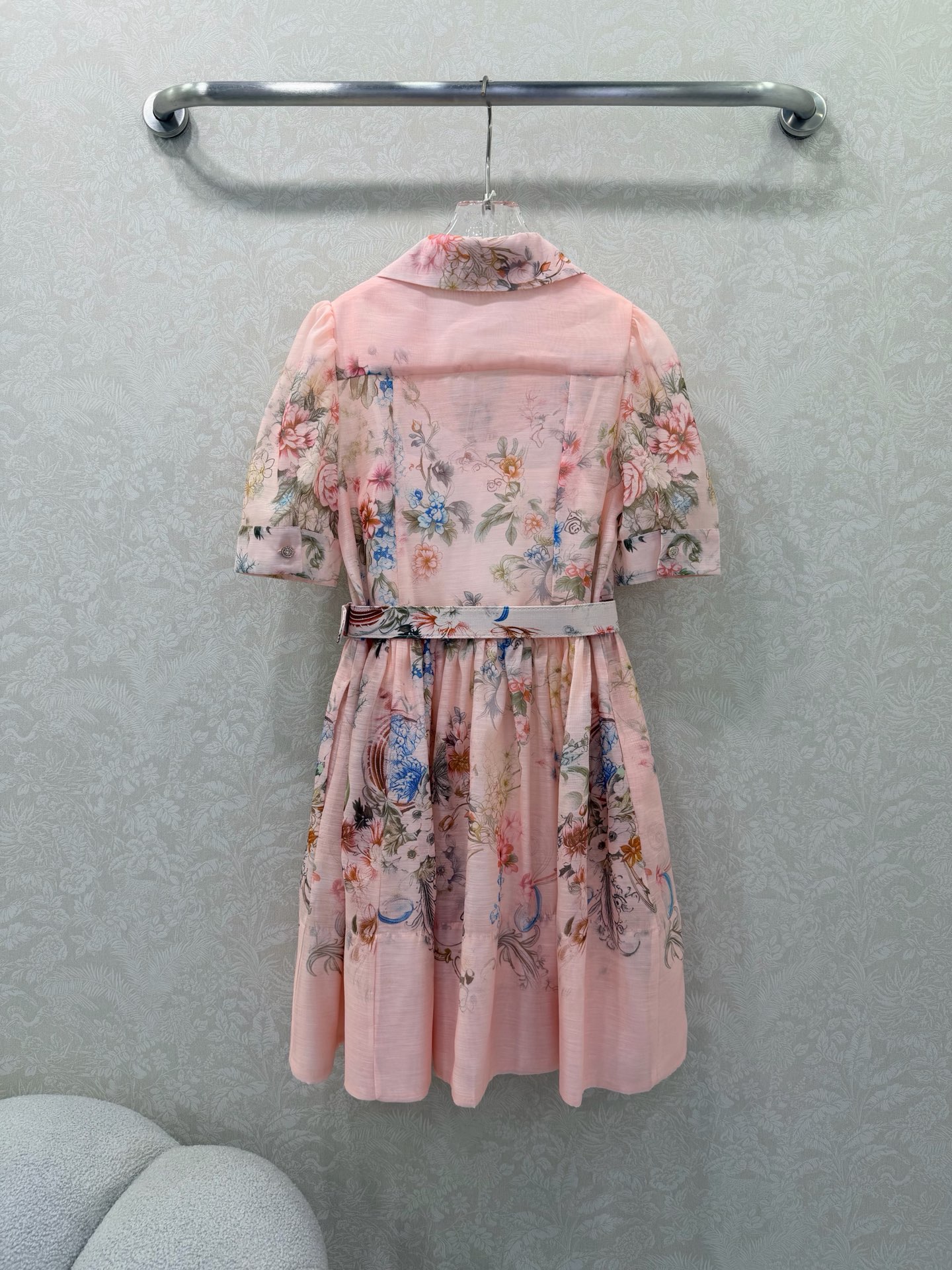 Details: Two-piece short dress with lantern sleeves, floral patterns, and a loose skirt. Available in 3 colors and 4 sizes.