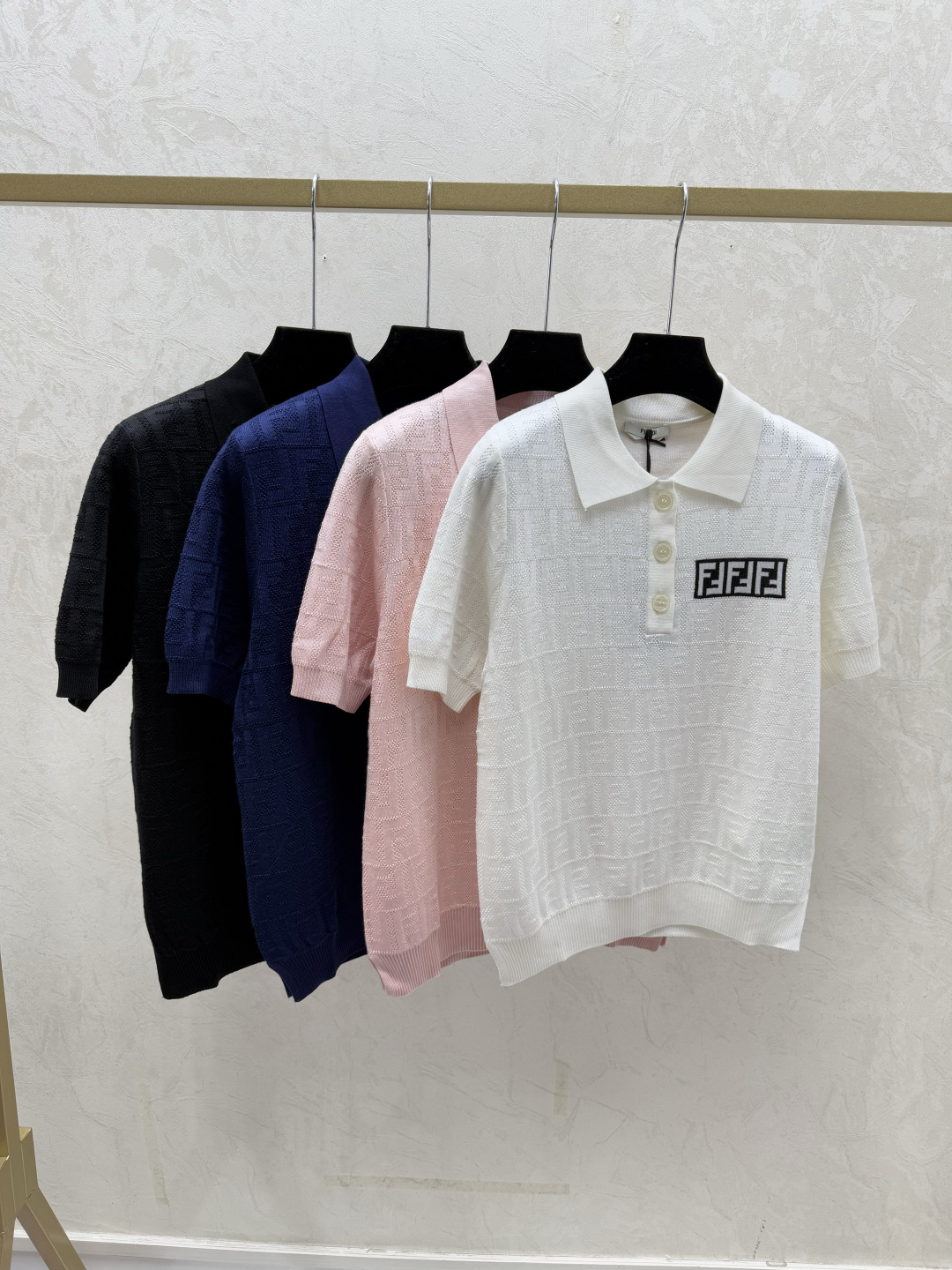 Details: Early spring knitted short sleeves with a lettered turnover collar. Available in white, pink, sapphire blue, and black, sizes 36 - 40.