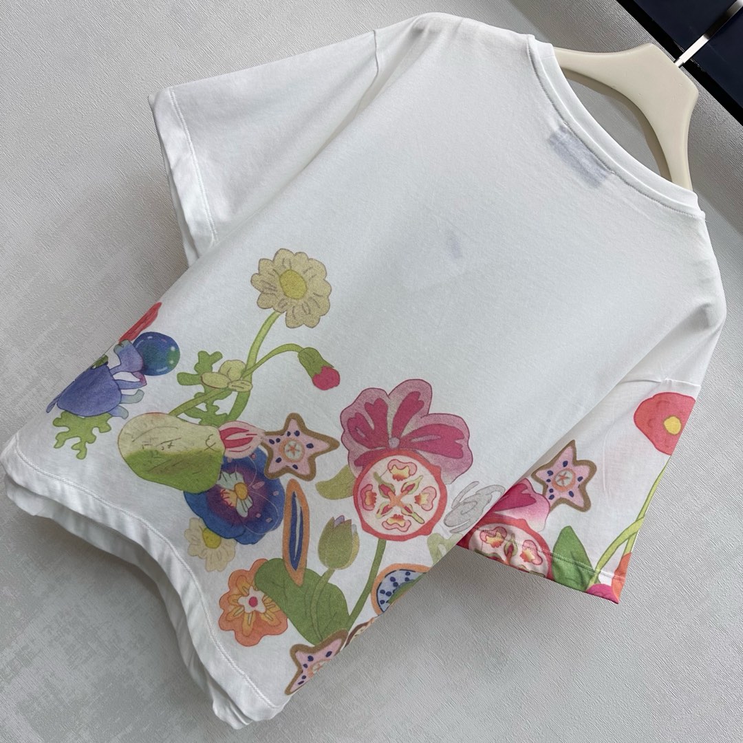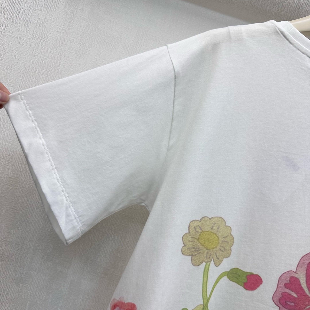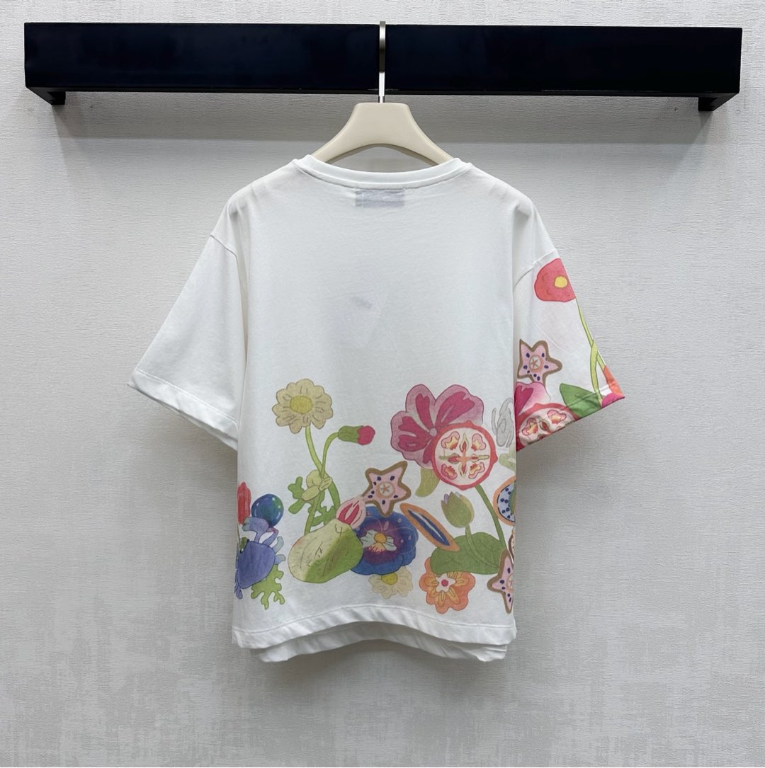 Details: Round-neck cotton T-shirt with floral print, cute for daily wear, high-end custom, fine workmanship