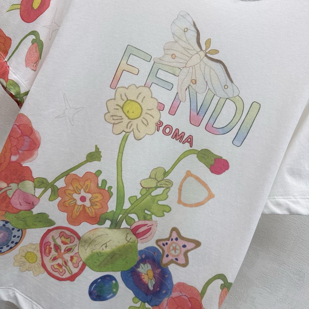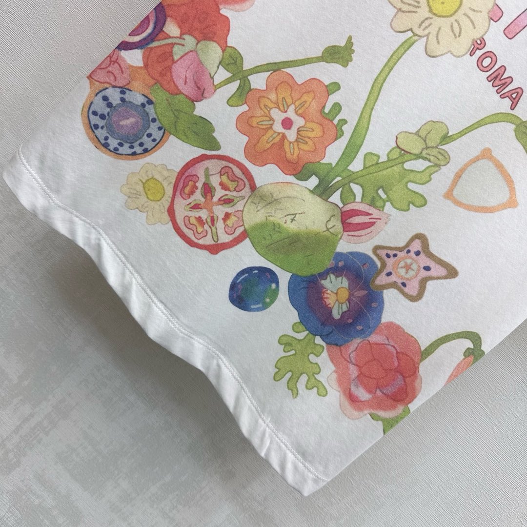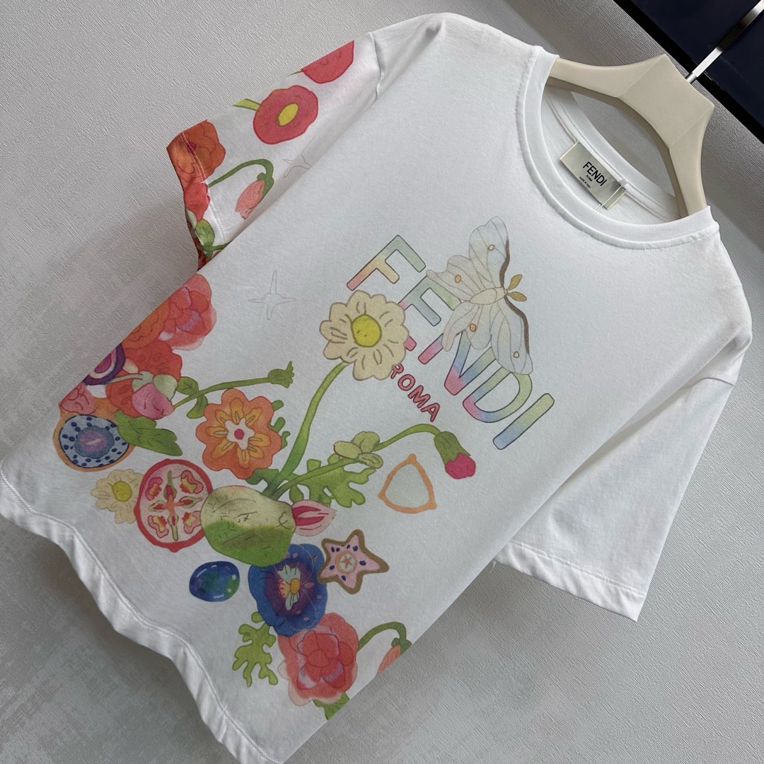 Details: Round-neck cotton T-shirt with floral print, cute for daily wear, high-end custom, fine workmanship