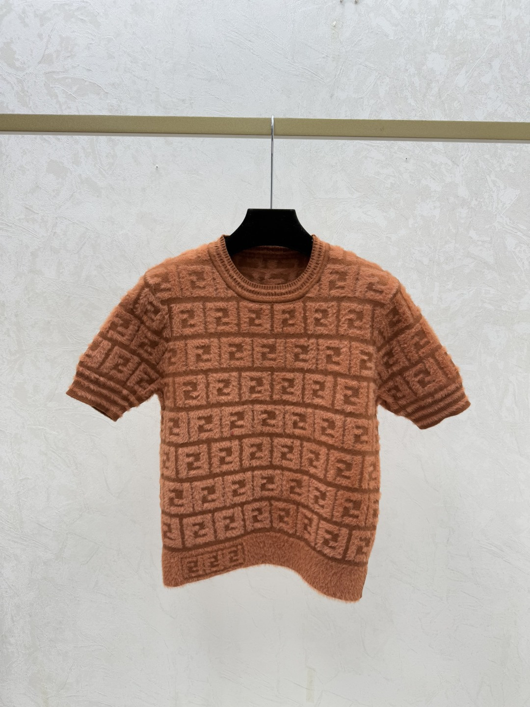 Details: Spring vintage letter round-neck knitted short-sleeved top in khaki and red, sizes 36-40.