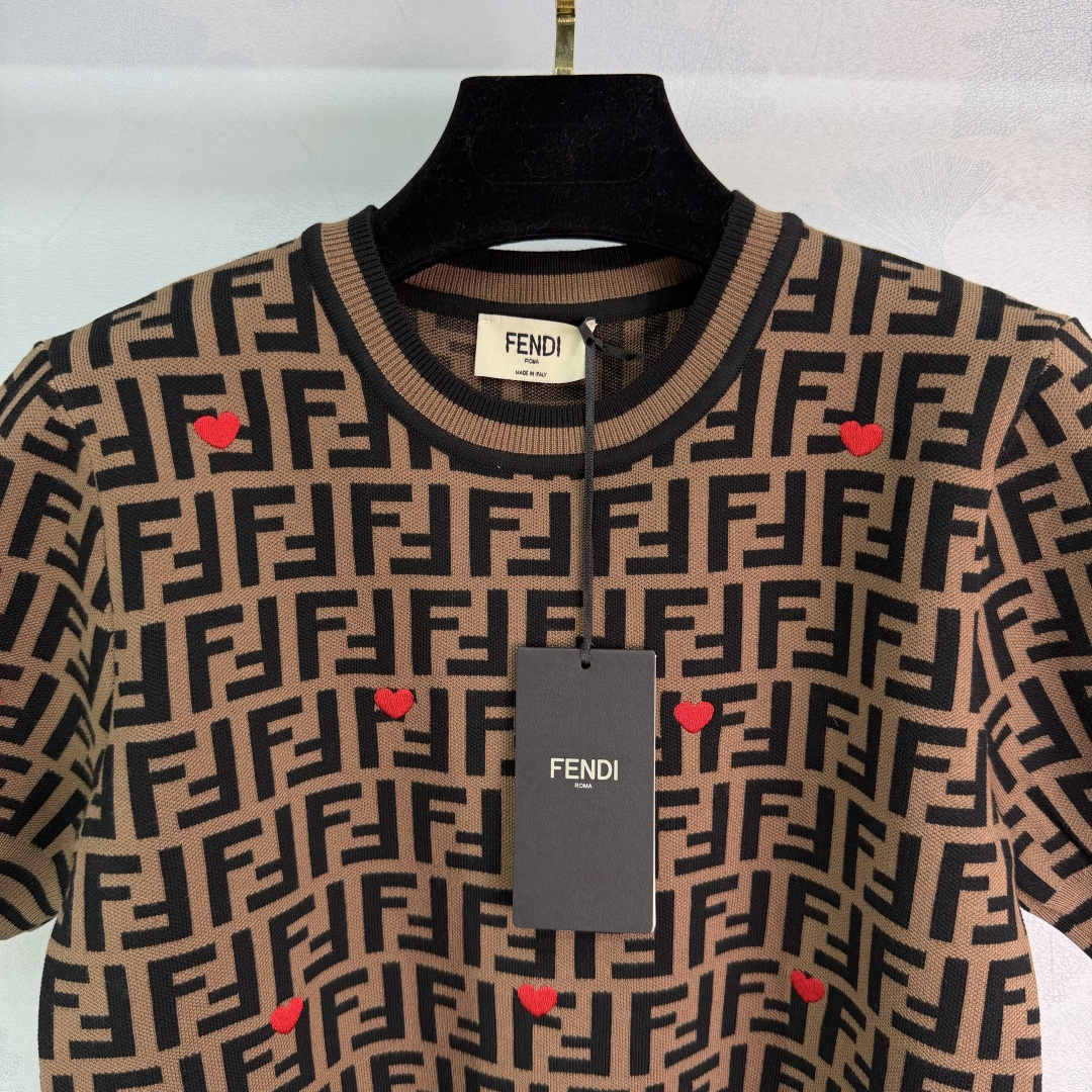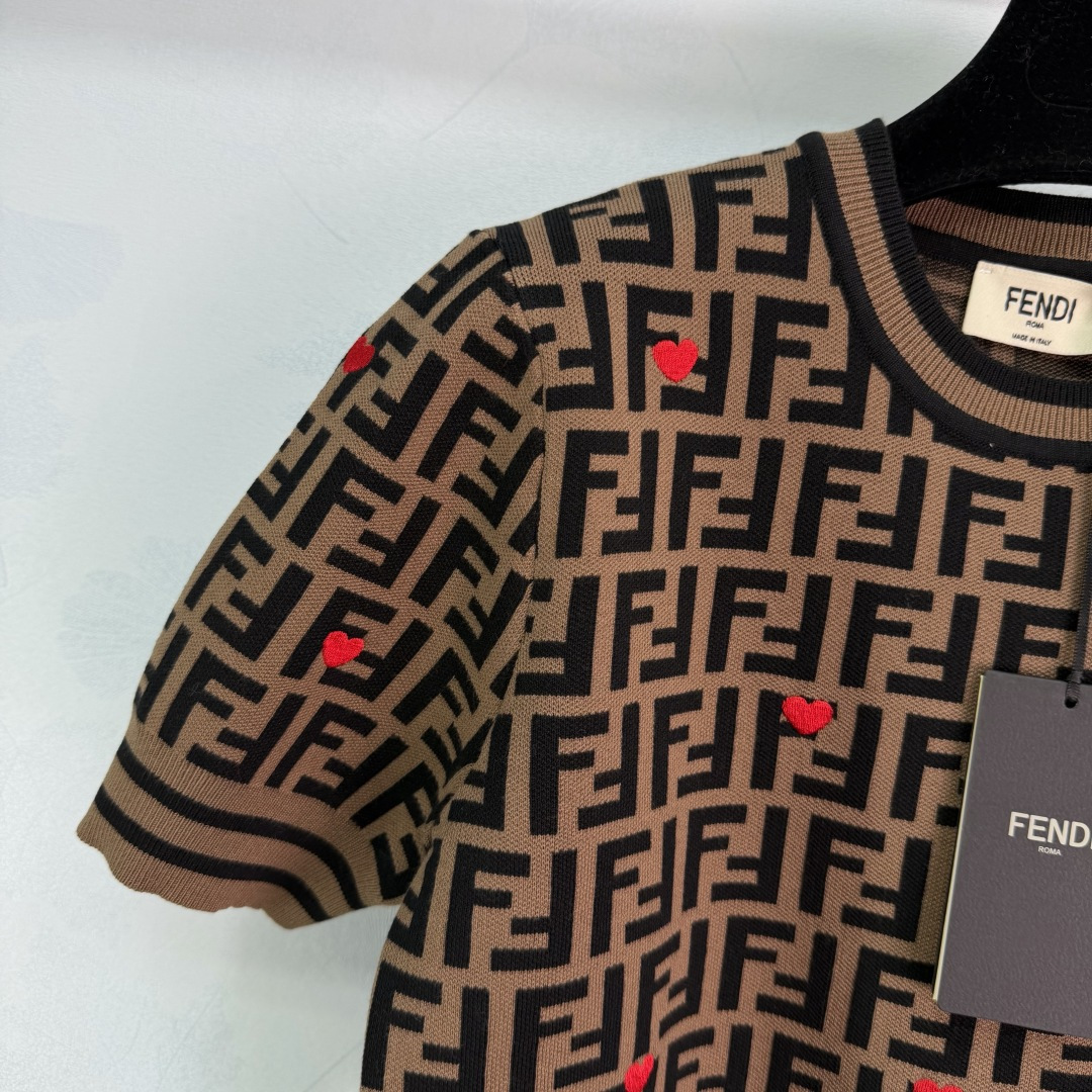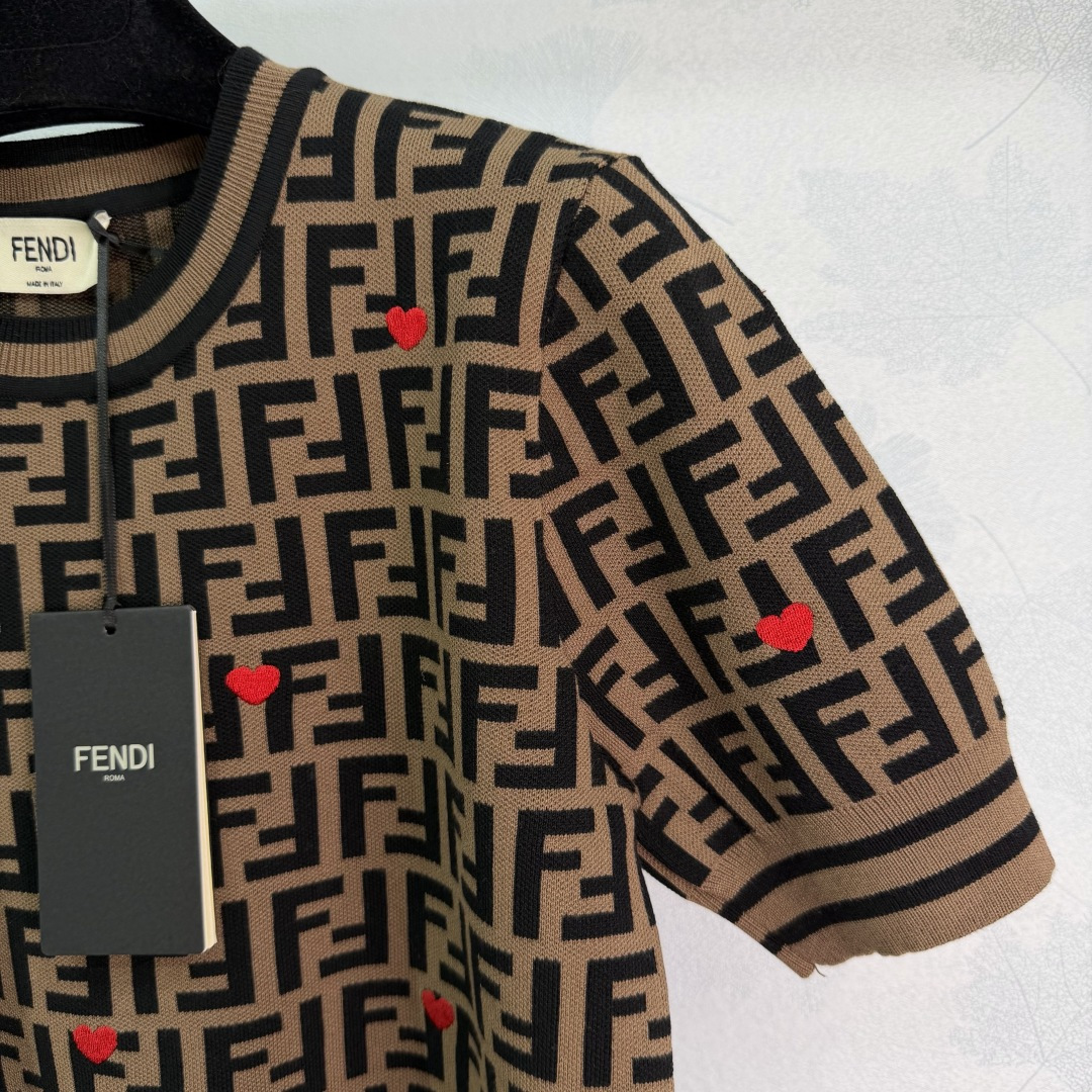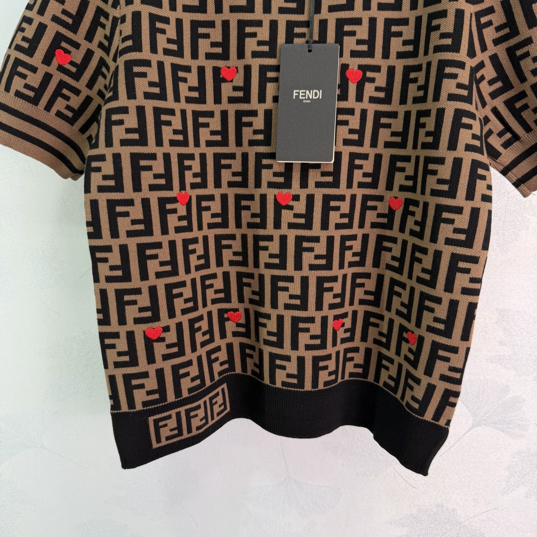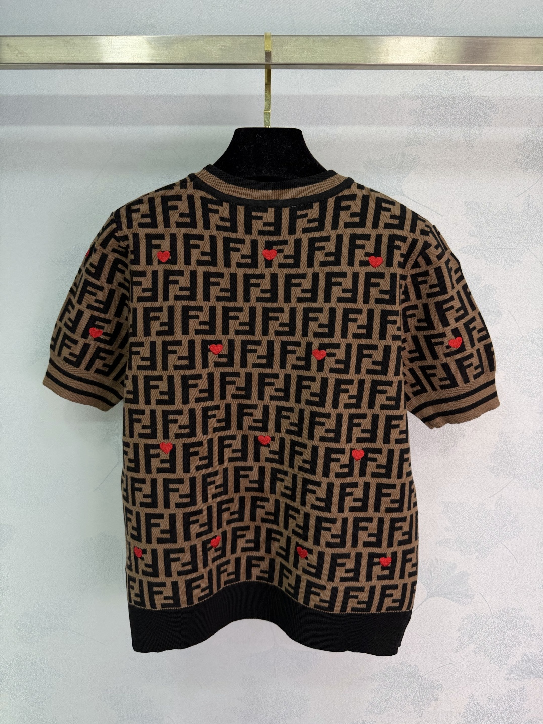 Details: Spring classic FF jacquard knitted short - sleeved top, soft, elastic, suitable for single wear or layering.