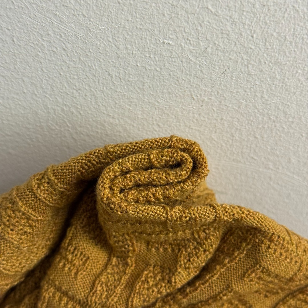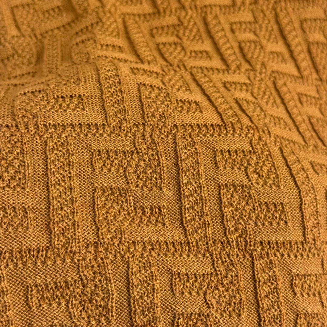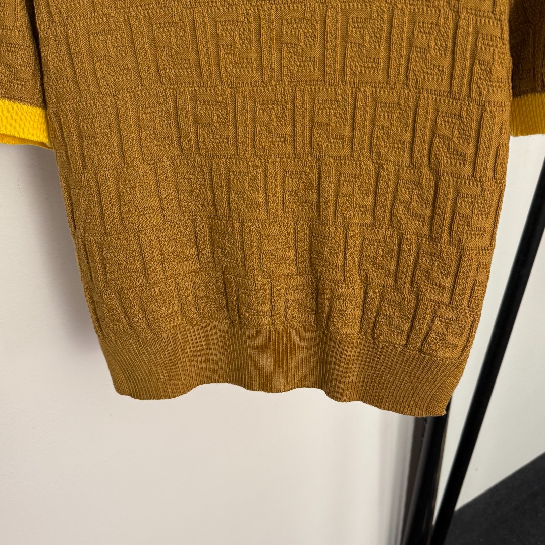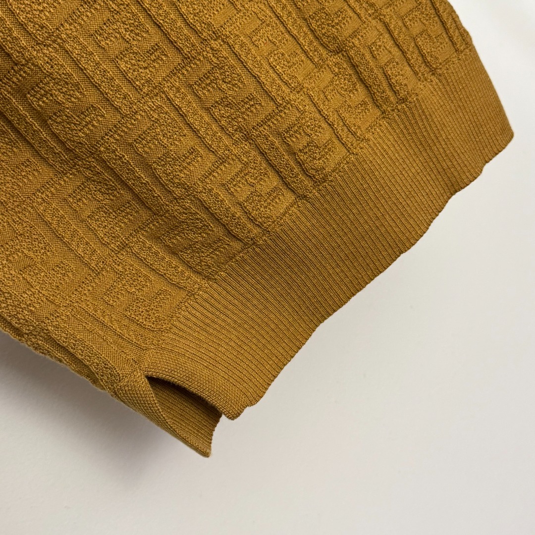 Details: Monogram F-jacquard pull-over short-sleeved knit sweater in khaki and blue, one size