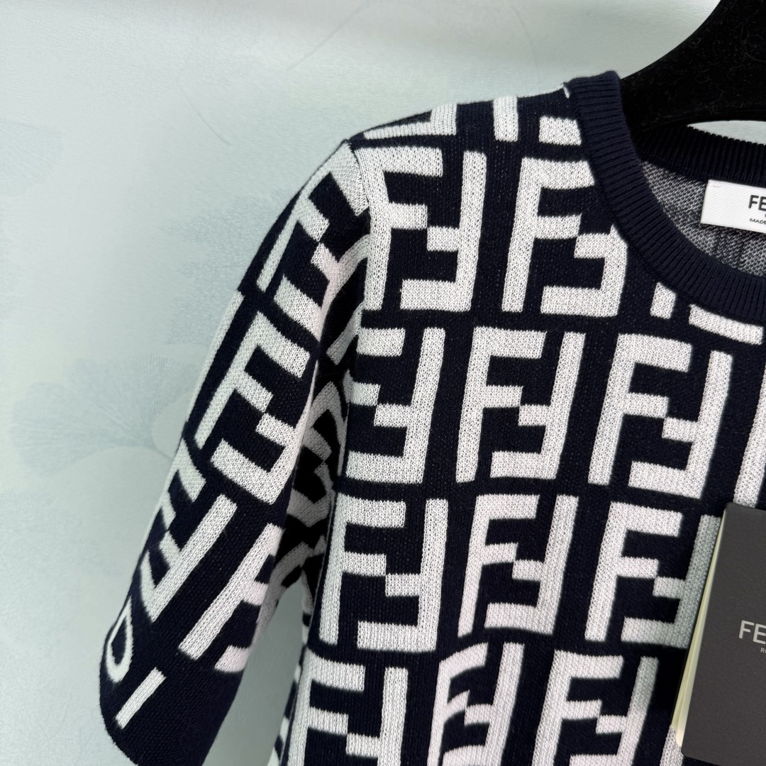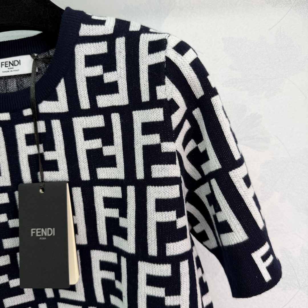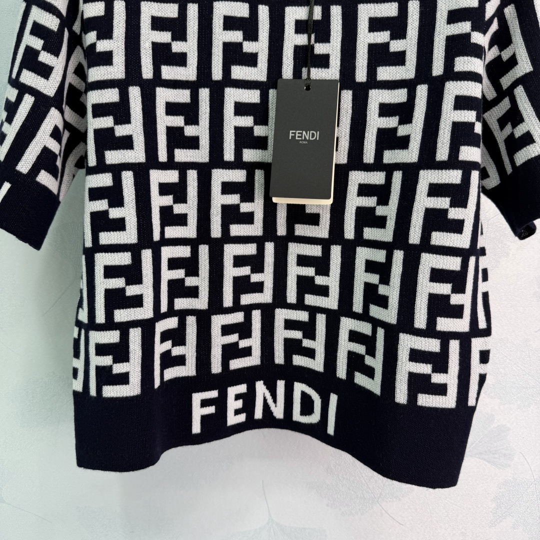Details: Comfortable wool knitted short - sleeve top with double - F logo, simple and practical, featuring high - end customization, fine workmanship,